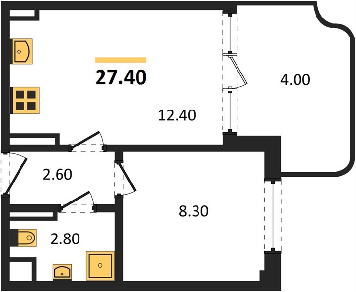 Квартира: 1 к 27,40 кв.м., 1 этаж в комплексе Монако, 1 очередь, корп.2, сдача: 2кв. , этажей: 3, адрес Агой село, Конечная ул., д. 2, Застройщик: ТОЧНО.