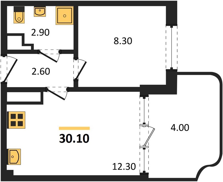 Квартира: 1 к 30,10 кв.м., 1 этаж в комплексе Монако, 1 очередь, корп.2, сдача: 2кв. , этажей: 3, адрес Агой село, Конечная ул., д. 2, Застройщик: ТОЧНО.