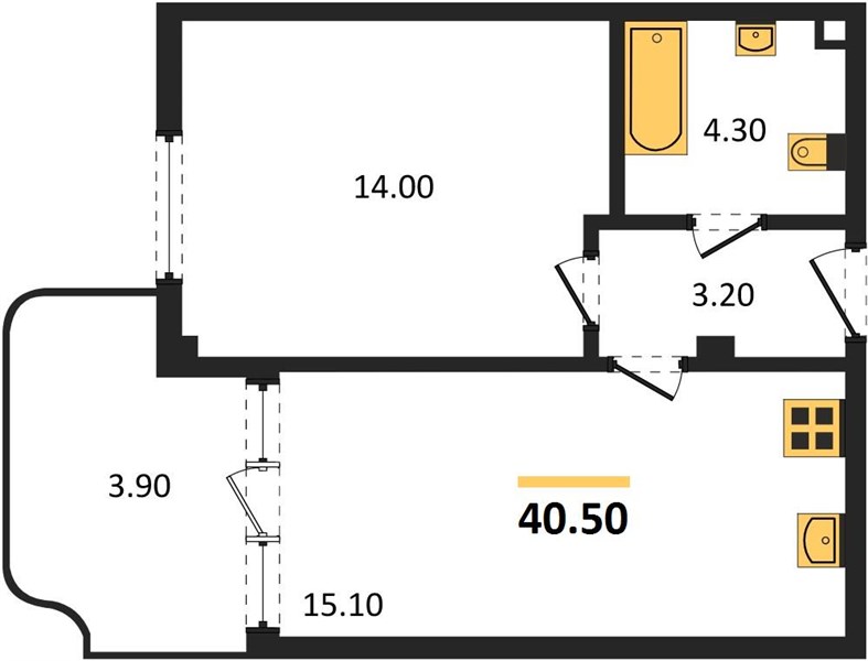 Квартира: 1 к 40,50 кв.м., 1 этаж в комплексе Монако, 1 очередь, корп.2, сдача: 2кв. , этажей: 3, адрес Агой село, Конечная ул., д. 2, Застройщик: ТОЧНО.