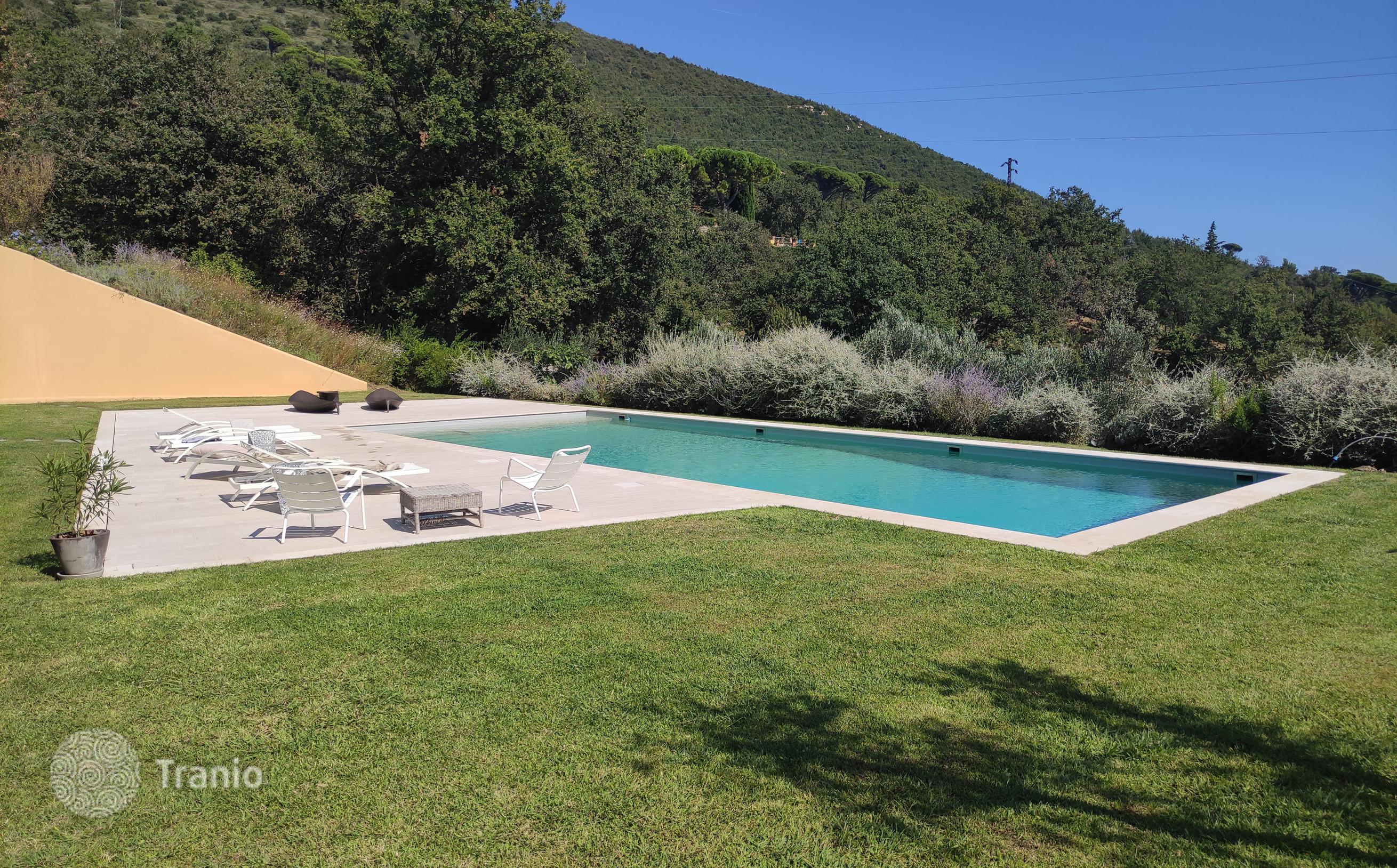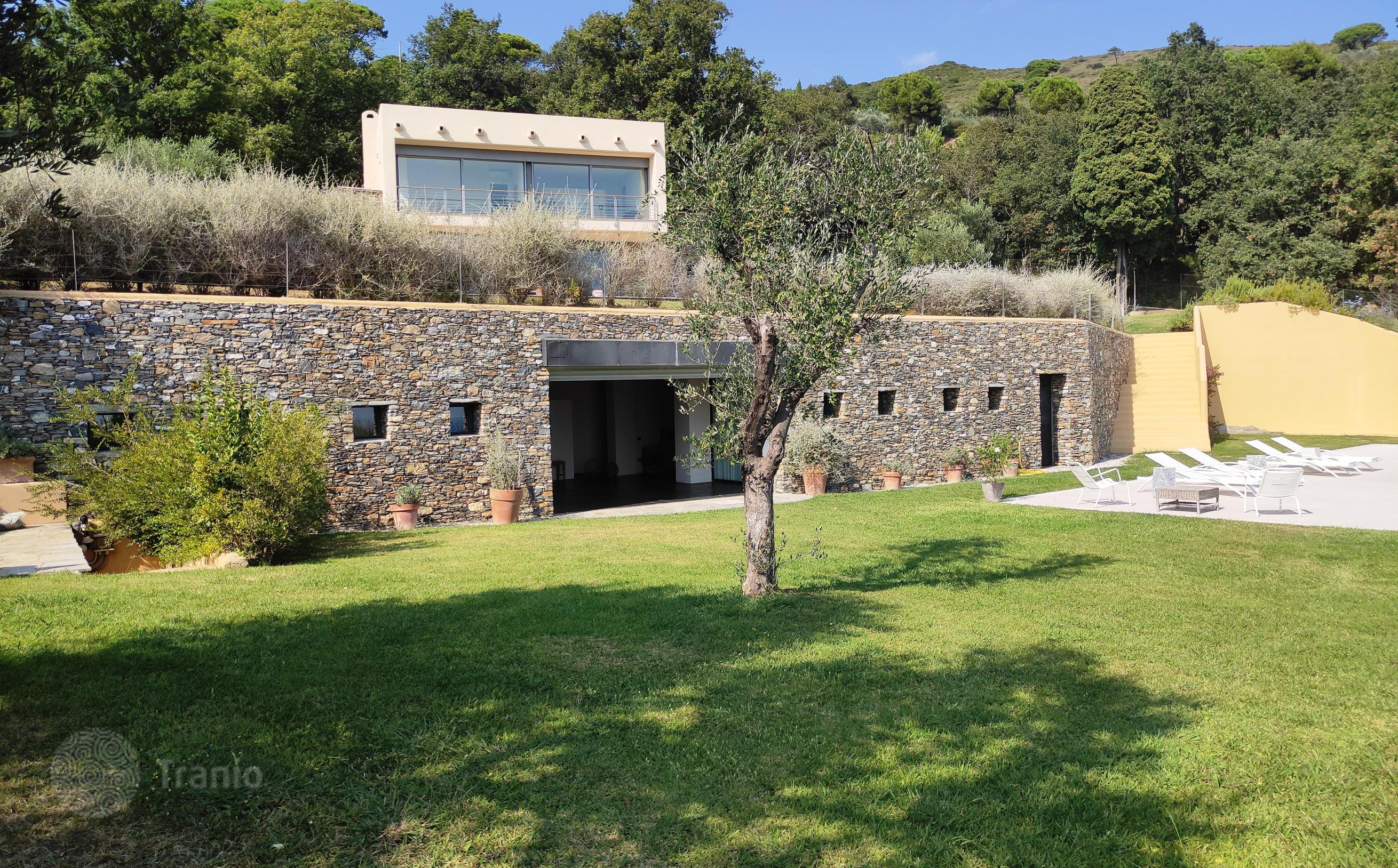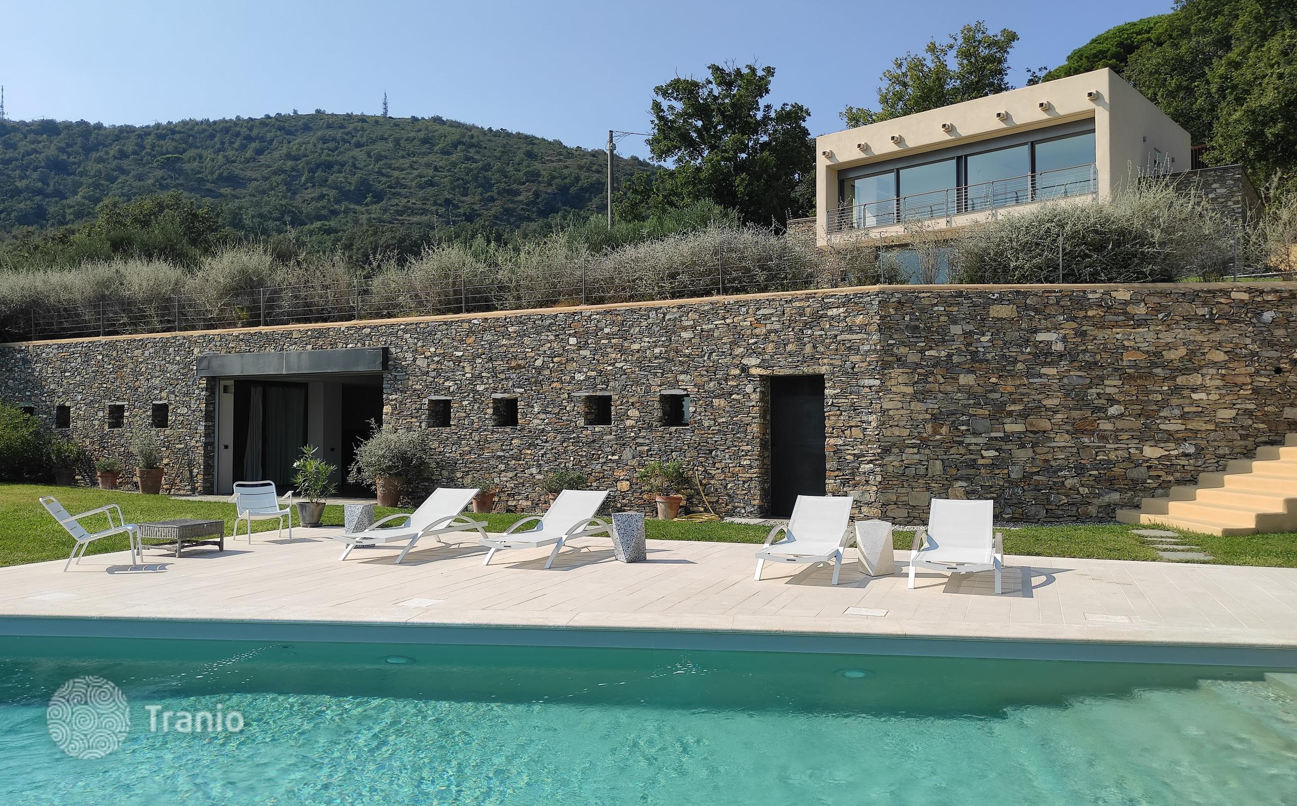 Вилла имеет панорамный вид на живописный залив Алассио. Погруженная в большой частный парк площадью 3000 м², распределенный по трем большим террасам, окруженная стеной, вилла была спроектирована туринским архитектором с целью объединить современность и традиции и спроектирована в виде параллелепипеда. Верхняя часть, ориентированная на юг, опирается на каменное основание, обращенное на юго-восток, таким образом получается использовать затененную площадку перед домом в качестве крыльца. Недвижимость имеет общую внутреннюю площадь около 500 м² и представляет собой эксклюзивную виллу, в которой элегантность и изысканность сочетаются с самыми передовыми технологиями, а также включает пристройку с видом на бассейн. На первом этаже большая и функциональная кухня и гостиная с кабинетом. Наверху вы попадаете в спальную зону, состоящую из 3 спален с ванными комнатами. На нижнем уровне, светлом благодаря большим окнам с видом на сад, находится зона для свободного времени, несколько спален и две ванные комнаты. Большой бассейн размером 15х6 м, удобный крытый гараж, а также большое открытое пространство за виллой, где могут разместиться до 12 автомобилей, дополняют собственность. Предусмотрена возможность строительства третьего объекта под жилье с гаражом.