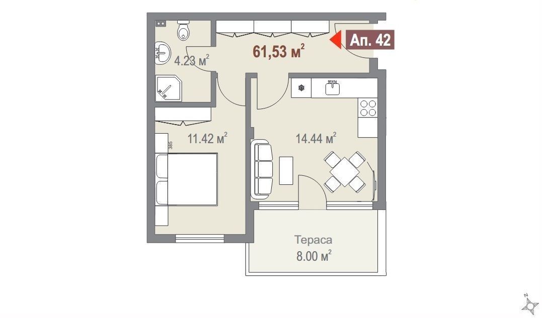 Квартира №42 - 6 этаж, площадь 62 кв.м. - Цена 53 300 евро