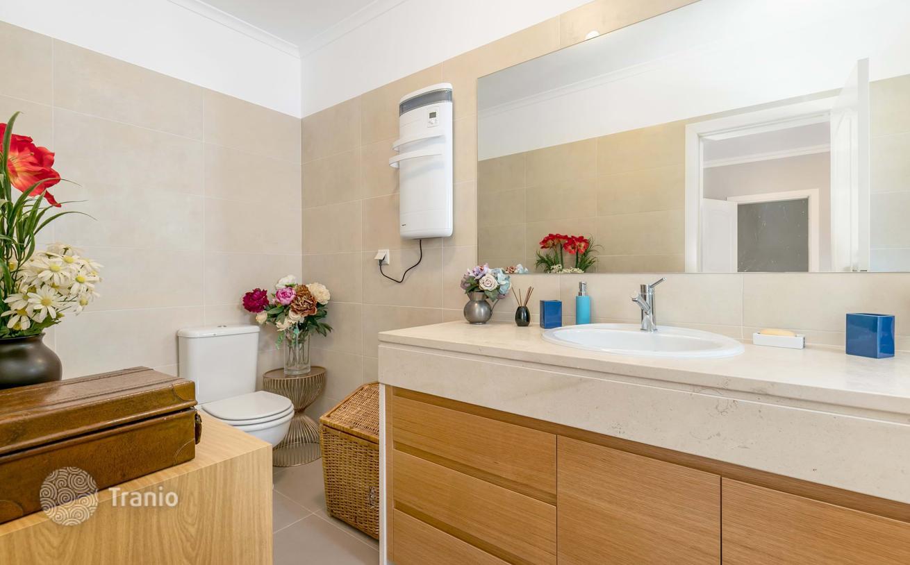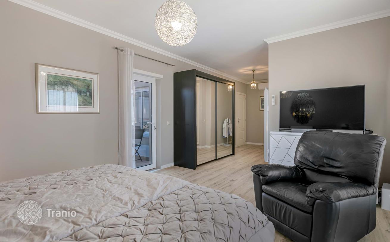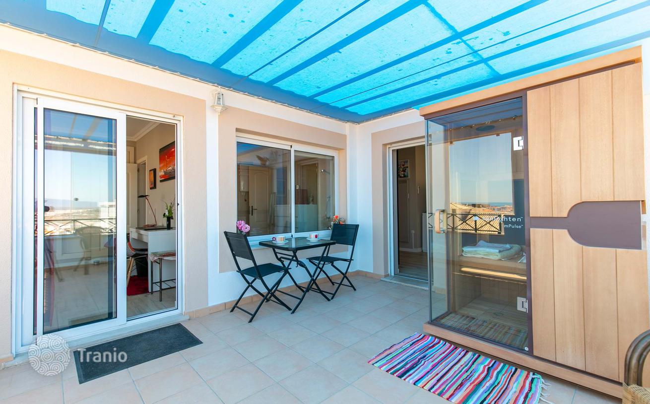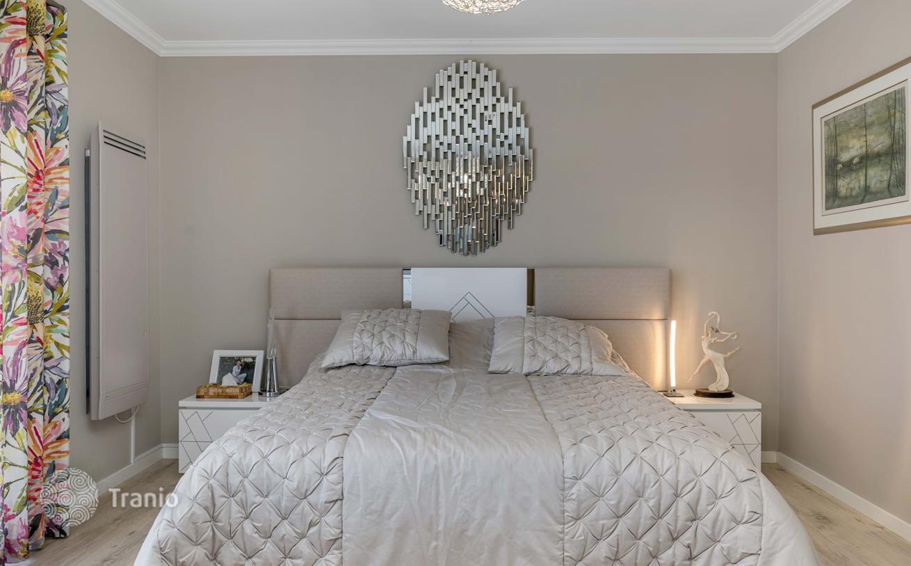 При входе можно попасть в большую жилую зону 83 м² с полностью оборудованной кухней (2 больших холодильника с морозильной камерой, винный погреб, микроволновая печь, посудомоечная машина), очаровательной барной стойкой. Есть большая столовая и гостиная, которая дает доступ к фантастической террасе 28 м², выходящей на юг. Терраса оборудована электрическими жалюзи, так что вы можете наслаждаться отдыхом на свежем воздухе круглый год. Также имеется служебный санузел, полностью оборудованная прачечная (шкафы для хранения вещей, раковина из нержавеющей стали, стиральная машина, сушилка), терраса на восточной стороне для сушки белья на открытом воздухе. Все три спальни имеют ванные комнаты со встроенными шкафами, террасы и отдельную ванную комнату с душем, ванной и сушилкой для полотенец. Главная спальня 30 м² имеет двойную гардеробную и выходит на террасу 18 м² с сауной. В каждой комнате есть центральное отопление, кондиционер и окна с двойным остеклением.