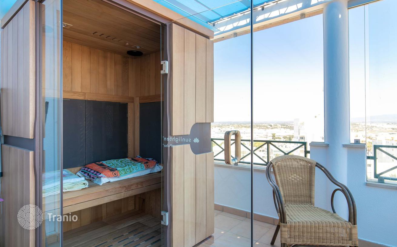 Этот фантастический пентхаус на продажу в Лагуше предлагает захватывающий вид на пляжи Мейя Прайя и Порто де Мош, поле для гольфа Боавишта и горы Моншике. Расположенная на 8 и последнем этаже здания (с двумя лифтами), эта недвижимость находится в безупречном состоянии и готова к заселению, без каких‑либо работ. Пентхаус имеет большой отдельный холл, который расположен прямо перед лифтом. В нём есть 4 террасы, подземный гараж с частной парковкой и кладовая. Пентхаус продается полностью меблированным.
