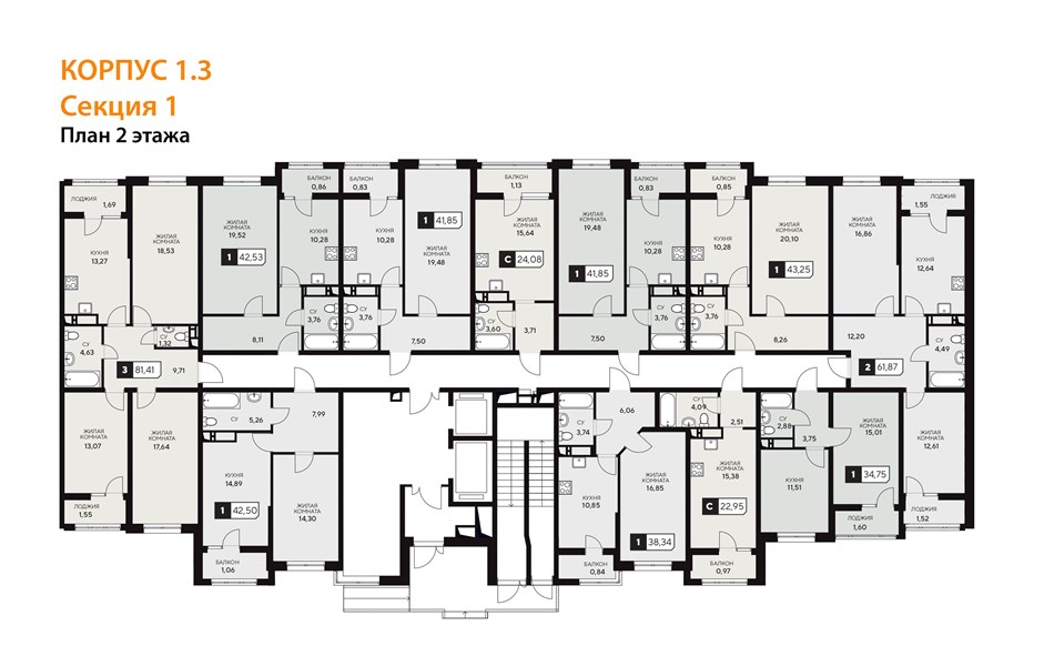 Квартира: 1 к 43,25 кв.м., 2 этаж в комплексе Центральный (Гамма), 2 очередь, корп.1.3, сдача: 2кв. , этажей: 20, адрес Анапское шос., д. 1/1.3, Застройщик: СЗ Гамма.