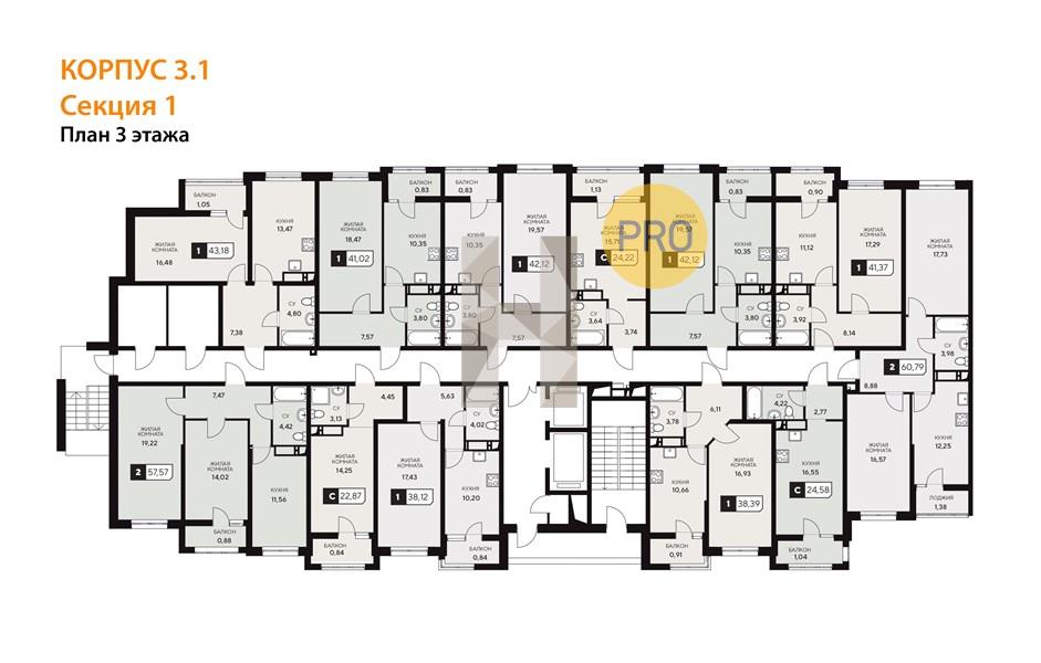 Студия: 24,58 кв.м., 3 этаж в комплексе Центральный (Гамма), 1 очередь, корп.3.1, сдача: 2кв. , этажей: 20, адрес Анапское шос., д. 1/3.1, Застройщик: СЗ Гамма.