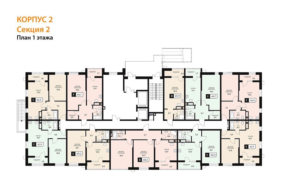 Квартира: 1 к 40,20 кв.м., 1 этаж в комплексе 18/3, 1 очередь, корп.2, сдача: 1кв. , этажей: 15, адрес Анапское шос., д. 18, Застройщик: СЗ Гамма.