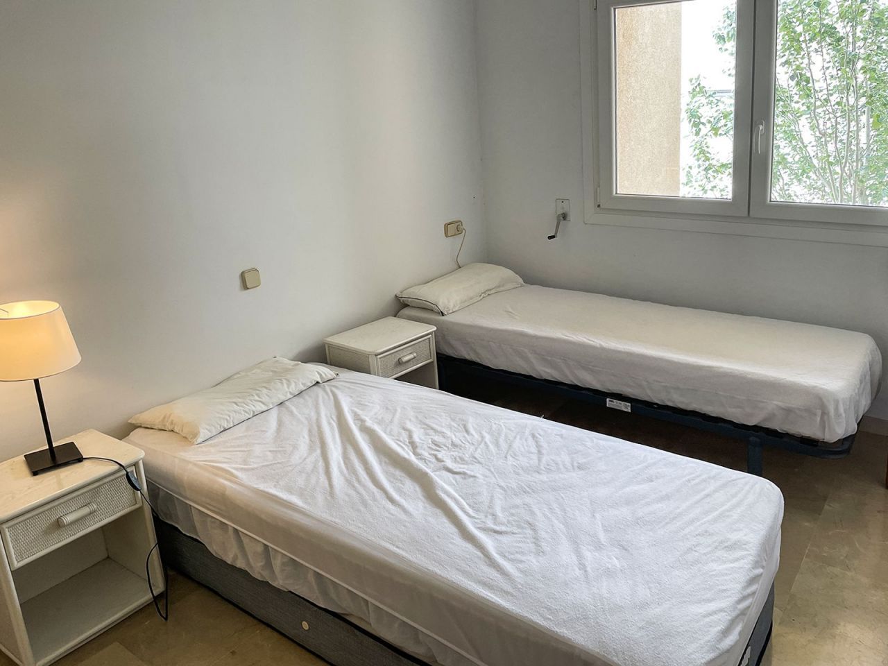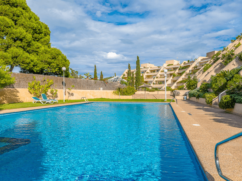 В этих апартаментах есть просторная солнечная терраса, на которую можно попасть из гостиной и обеденной зоны открытой планировки, откуда открывается вид на общественные сады и частичный вид на море. Есть 2 просторные спальни и 1 ванная комната, кухня с отдельной прачечной и много места для хранения вещей в коридоре. Мраморные полы, кондиционер, лифт и 1 место в частном гараже. Окна с двойным остеклением и электрические жалюзи были недавно установлены повсюду. Большой общий бассейн с террасами и лужайками для принятия солнечных ванн. Идеальная инвестиция в одном из лучших мест на Майорке!