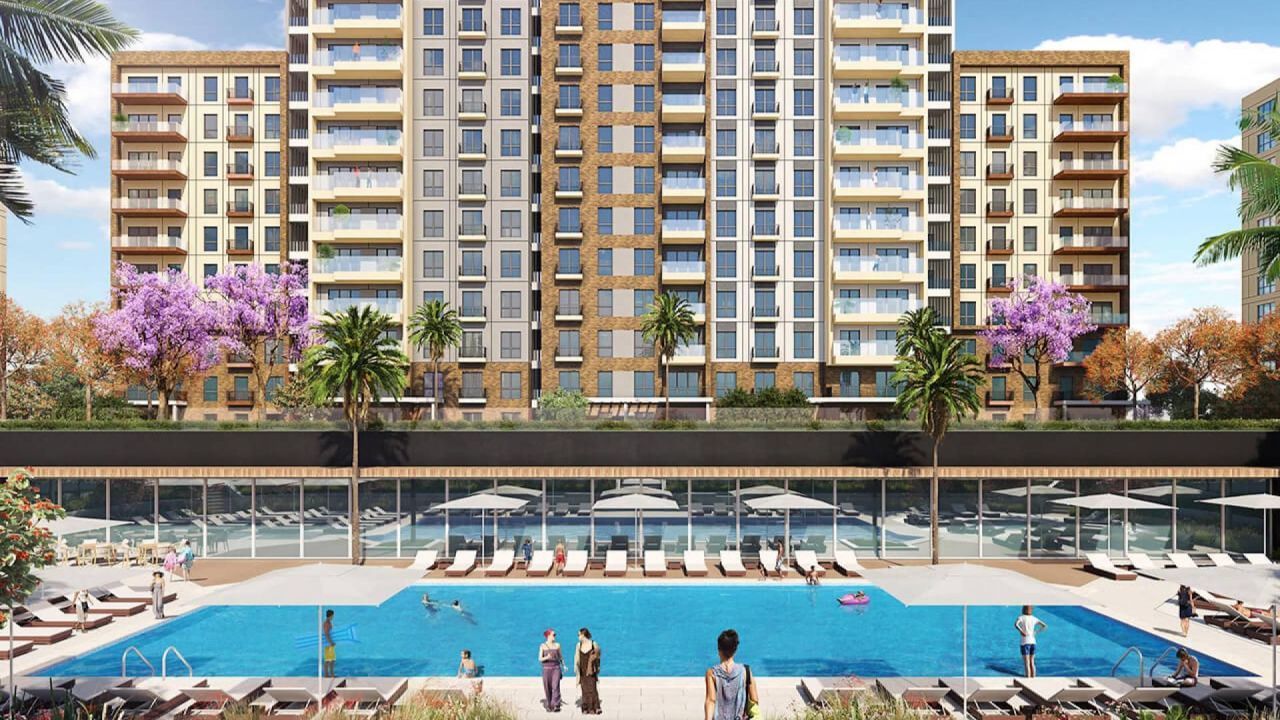 Оснащение дома включает в себя бассейн, детские площадки, фитнес-центр, консьерж, лифт, охраняемую парковку и территорию, ресторан и салон красоты.