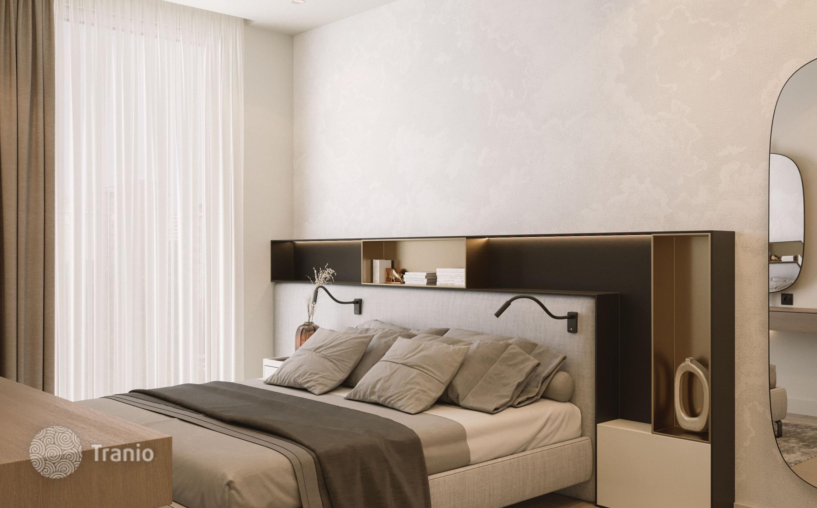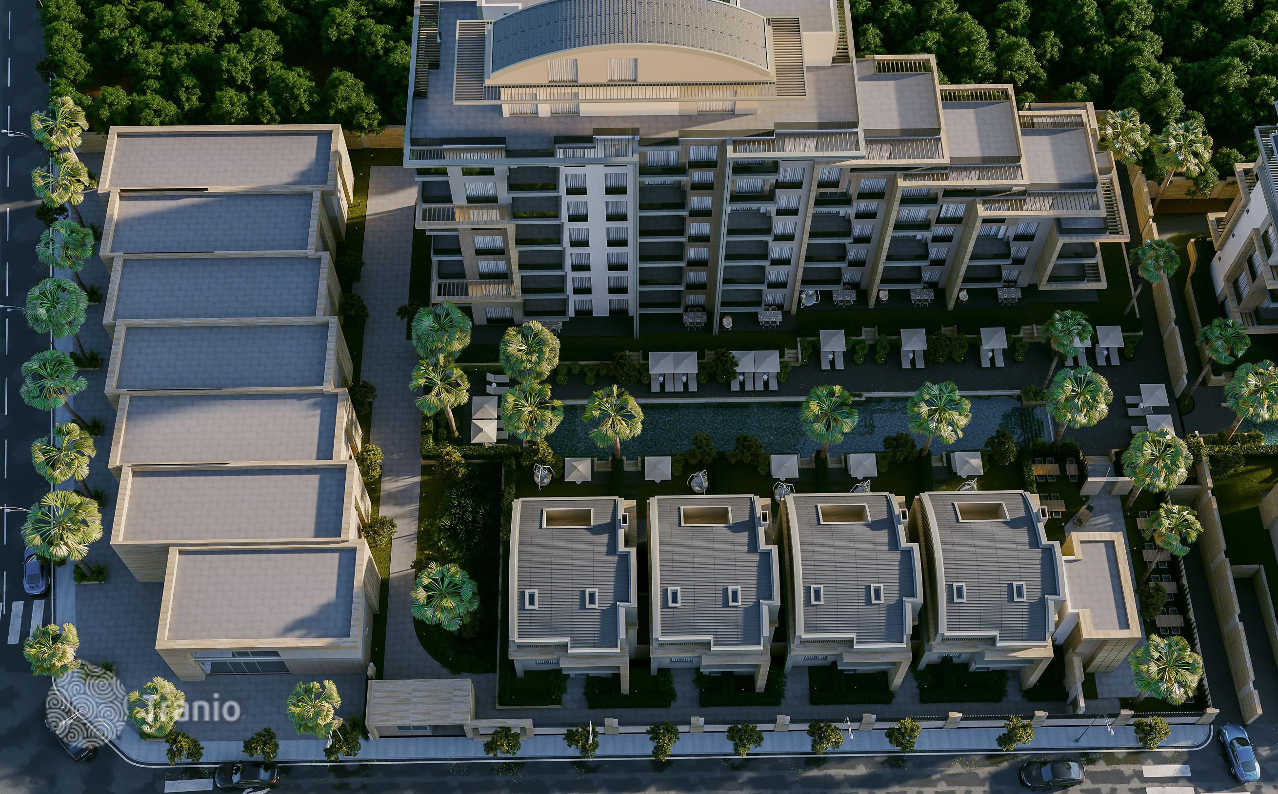 В проекте есть апартаменты с 1–3 спальнями, а также виллы. Каждый юнит оборудован бытовой техникой и кухонной мебелью, шкафом для одежды, гардеробной, системой кондиционирования. У апартаментов на первом этаже есть частный сад.