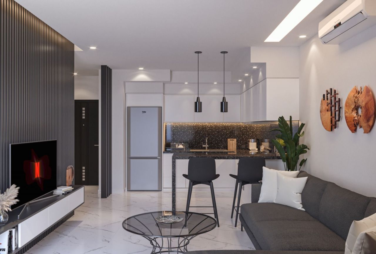 Прекрасный вариант жилья в Авсалларе - квартира площадью 55 м2 в строящемся жилом комплексе TEST-Gorod. Планировка 1+1, всего 2 комнаты, включая одну спальню и один санузел. Квартира расположена на первом этаже 7-этажного дома в Турции, Авсаллар.