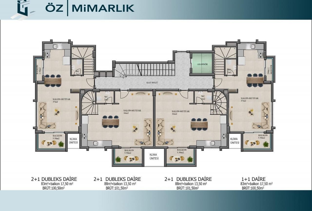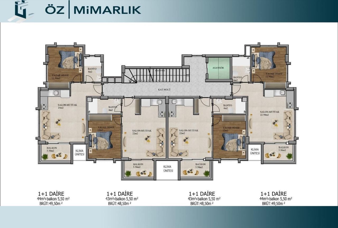 Продаётся квартира в новом доме в городе Авсаллар, расположенном у моря. Общая площадь составляет 50 квадратных метров, планировка 1+1, всего комнат - 2, в том числе 1 спальня. Квартира расположена на 3 этаже 5-этажного дома.