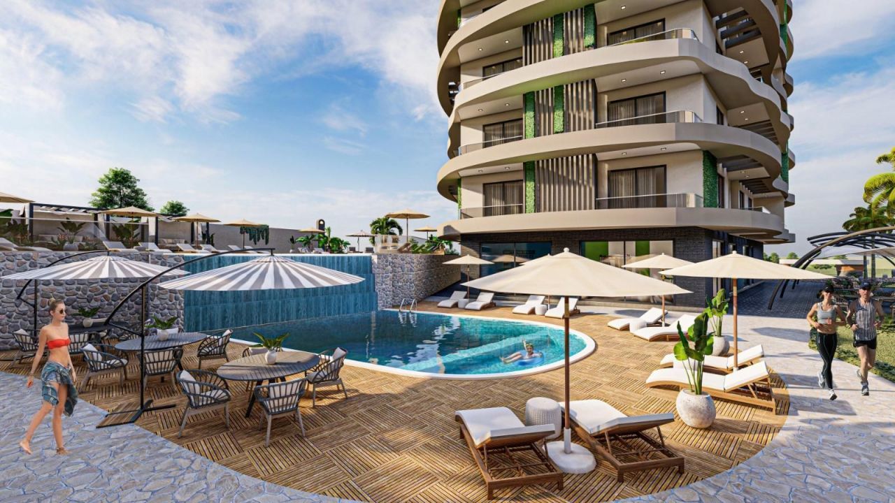 Этот строящийся объект находится всего в 1699 метрах от моря и представляет собой просторную квартиру площадью 87 кв.м. с планировкой 2+1.