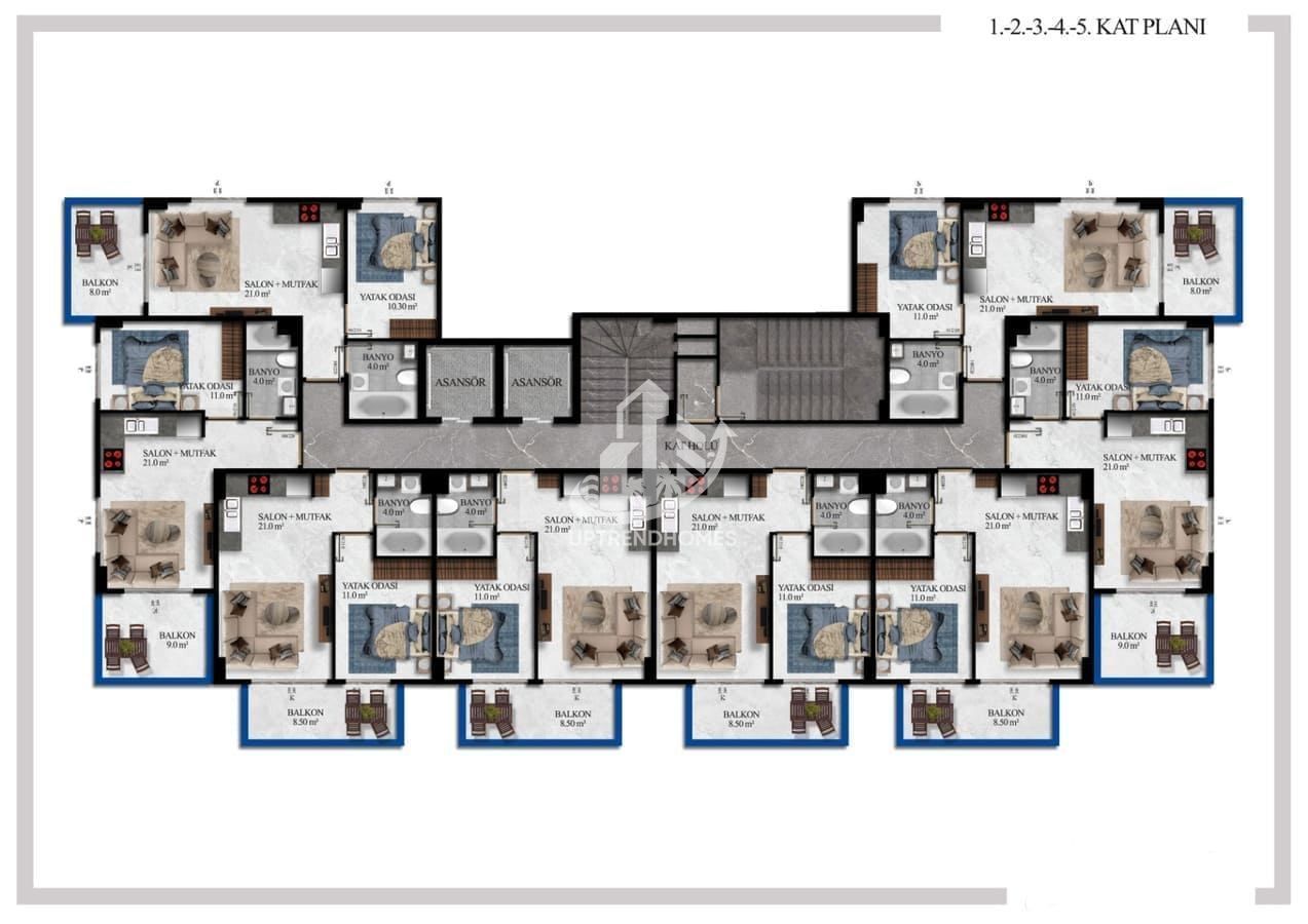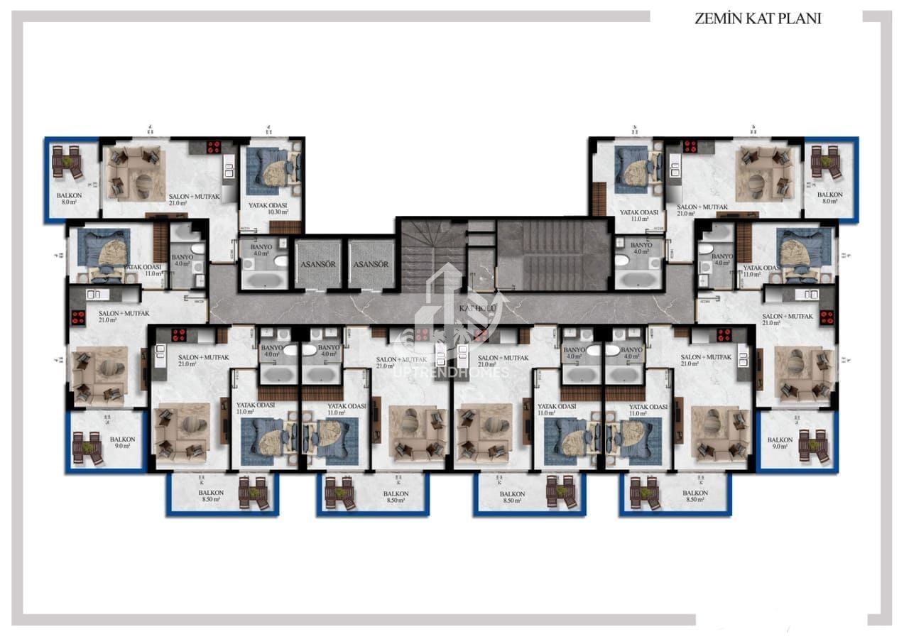 Прекрасный выбор для тех, кто ищет недвижимость в Турции. Представляем вашему вниманию строящийся объект в городе Авсаллар, который находится на первом этаже девятиэтажного дома.