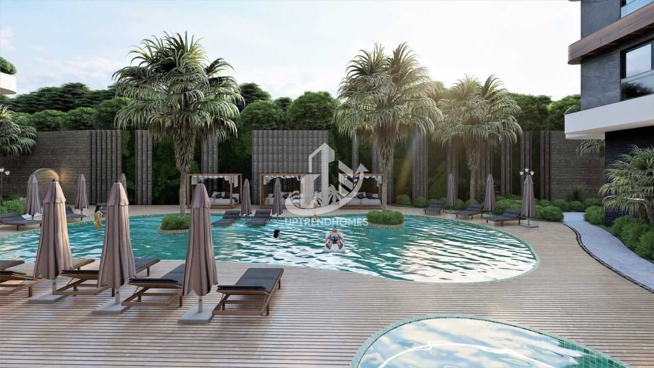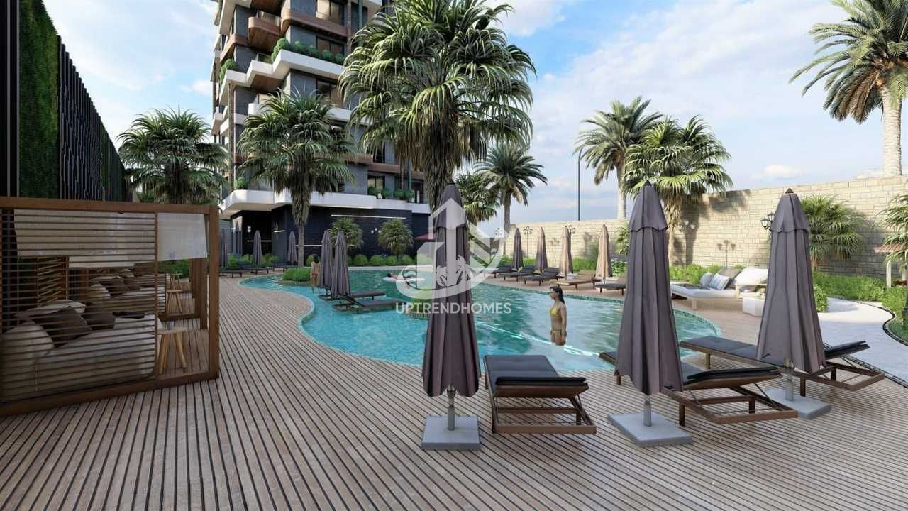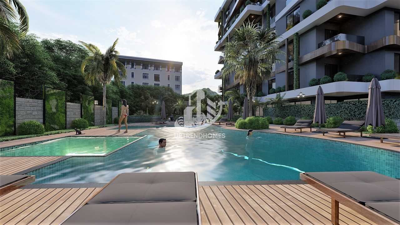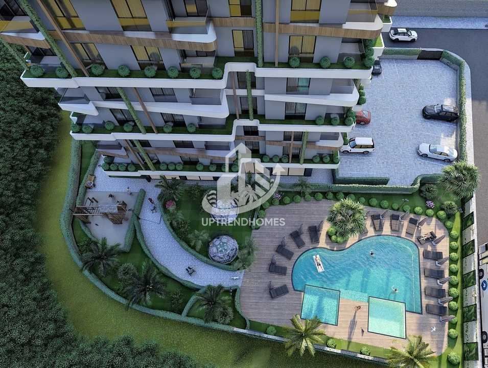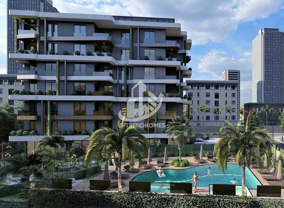 Дом или жилой комплекс оснащен всем необходимым для комфортного проживания. Фитнес-центр, бассейн, детские площадки и охраняемая территория - все это доступно жильцам. Расстояние до аэропорта составляет 65 м, до моря - 1000 м, до центра - 500 м.