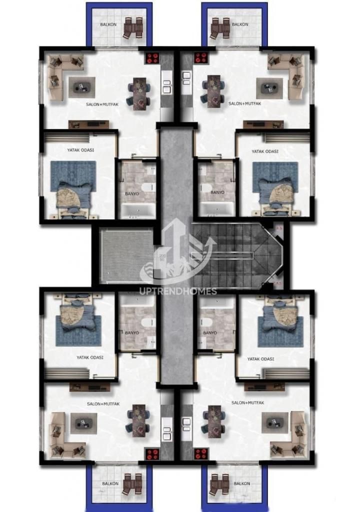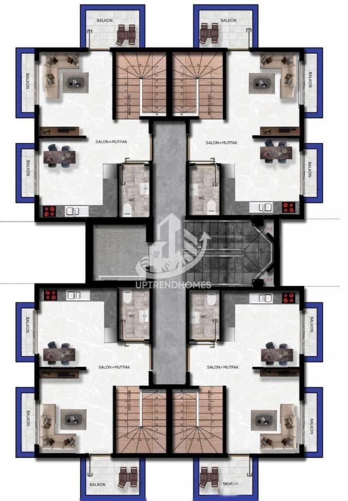 Предлагаем вашему вниманию строящийся объект в городе Авсаллар. Планировка 1+1, всего комнат - 2, в том числе 1 спальня и 2 санузла. Квартира расположена на 1 этаже 6-этажного дома.