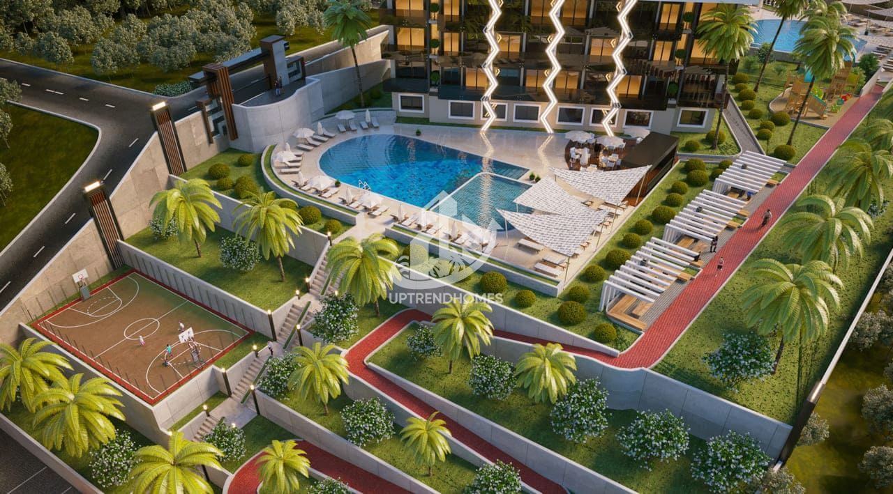 Дом расположен в Турции, в городе Авсаллар. Инфраструктура дома включает в себя бассейн, детские площадки, фитнес-центр, консьерж и охраняемую территорию.