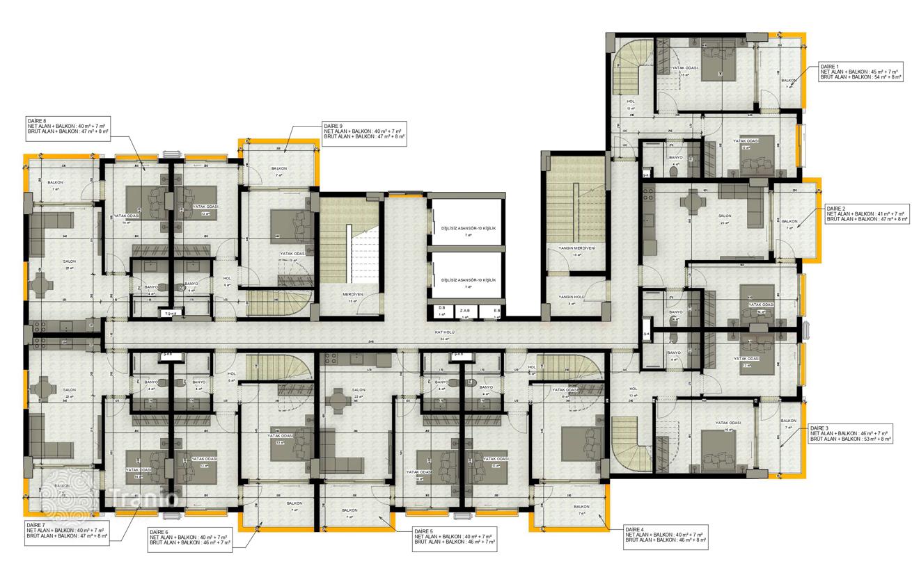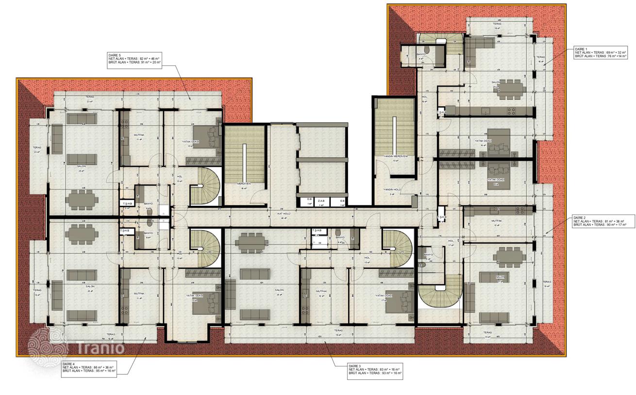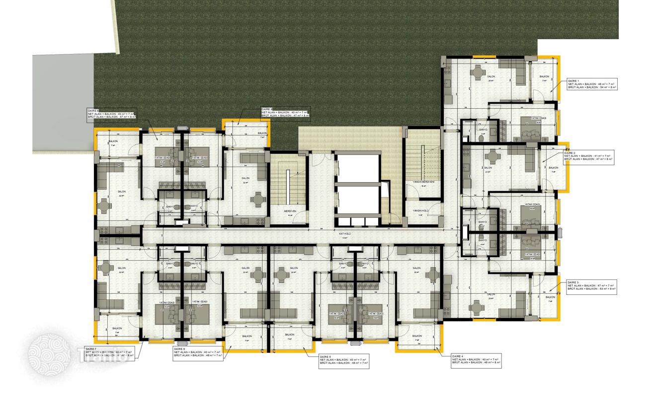 Резиденция будет построена на участке площадью 900 м² и будет состоять в общей сложности из 54 квартир. Наш проект предлагает множество удобств для вашего комфорта, безопасности и развлечений. К вашим услугам оздоровительный и спа-центр, игровая площадка, открытый бассейн, сауна, площадки для барбекю, парковка.