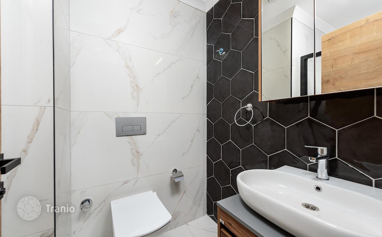 Квартира планировкой 1+1, с чистовой отделкой, кухонным гарнитуром и оборудованной ванной комнатой.