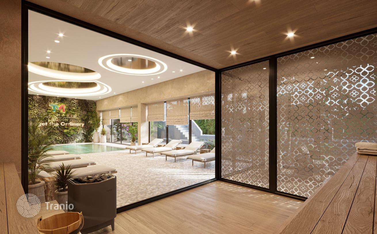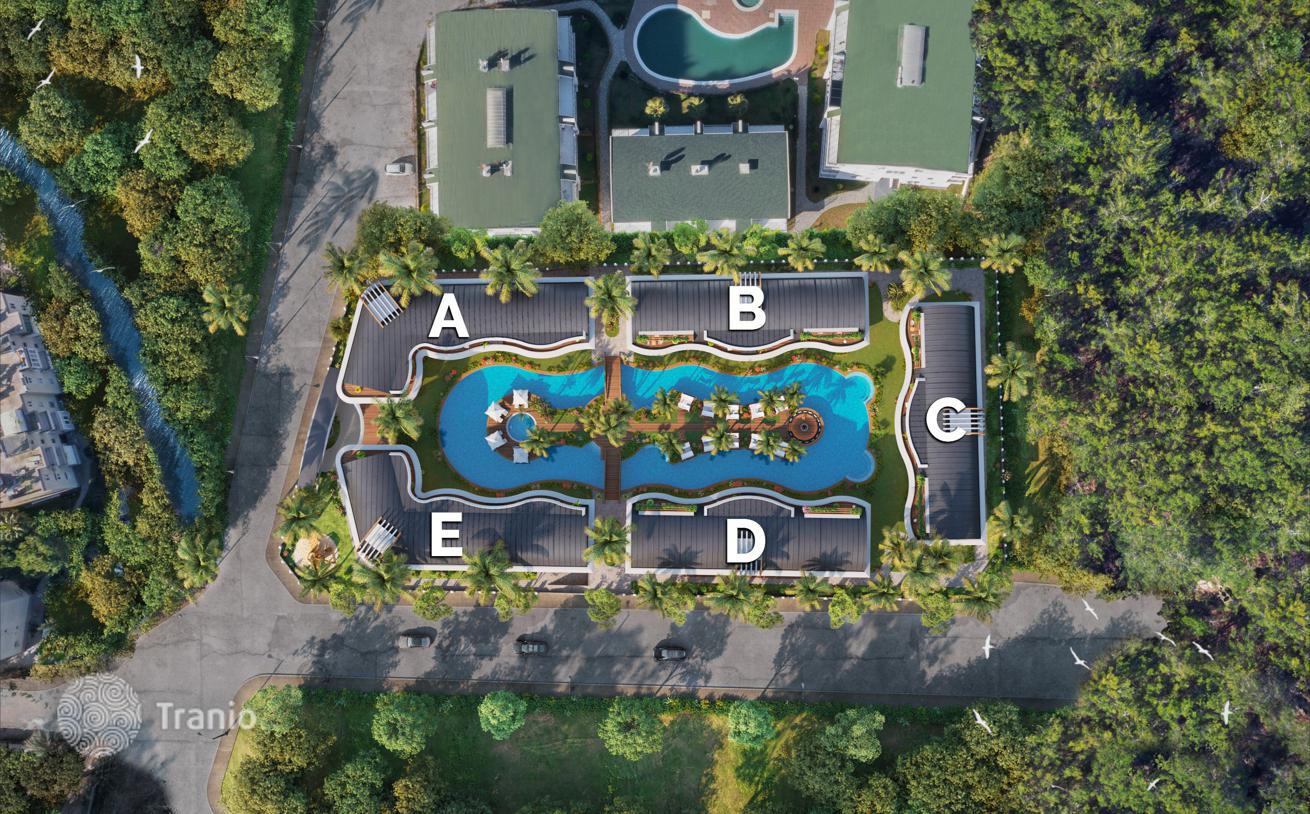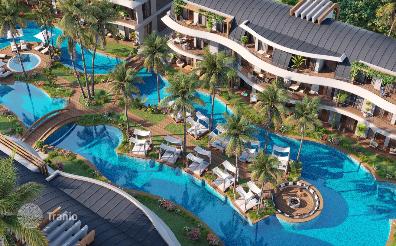 Комплекс состоит из апартаментов Премиум Класса, инфраструктуры 5-Зведочного Отеля с доступом на частный пляж.