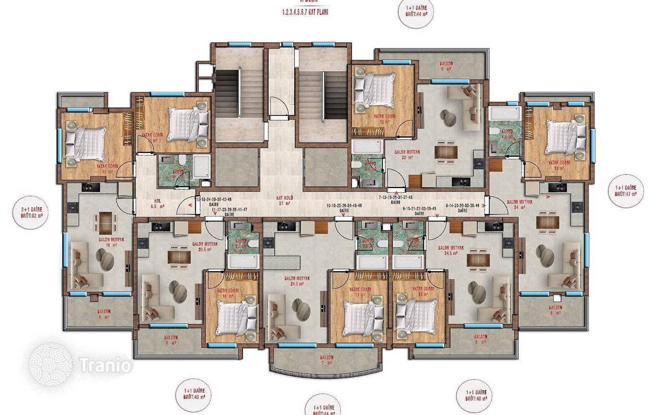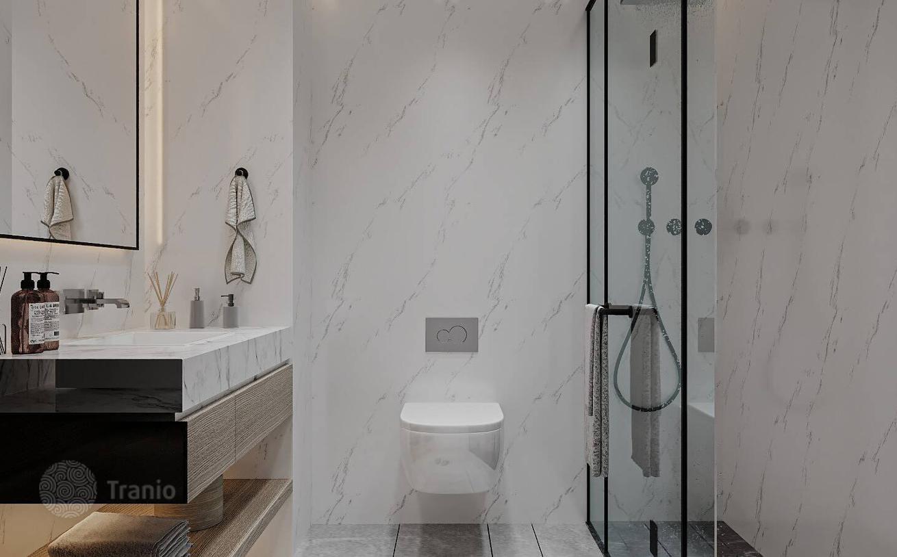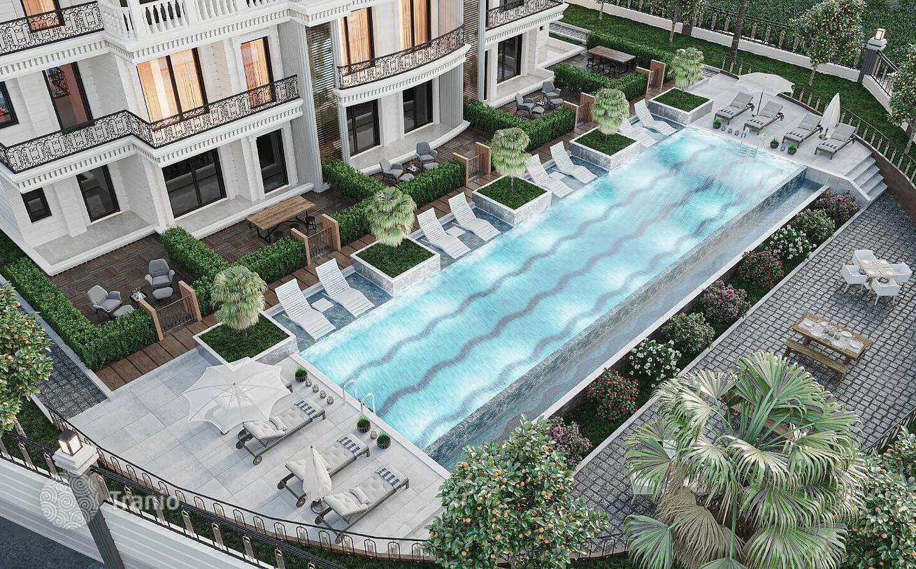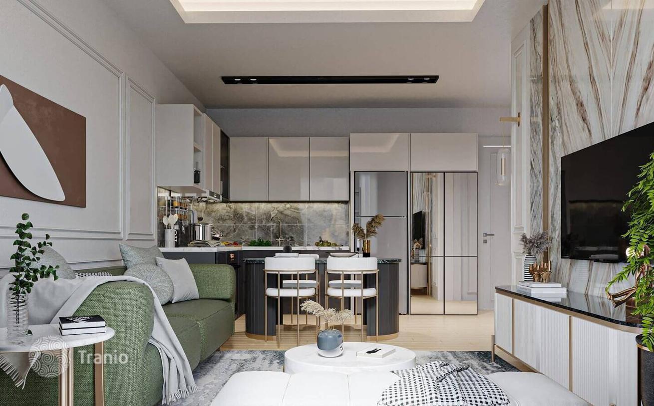 Новые недорогие квартиры с видом на море находятся в проекте со светодиодной подсветкой, зоной у бассейна, электрической зарядной станцией и многофункциональными спортивными площадками (теннисный корт, баскетбол).