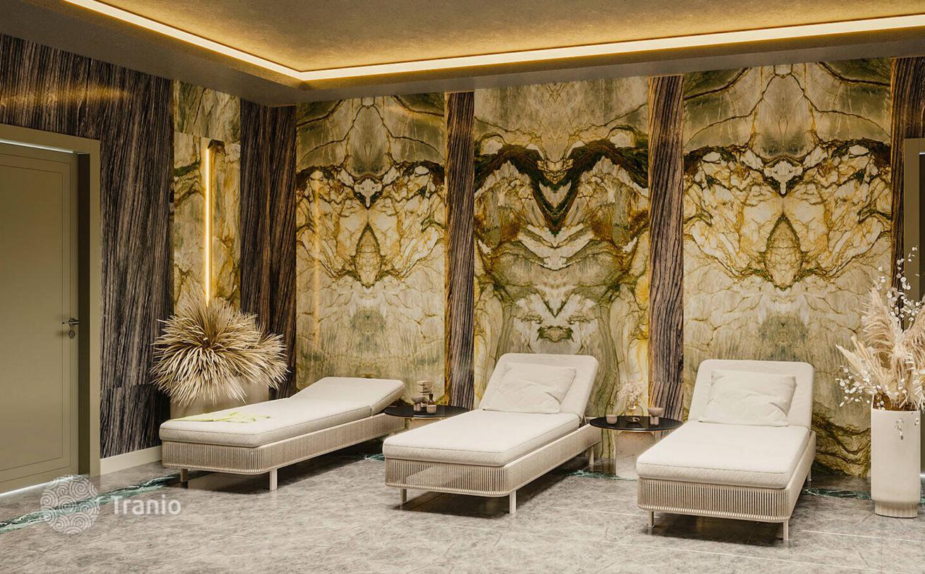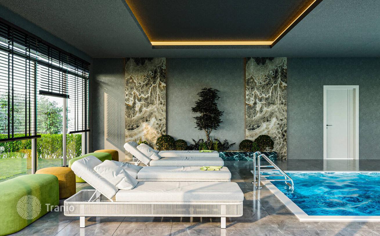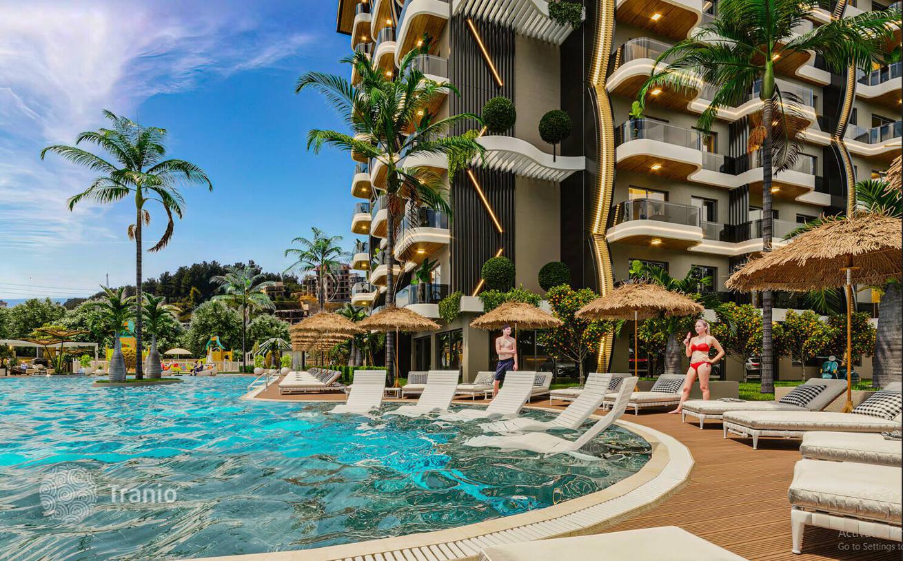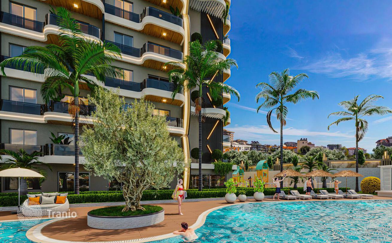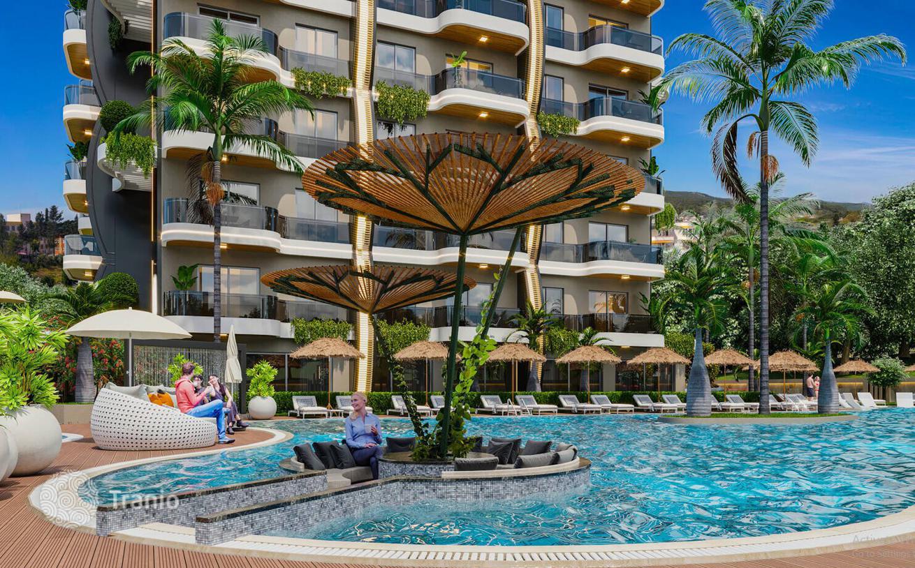 Стильные апартаменты расположены в проекте, состоящем из 166 квартир в 2 блоках. В проекте крытый и открытый бассейны, турецкая баня, сауна, парная, массажный кабинет, комната отдыха, фитнес, зоны отдыха, детские игровые площадки, баскетбольная площадка, теннисный корт, бильярд, настольный теннис, пешеходные дорожки, парковка для велосипедов, система распознавания автомобильных номеров, генератор, круглосуточная охрана, автостоянка и трансфер до пляжа.