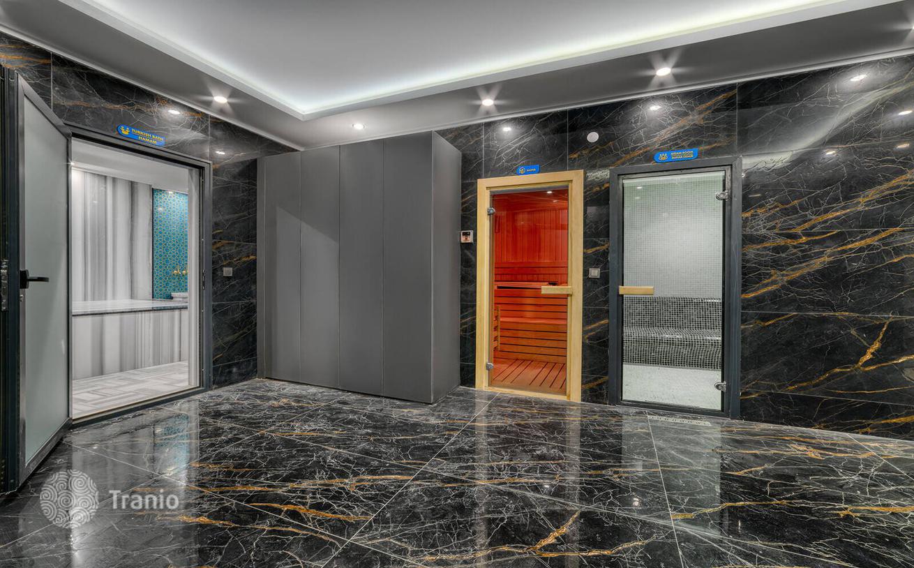 В роскошных квартирах есть кухня открытой планировки, ванная комната, душевая кабина и балкон. В двухуровневых апартаментах также есть терраса. Квартиры в Алании оснащены центральной спутниковой системой, полами из керамической плитки, подвесными потолками, точечной подсветкой, межкомнатными дверями в американском стиле, стальной входной дверью, стандартной изоляцией, душевой кабиной, шкафами в ванной комнате, кухонным гарнитуром из ламинированного МДФ и с гранитной столешницей.