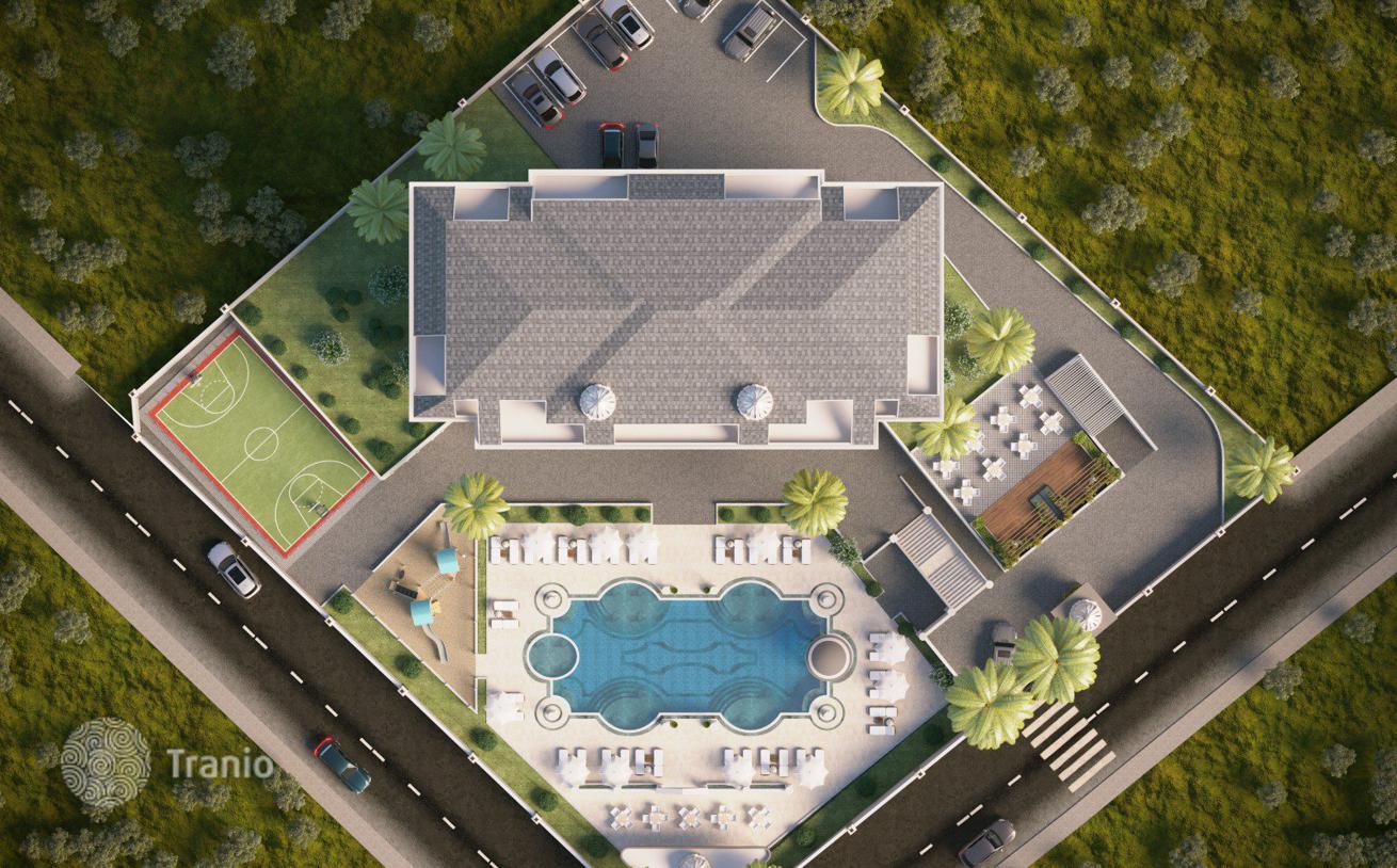 Резиденция будет построена на участке площадью 3800 м² и будет состоять в общей сложности из 63 квартир. Наш проект предлагает множество удобств для вашего комфорта, безопасности и развлечений. К вашим услугам оздоровительный и спа-центр, солярий, игровая площадка, теннисный корт, детский клуб, открытый бассейн, крытый бассейн, сауна, площадки для барбекю, парковка, баскетбольная площадка, волейбольная площадка, частная охрана.
