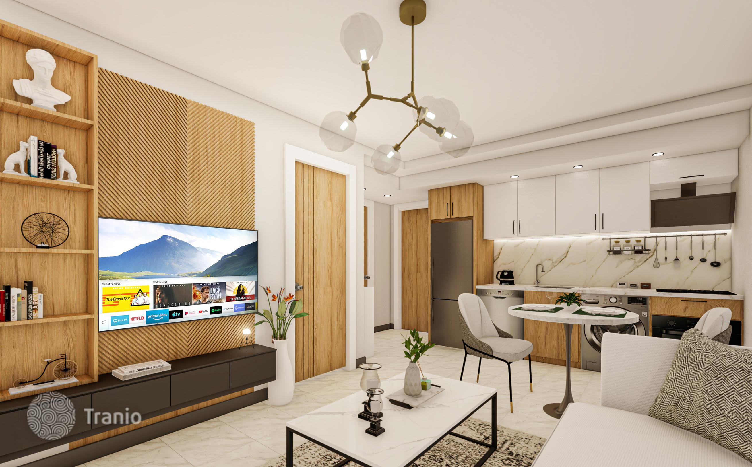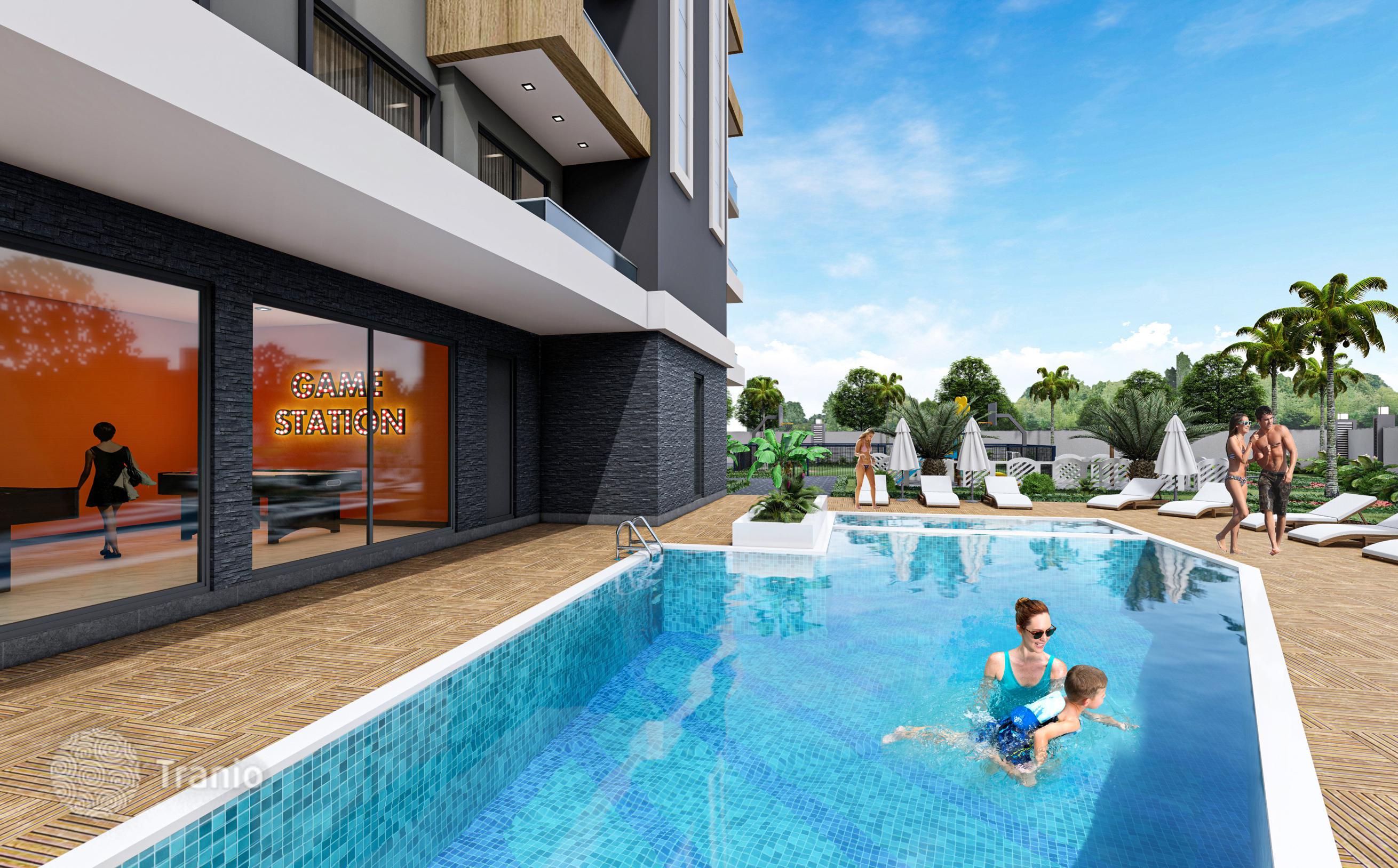 Предлагаются квартиры в комфортабельной резиденции с открытым бассейном и крытым бассейном с подогревом, тренажерным залом, сауной, хамамом и парной, рестораном и кафе, мини-клубом и детской игровой комнатой, детской площадкой, крытой и открытой парковкой, ухоженным садом и зелеными зонами.