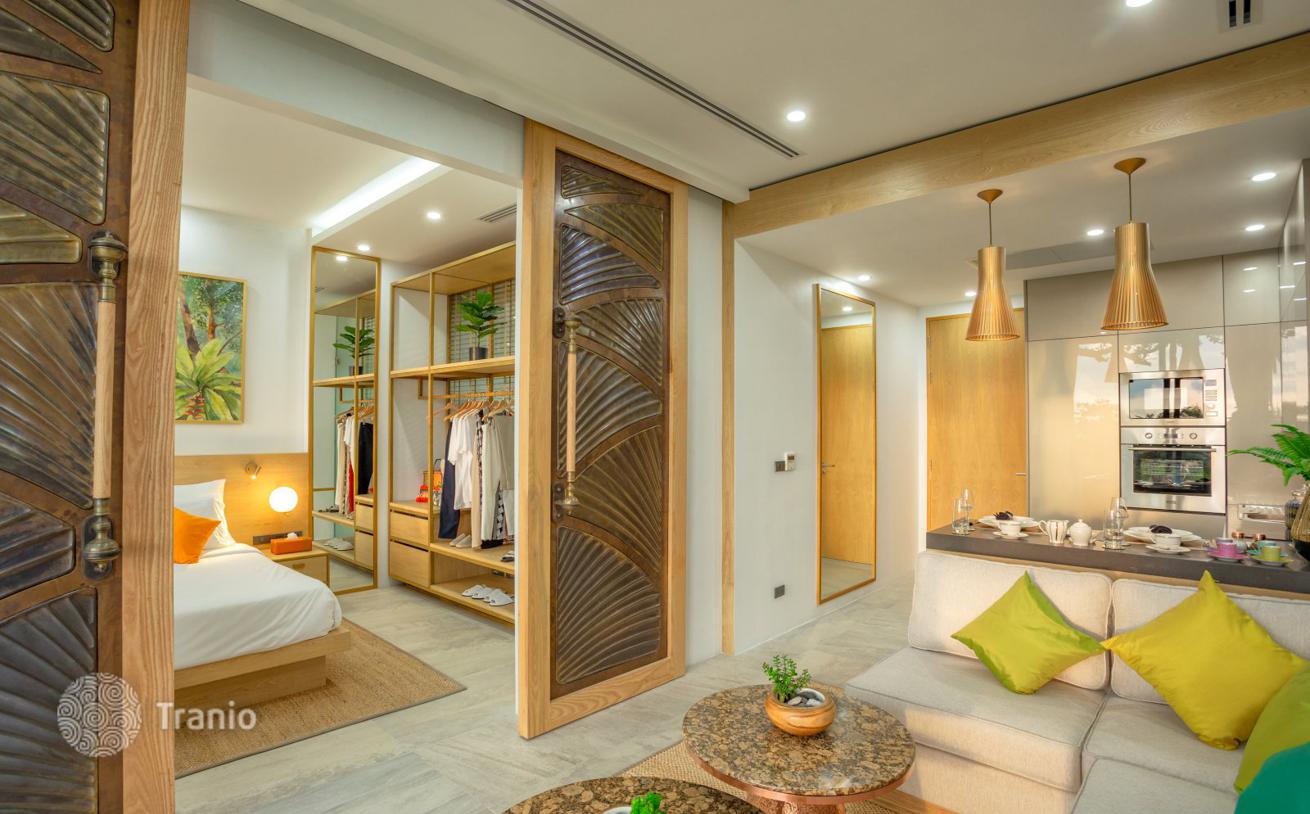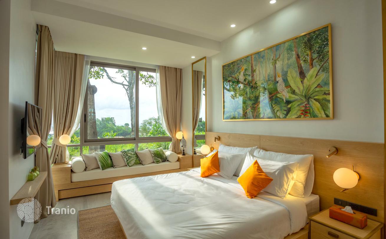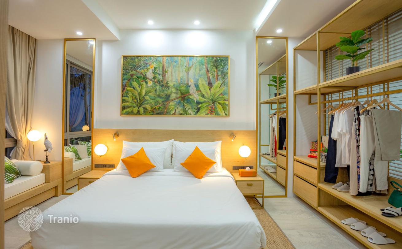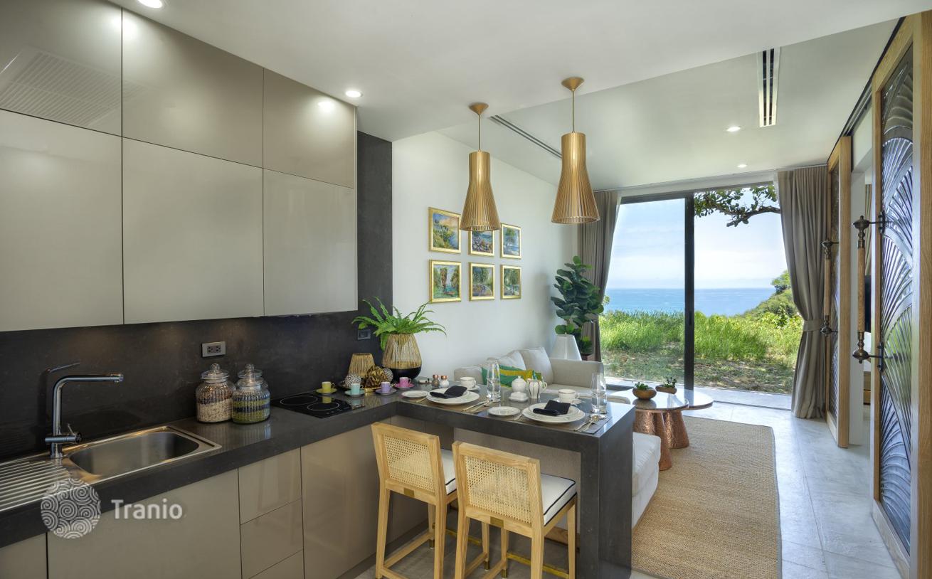 Просторная квартира 88. 5 м² с двумя спальнями и двумя ванными комнатами. Из окон открывается замечательный вид на сад с тропической зеленью. Особенностью квартиры является высота потолка — 3.2 м, что значительно выше общепринятых стандартов. Квартира полностью меблирована и оборудована техникой. Гостиная совмещена с кухонной зоной и столовой. На балкон, который скорее назовешь трассой, можно попасть из гостиной и второй спальни. Площадь мастер-спальни позволяет выделить и оборудовать место для отдыха у панорамного окна. В ванной комнате, прилегающей к мастер-спальне, помимо душевой зоны, установлена ванная. Квартира располагается на 1-м этаже, угловая, т. ч. наличие соседей предполагается только с одной стороны и соединение проходит со стеной ванной комнаты. Данная квартира расположится в бутик-комплексе состоящем из 3-х зданий всего по два этажа каждый. В зоне резиденции находится 51 юнит, только с одной и двумя спальнями. Проживающие в резиденции смогут наслаждаться панорамным видом на море и закат у бассейна на крыше, а также пользоваться инфраструктурой отельной части комплекса: несколько бассейнов 2 спортзала СПА 2 ресторана регулярный автобус до пляжа Карон эко-парк размером 32 000 м² детский клуб и детский бассейн ресепшн 24/7 Квартиру можно использовать для личного проживания или передать в управление отельному оператору и получать пассивный доход. Репутация и опыт УК с мировым именем гарантирует стабильно растущий доход из года в год. По самым пессимистичным расчетам, можно говорить о прибыли от 7% годовых. Помимо квартир с видом на горы и сад, как описано выше, в наличии квартиры с панорамным видом на море. Стартовая цена — 13 098 000 ТНВ (378 600 $) Предложений на данный момент осталось ограниченное количество.