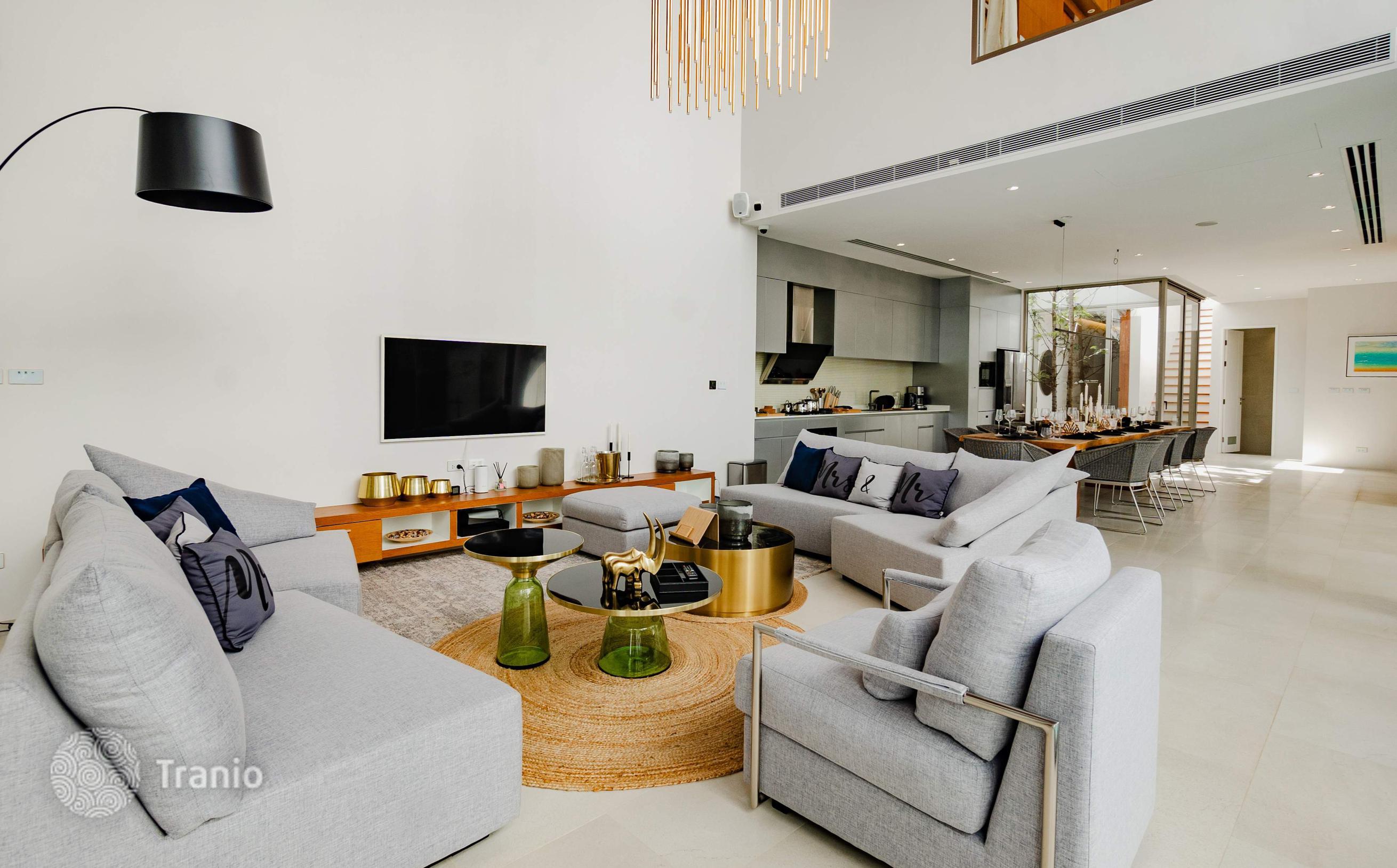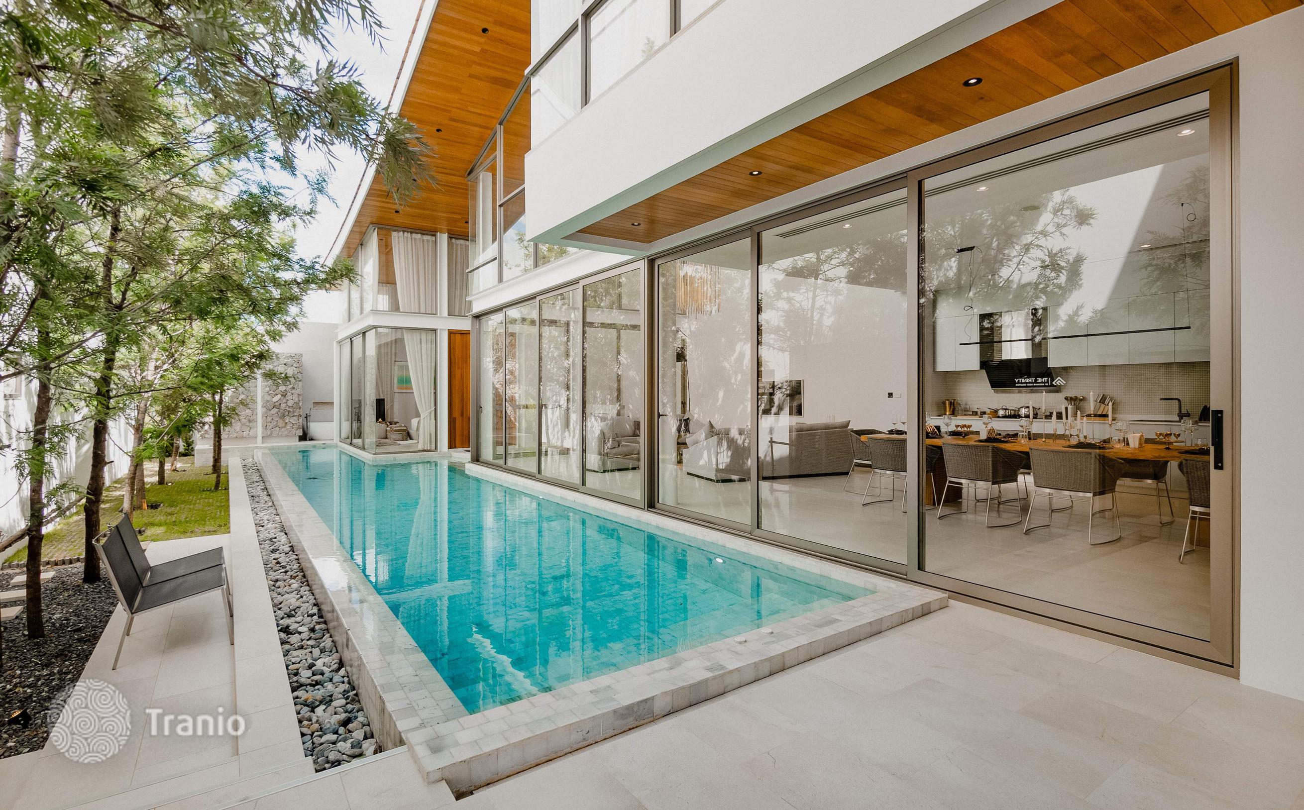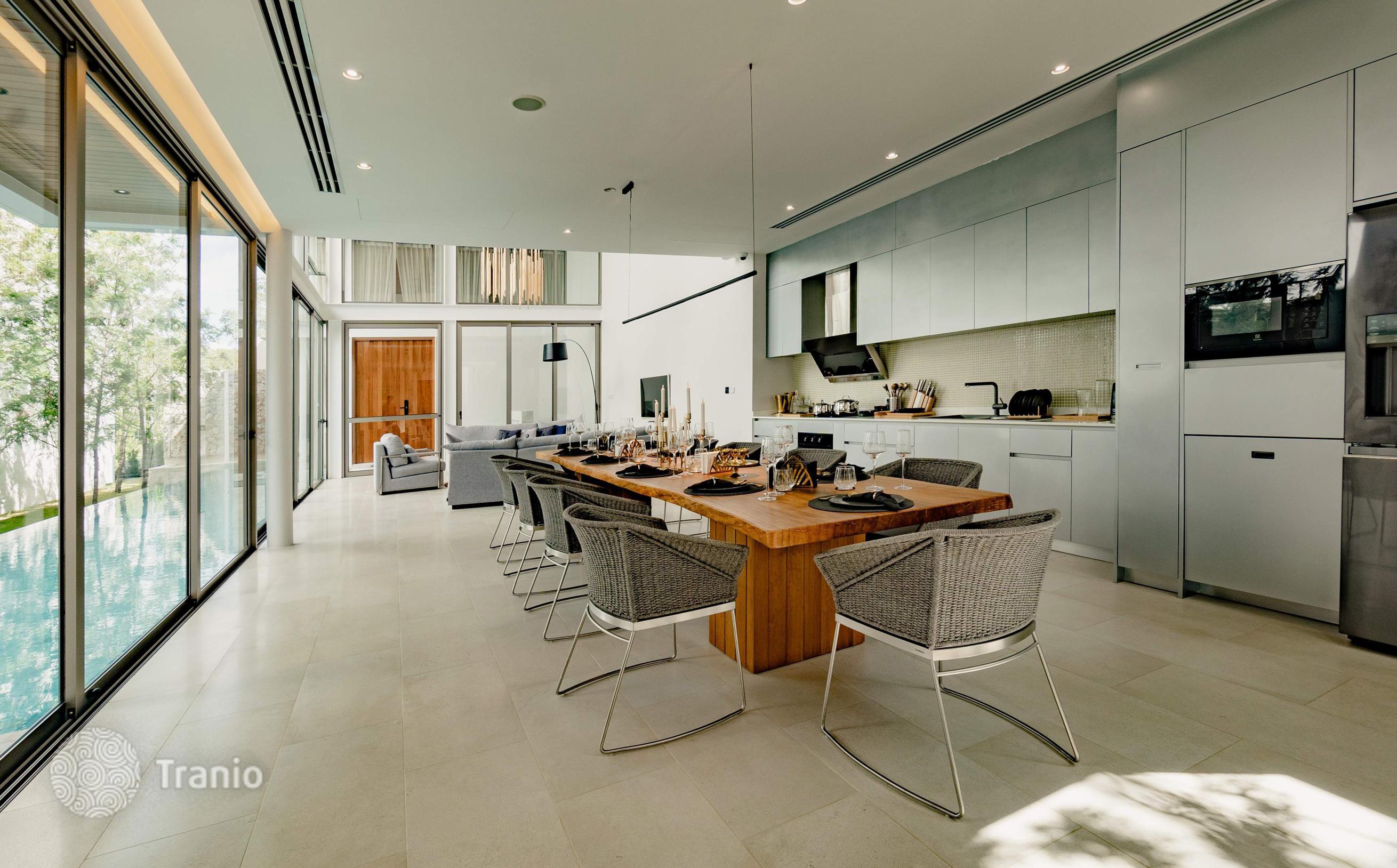 Безупречно спроектированная и отделанная в соответствии с высочайшими стандартами качества, каждая двухэтажная вилла предлагает образ жизни, который вам нравится. В комплексе: На территории более 9 000 м² расположено всего 6 частных вилл. Круглосуточная охрана, зона рецепции и фитнес на территории. Снаружи: Частная территория с изгородью, что создает атмосферу приватности. Бассейн, терраса для загара, душ у бассейна. Перед виллой удобная частная парковка. Внутри: Стильная современная вилла с бассейном, которая сочетает в себе элементы модернизма, минимализма и ар-деко, а также традиционный дизайн кривой крыши. Гармоничное сочетание роскоши, спокойствия и природы. Просторные жилые помещения идеальное место для семейного отдыха и приема гостей. Они спроектированы с широким открытым пространством второго света и с панорамными окнами. Вилла сдается с полной отделкой, но без мебельного пакета, его можно приобрести за дополнительную плату.