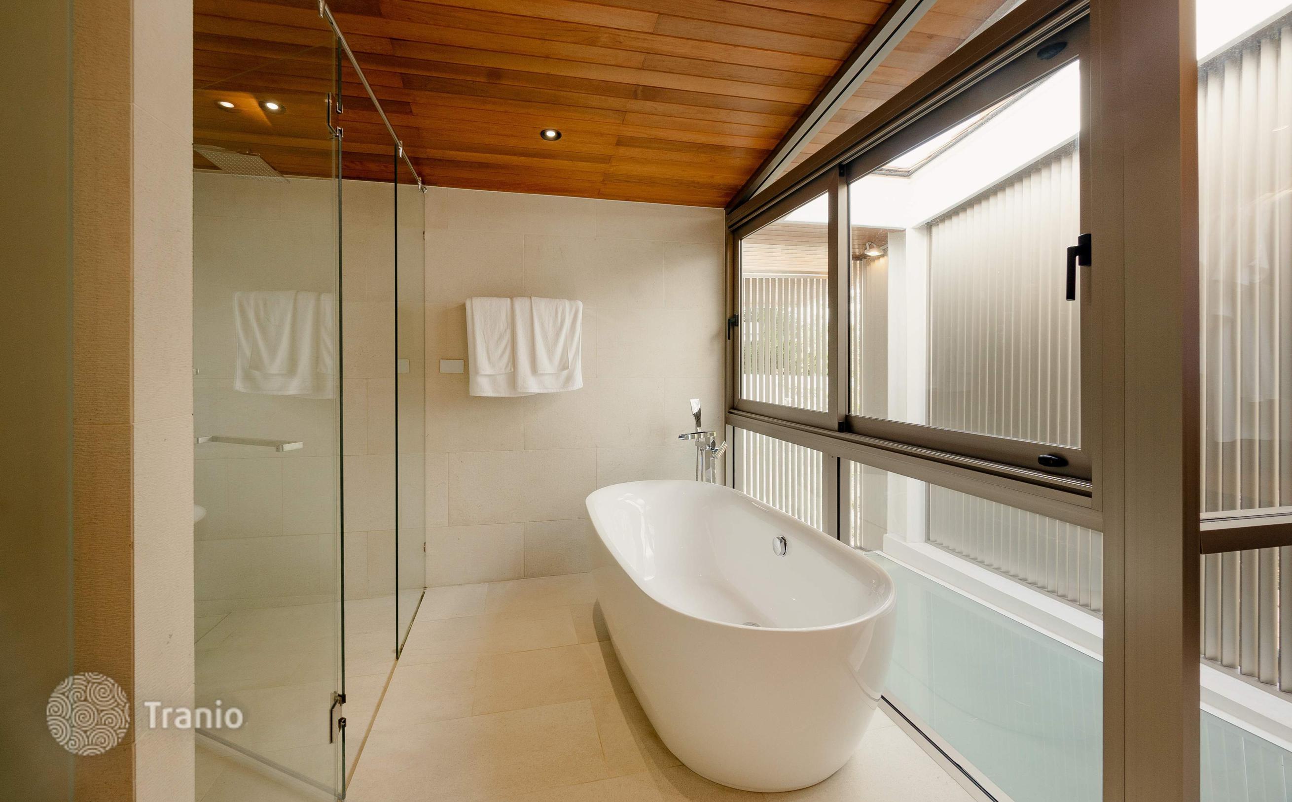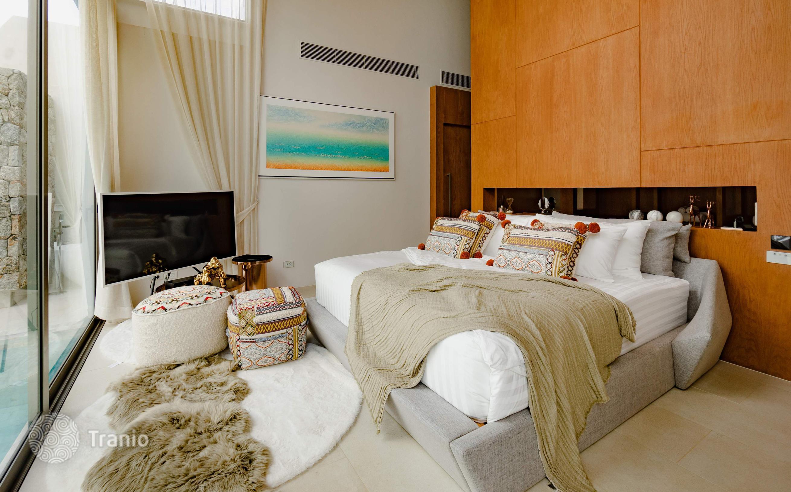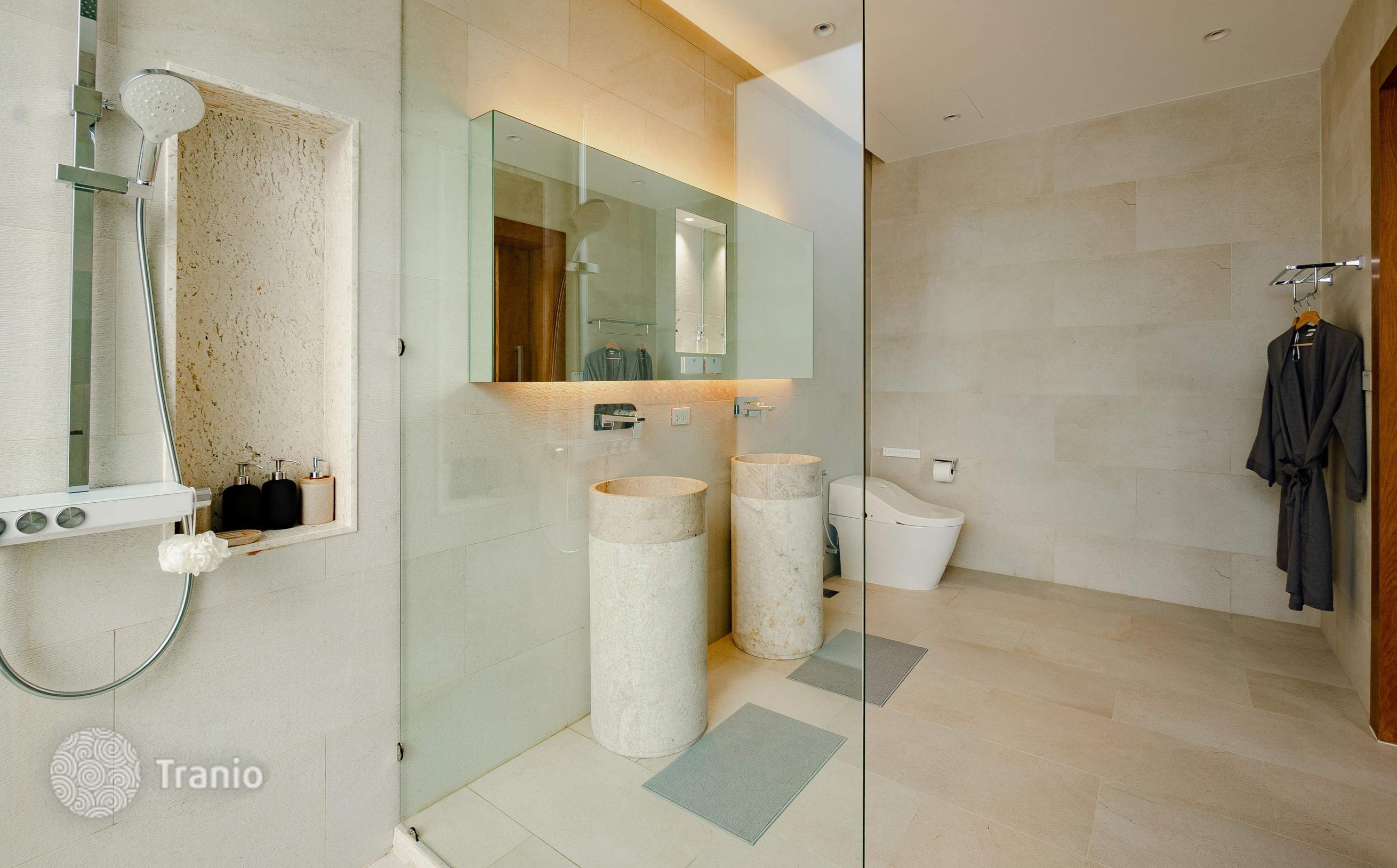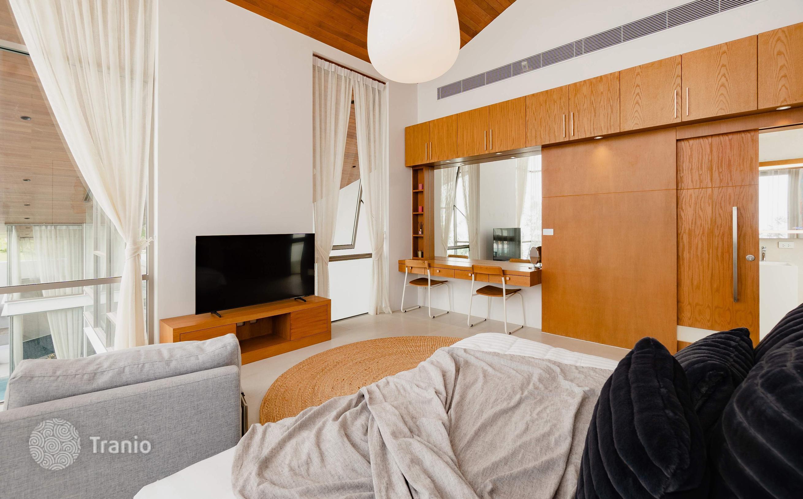 Безупречно спроектированная и отделанная в соответствии с высочайшими стандартами качества, каждая двухэтажная вилла предлагает образ жизни, который вам нравится. В комплексе: На территории более 9 000 м² расположено всего 6 частных вилл. Круглосуточная охрана, зона рецепции и фитнес на территории. Снаружи: Частная территория с изгородью, что создает атмосферу приватности. Бассейн, терраса для загара, душ у бассейна. Перед виллой удобная частная парковка. Внутри: Стильная современная вилла с бассейном, которая сочетает в себе элементы модернизма, минимализма и ар-деко, а также традиционный дизайн кривой крыши. Гармоничное сочетание роскоши, спокойствия и природы. Просторные жилые помещения идеальное место для семейного отдыха и приема гостей. Они спроектированы с широким открытым пространством второго света и с панорамными окнами. Вилла сдается с полной отделкой, но без мебельного пакета, его можно приобрести за дополнительную плату.