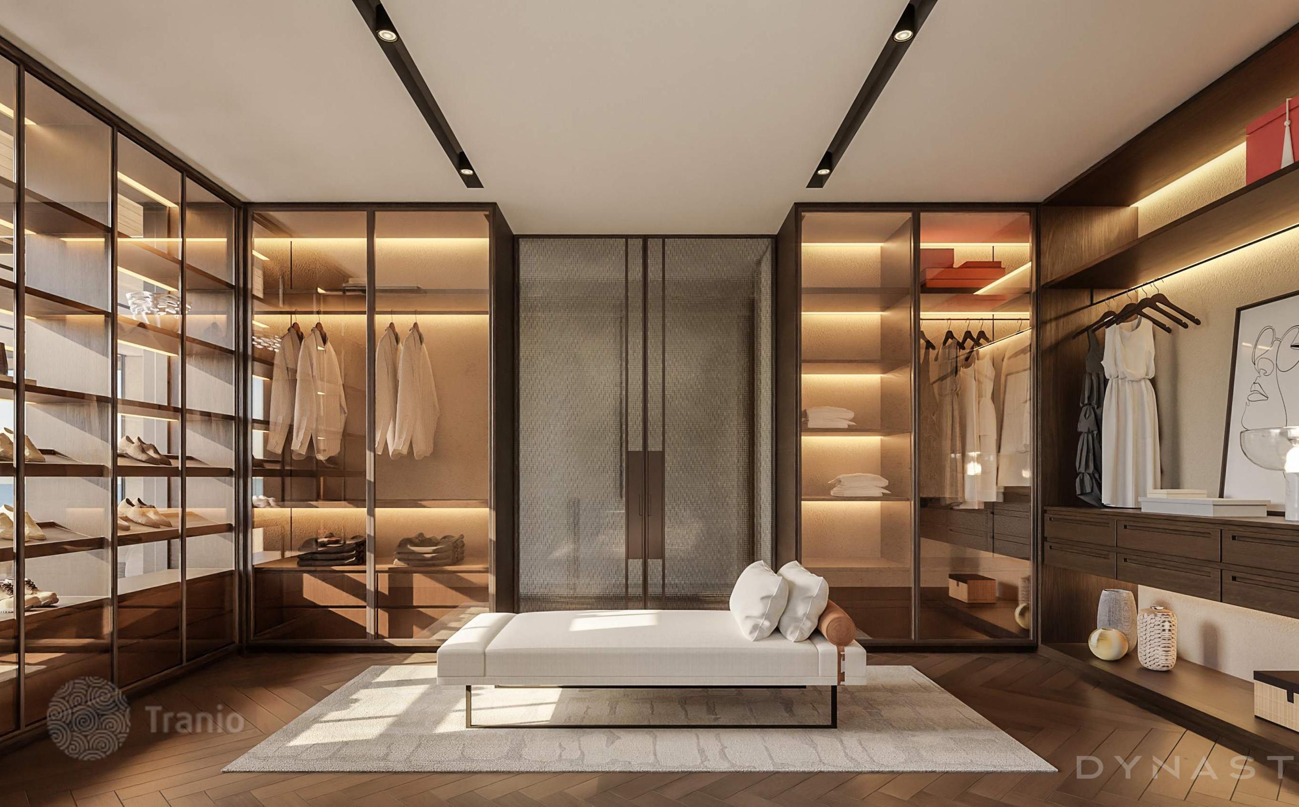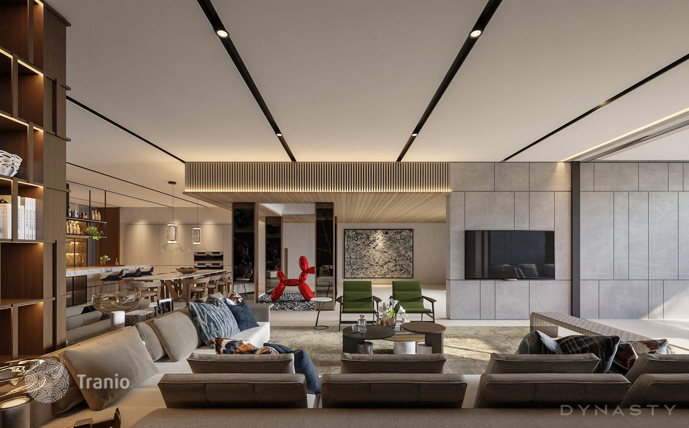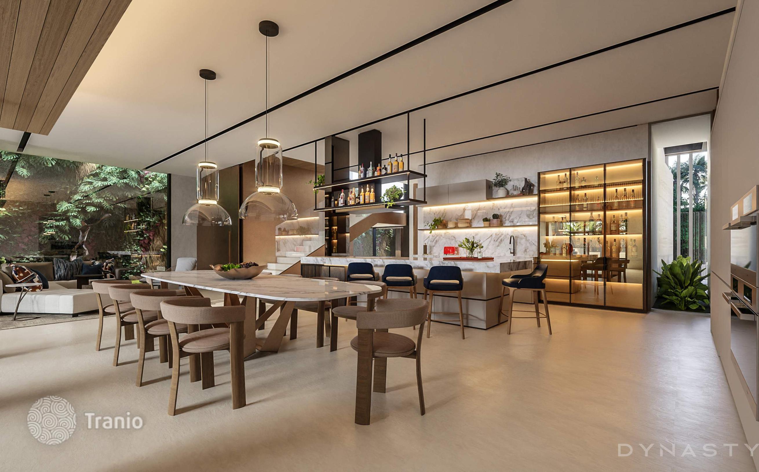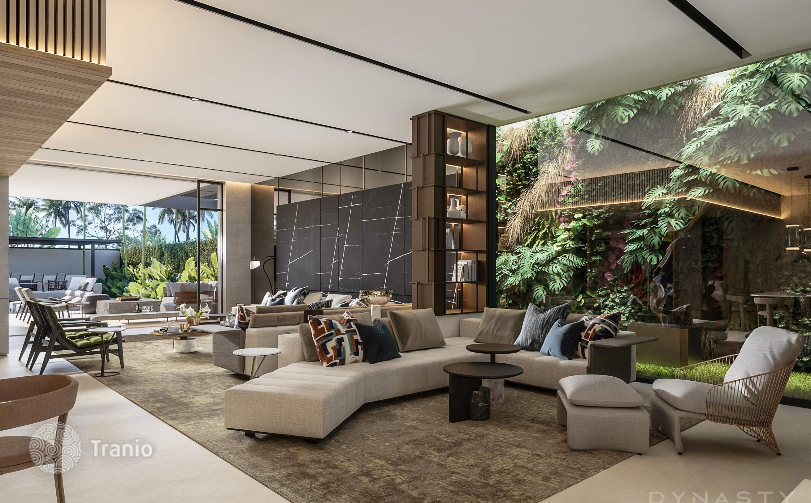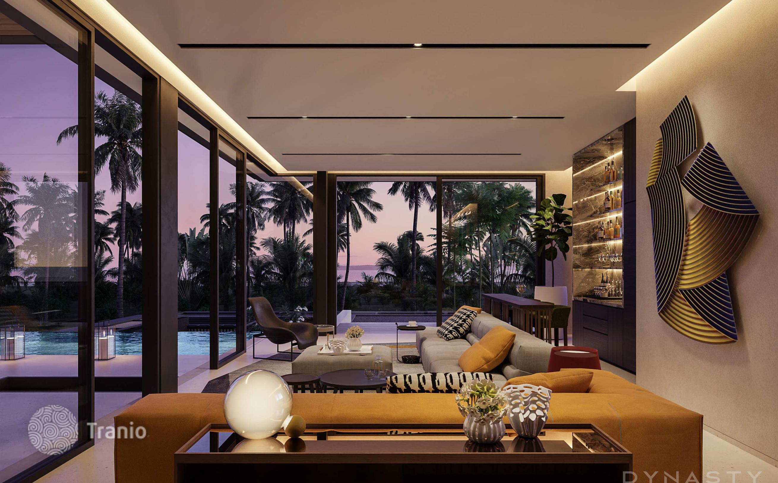 Дом включает 4 спальни, 6 ванных комнат, просторную гостиную, кинотеатр и тренажерный зал.