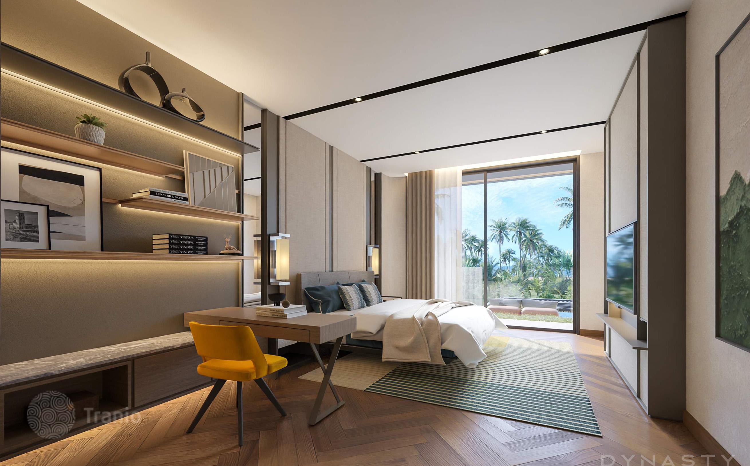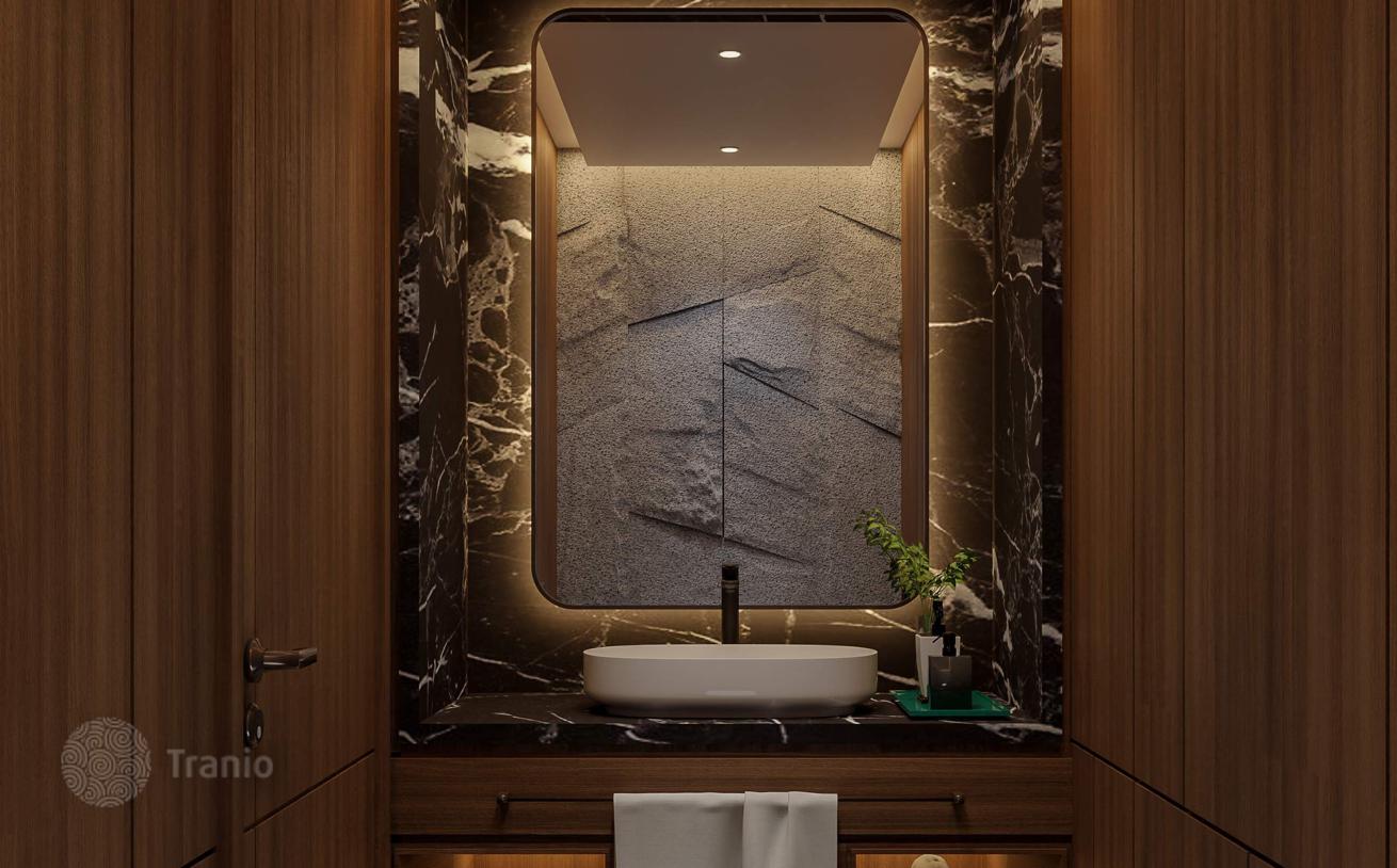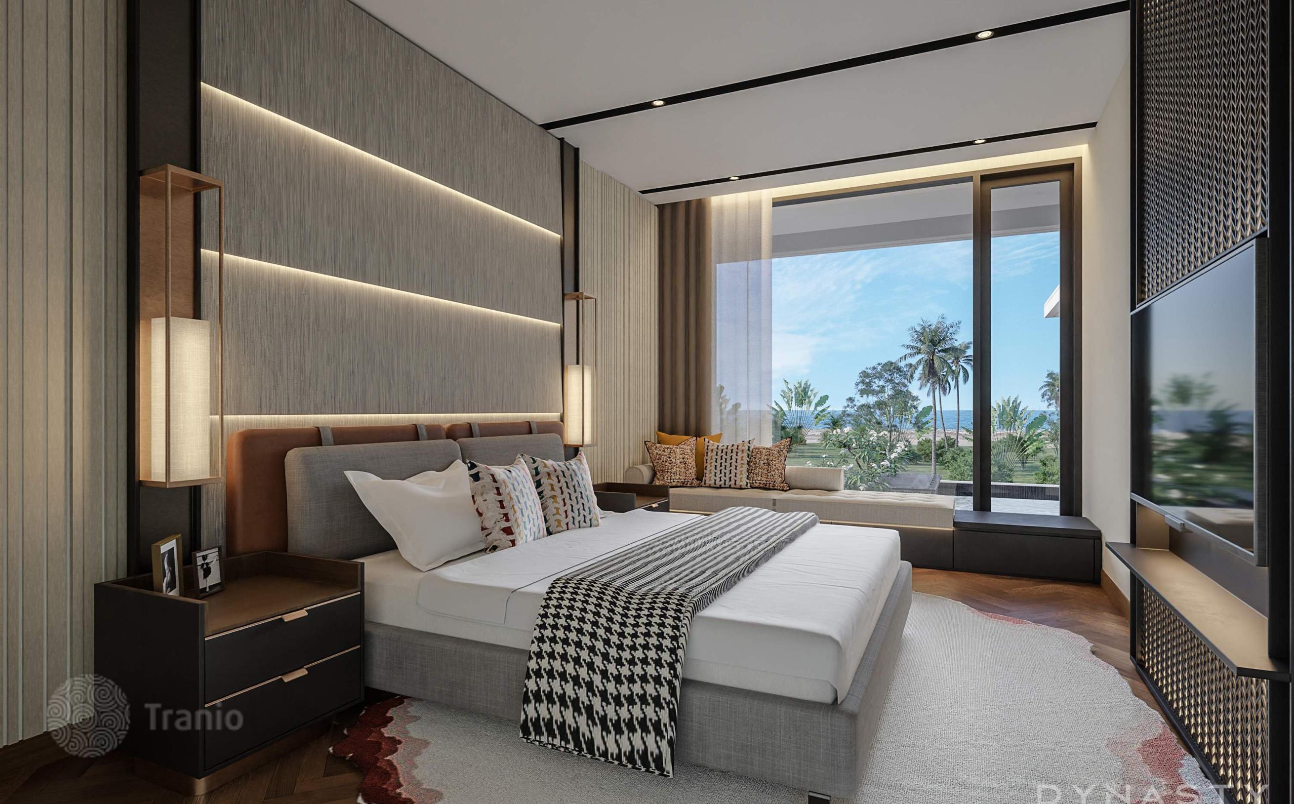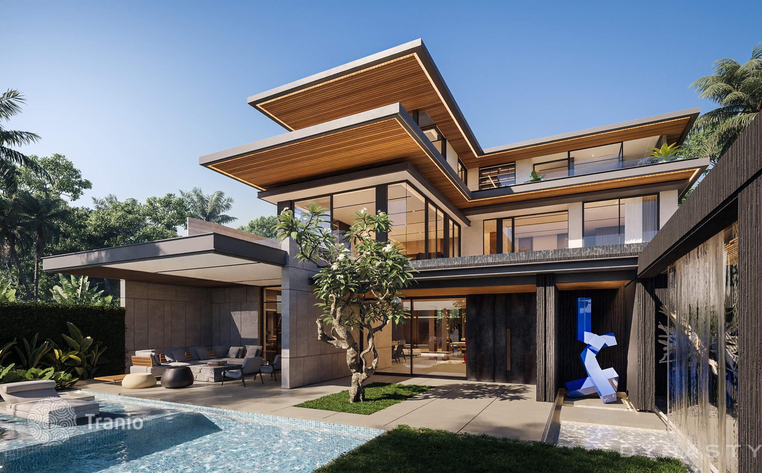 Дом включает 4 спальни, 6 ванных комнат, просторную гостиную, кинотеатр и тренажерный зал.