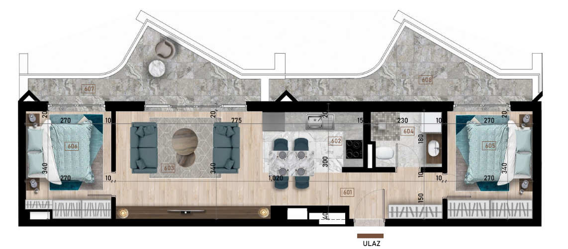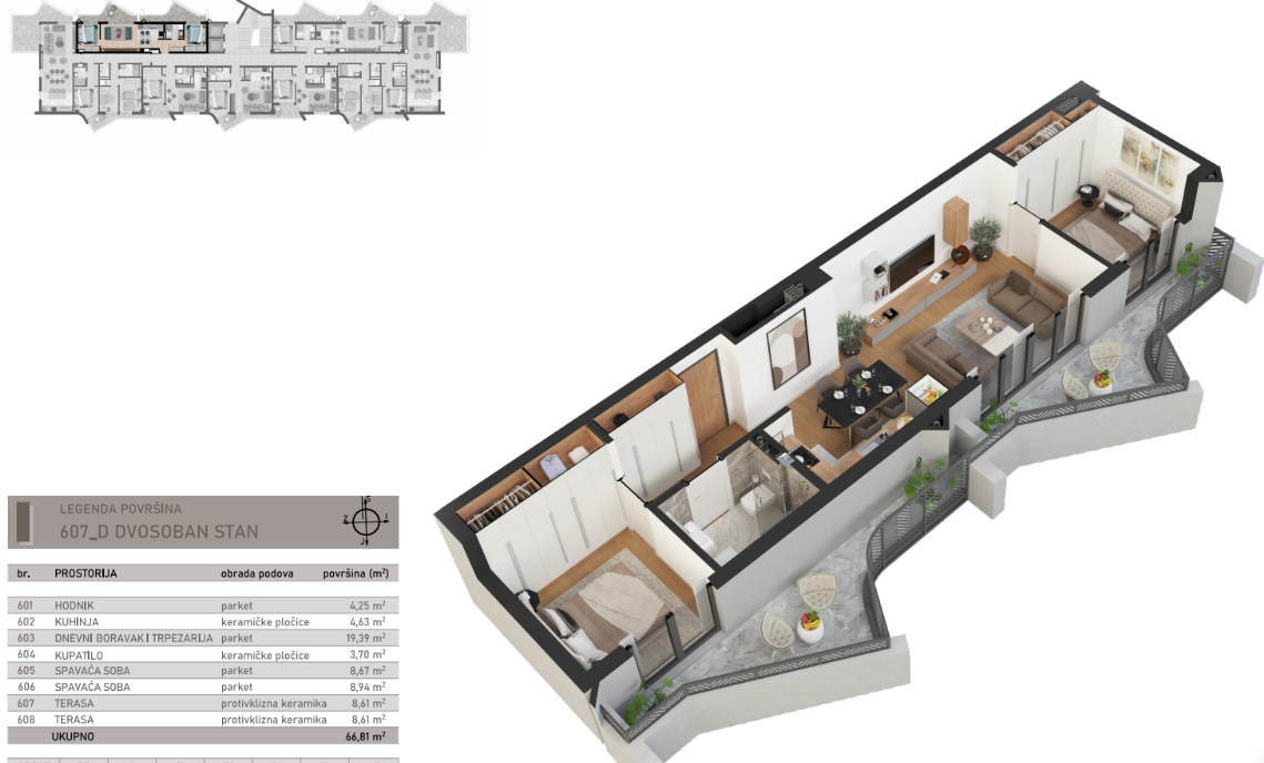 Квартира с двумя спальнями в многоквартирном доме в Баре на 6 этаже. Площадь – 67 кв.м. Цена : 154 100 евро Многоквартирный дом в Баре, район Тополица. Расстояние до центра города 700 метров, до моря 500 метров. Объект состоит из 75 квартир площадью от 25 кв.м. до 120 кв.м. Высокое качество материалов и комплектующих : - паркет, - керамика, - алюминевые рамы, - двойные стеклопакеты, - теплые полы в санузлах, - мультисплитсистема LG. Оплата : 50% при заключении договора, 30% через 6 месяцев когда будут закончены грубые работы, 20% при получении ключей. Срок сдачи : сентябрь 2024 года. Возможна покупка подземного гаража и кладовой комнаты. Подземный гараж насчитывает 49 мест. Также возможно приобретение открытого паркинг места. Цена места в подземном гараже – 8500 евро. Цена кладовой – 4000 евро.Задайте интересующие вас вопросы менеджеру направления