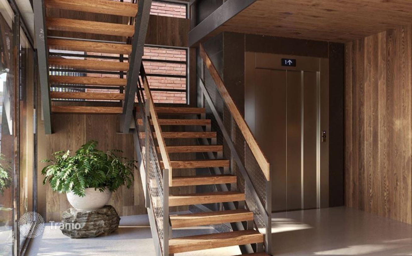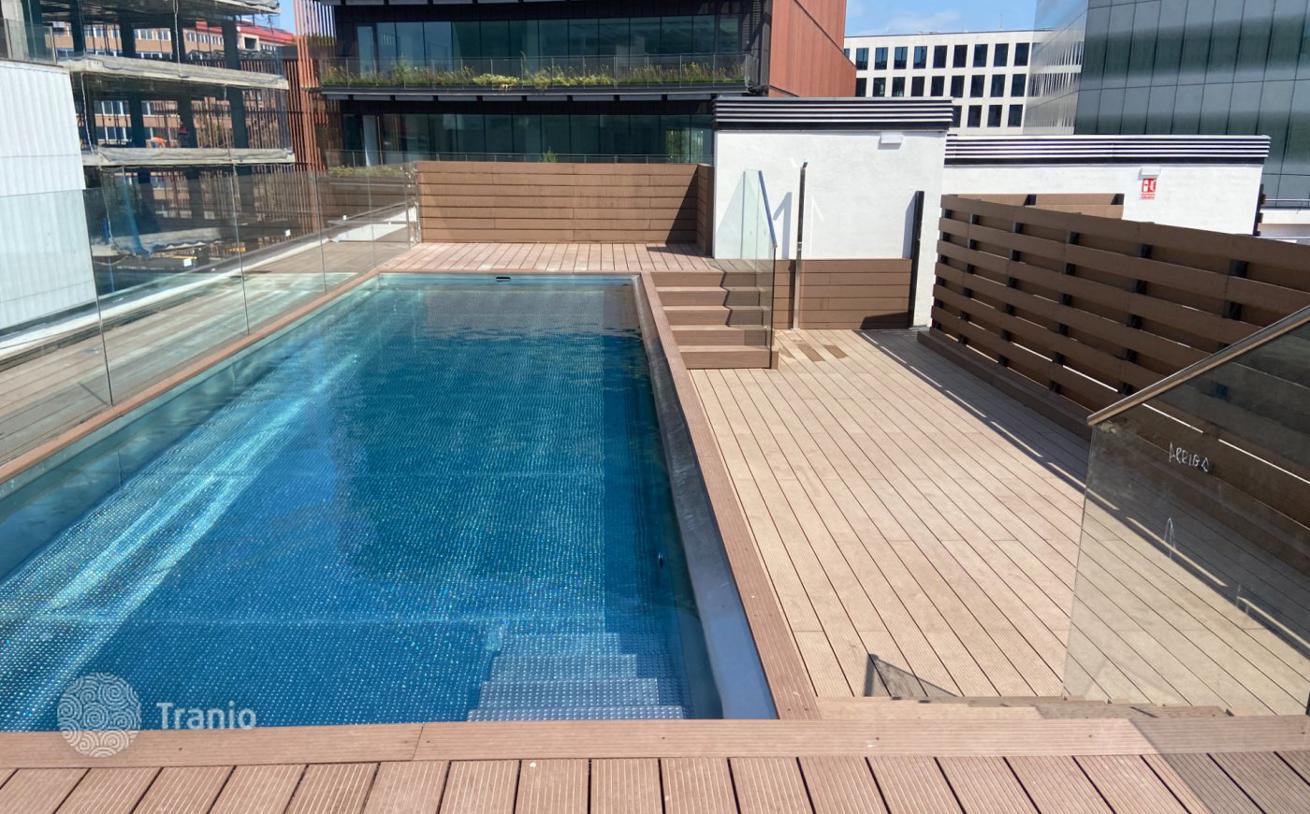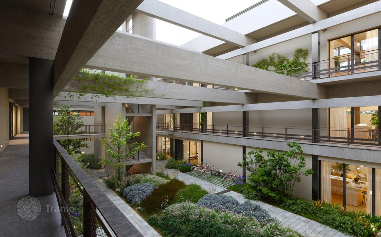 Комплекс включает сад, парковку для велосипедов, бассейн.