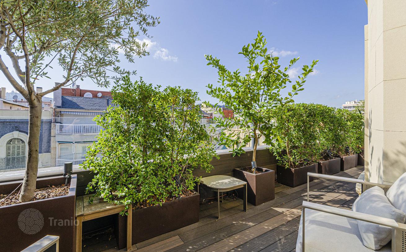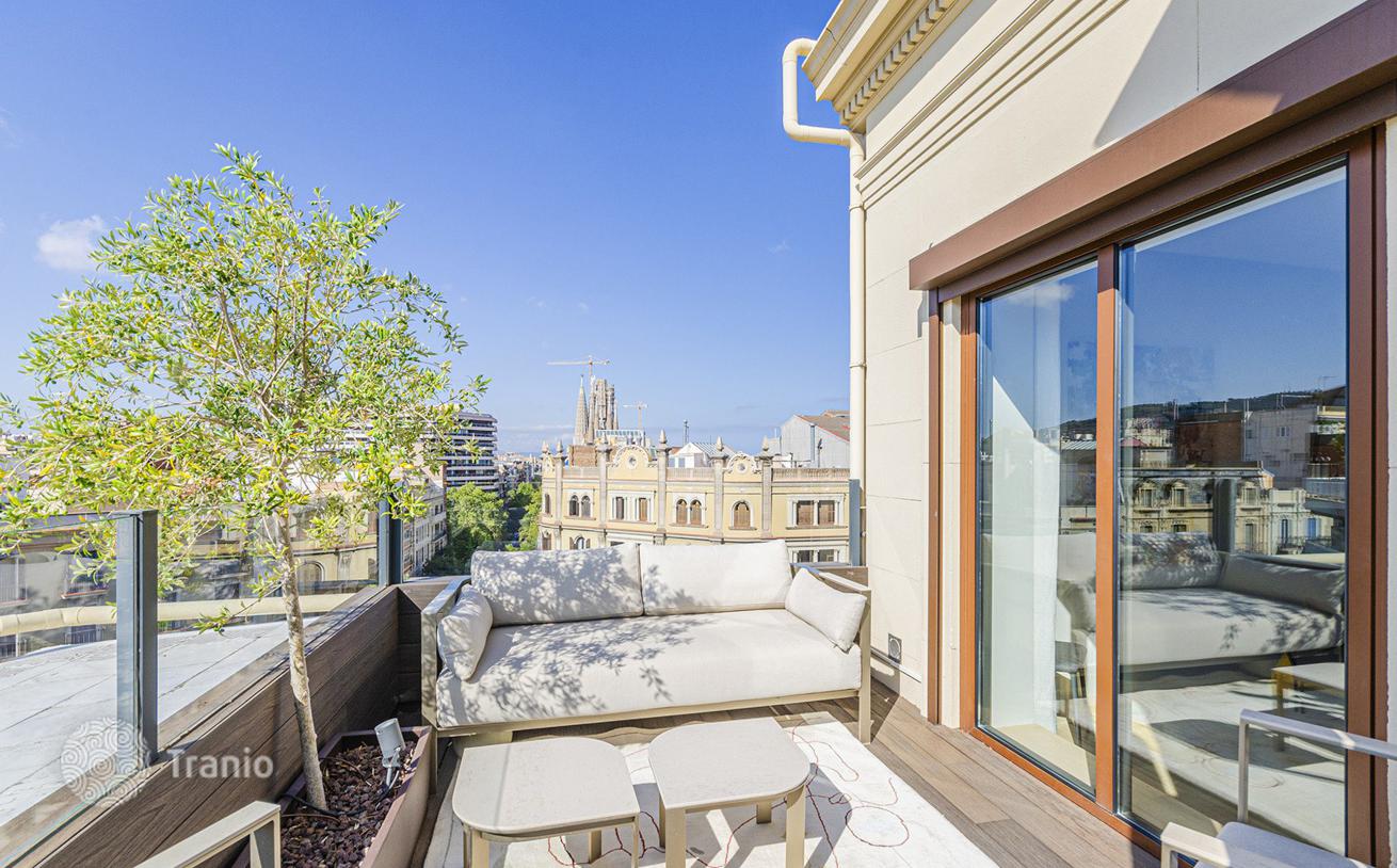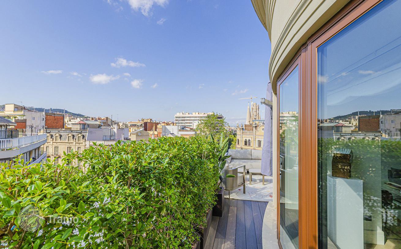 Этот необычный пентхаус расположен на одном из самых популярных проспектов Барселоны — Авенида Диагональ. Он расположен в самом центре города, в 10 минутах ходьбы от Пасео де Грасиа, но в то же время в жилом микрорайоне. Войдя в пентхаус, вы сразу поймете, что его планировка сильно отличается от всех других объектов в Эшампле. Он имеет отличную внешнюю экспозицию, просторные спальни и потрясающие виды на храм Святого Семейства и гору Тибидабо. Сразу при входе в квартиру вы попадаете в две большие спальни, расположенные по обе стороны от входа в коридор, одна из которых имеет большую ванную комнату. Далее вы попадаете на открытую и полностью оборудованную кухню, из которой открывается прямой вид на Саграда Фамилия. Из кухни можно попасть в просторную гостиную с прямым выходом на террасу площадью 27 м², которая идеально подходит для круглогодичного пребывания на свежем воздухе. Гостиная также соединена с главной спальней с ванной комнатой, в которой также имеется ванна. В прихожей также имеется гостевой туалет. Квартира была отремонтирована таким образом, чтобы сочетать в себе современный вид и комфорт с максимальным вниманием к деталям и использованием высококачественных отделочных материалов и техники. Планировка и виды из окон в сочетании с открытым пространством создают идеальную гармонию во всем доме и предлагают все аспекты, которые только можно пожелать для пентхауса в таком привилегированном месте в Эшампле. В доме имеется система A/C, полностью оборудованная кухня, консьерж-сервис в здании и отдельный служебный лифт для перевозки грузов. Расположение дома очень удачно: Пасео де Грасиа и Пасео де Сант Жоан находятся в двух шагах от дома, а район Грасиа — в нескольких минутах ходьбы, что представляет собой уникальное сочетание двух миров. Район Правый Эшампле начинается на площади Каталонии, а его центральная ось вращается вокруг Пасео де Грасиа и Золотого Квадрата. От оживленной улицы Бальмес до отремонтированного Пасео де Сан Хуан и от коммерческой Ронда Сан Пере до удобного проспекта Диагональ. Это один из самых дорогих и эксклюзивных районов города, наряду с районами Педральбес и Сарриа – Сан Жервази. Нельзя не упомянуть о роскошном Пасео де Грасия, с бутиками самых эксклюзивных брэндов мира, или магазинами на бульваре Рамбла де Каталуния. Однако остальные улицы не менее интересны, если не более. Они являлись домом каталонской текстильной буржуазии начала ХХ века, которая оставила свой след в впечатляющих зданиях в стиле модерн, спроектированных самыми известными архитекторами того времени, такие как Ла Педрера или Каса Бальо великого Антонио Гауди. В результате, характерными для этого района являются просторные квартиры с высокими потолками, лепниной, замысловатыми полами и балконами. Многие здания и квартиры сохраняют это оригинальное архитектурное наследие ручной работы, и можно найти недавно реконструированные объекты: пентхаусы, лофты и даже студии, которые обладают этими элементами, а также квартиры с большим потенциалом для реставрации. Эта сторона Эшампле оборудована всеми видами услуг и магазинами, а также образовательными центрами, в основном частными и государственными школами. Отсюда очень легко добраться пешком или на общественном транспорте до самых дорогих и модных магазинов и рестора