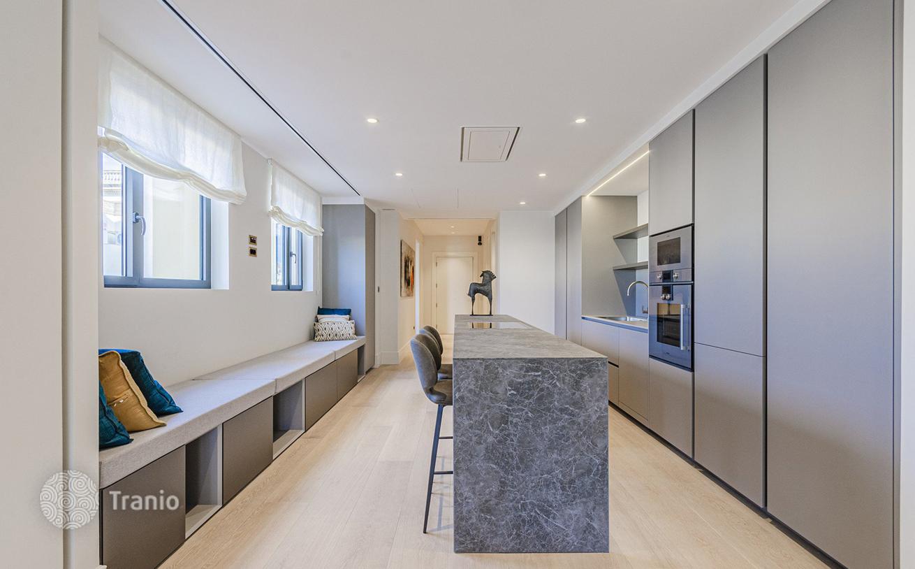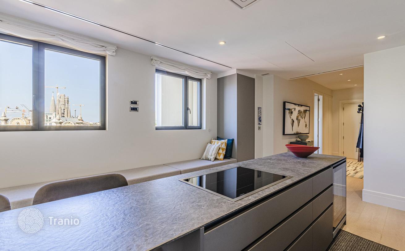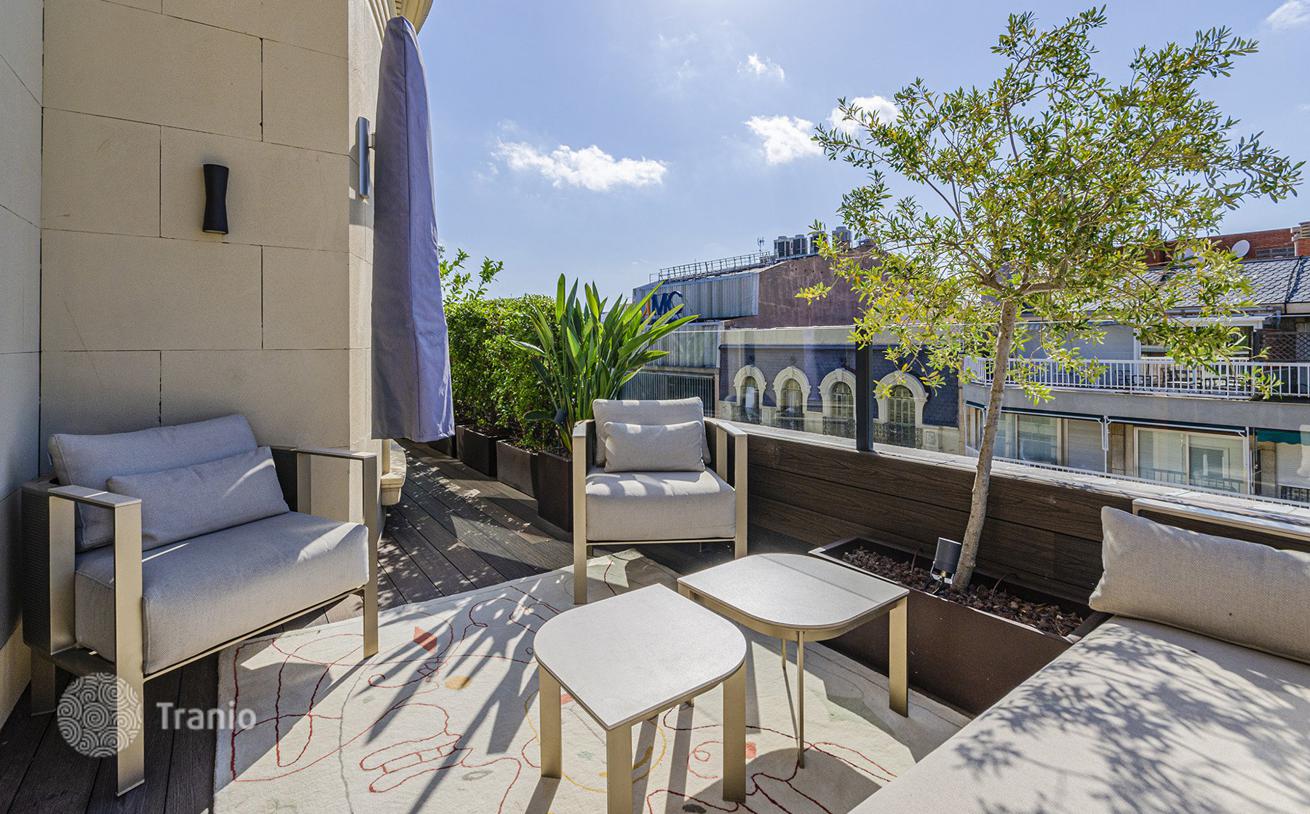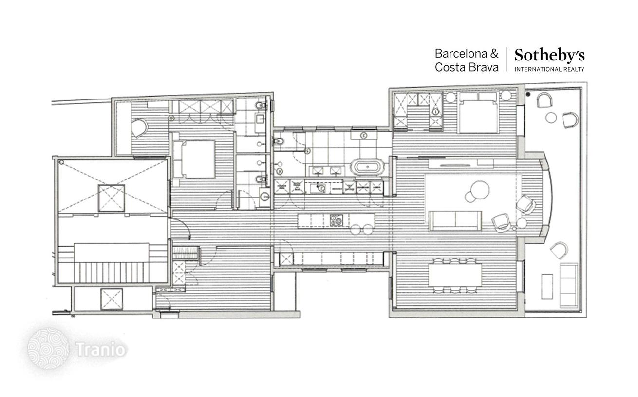 Этот необычный пентхаус расположен на одном из самых популярных проспектов Барселоны — Авенида Диагональ. Он расположен в самом центре города, в 10 минутах ходьбы от Пасео де Грасиа, но в то же время в жилом микрорайоне. Войдя в пентхаус, вы сразу поймете, что его планировка сильно отличается от всех других объектов в Эшампле. Он имеет отличную внешнюю экспозицию, просторные спальни и потрясающие виды на храм Святого Семейства и гору Тибидабо. Сразу при входе в квартиру вы попадаете в две большие спальни, расположенные по обе стороны от входа в коридор, одна из которых имеет большую ванную комнату. Далее вы попадаете на открытую и полностью оборудованную кухню, из которой открывается прямой вид на Саграда Фамилия. Из кухни можно попасть в просторную гостиную с прямым выходом на террасу площадью 27 м², которая идеально подходит для круглогодичного пребывания на свежем воздухе. Гостиная также соединена с главной спальней с ванной комнатой, в которой также имеется ванна. В прихожей также имеется гостевой туалет. Квартира была отремонтирована таким образом, чтобы сочетать в себе современный вид и комфорт с максимальным вниманием к деталям и использованием высококачественных отделочных материалов и техники. Планировка и виды из окон в сочетании с открытым пространством создают идеальную гармонию во всем доме и предлагают все аспекты, которые только можно пожелать для пентхауса в таком привилегированном месте в Эшампле. В доме имеется система A/C, полностью оборудованная кухня, консьерж-сервис в здании и отдельный служебный лифт для перевозки грузов. Расположение дома очень удачно: Пасео де Грасиа и Пасео де Сант Жоан находятся в двух шагах от дома, а район Грасиа — в нескольких минутах ходьбы, что представляет собой уникальное сочетание двух миров. Район Правый Эшампле начинается на площади Каталонии, а его центральная ось вращается вокруг Пасео де Грасиа и Золотого Квадрата. От оживленной улицы Бальмес до отремонтированного Пасео де Сан Хуан и от коммерческой Ронда Сан Пере до удобного проспекта Диагональ. Это один из самых дорогих и эксклюзивных районов города, наряду с районами Педральбес и Сарриа – Сан Жервази. Нельзя не упомянуть о роскошном Пасео де Грасия, с бутиками самых эксклюзивных брэндов мира, или магазинами на бульваре Рамбла де Каталуния. Однако остальные улицы не менее интересны, если не более. Они являлись домом каталонской текстильной буржуазии начала ХХ века, которая оставила свой след в впечатляющих зданиях в стиле модерн, спроектированных самыми известными архитекторами того времени, такие как Ла Педрера или Каса Бальо великого Антонио Гауди. В результате, характерными для этого района являются просторные квартиры с высокими потолками, лепниной, замысловатыми полами и балконами. Многие здания и квартиры сохраняют это оригинальное архитектурное наследие ручной работы, и можно найти недавно реконструированные объекты: пентхаусы, лофты и даже студии, которые обладают этими элементами, а также квартиры с большим потенциалом для реставрации. Эта сторона Эшампле оборудована всеми видами услуг и магазинами, а также образовательными центрами, в основном частными и государственными школами. Отсюда очень легко добраться пешком или на общественном транспорте до самых дорогих и модных магазинов и рестора