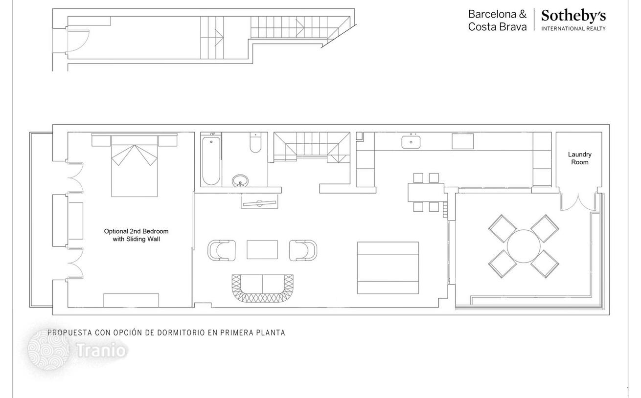 Впечатляющая недвижимость в таунхаусе, построенном в 1900 году, который принадлежит только двум владельцам, каждый из которых имеет свой собственный независимый вход и не имеет общих зон для совместного использования. Дом расположен в красивом и тихом пассаже прямо за углом от величественного храма Святого Семейства, шедевра изобретательного Антонио Гауди. На самом деле, дома в этом проезде были одними из первых, построенных в период начала работ над знаменитым памятником. Дом имеет прямой вход с проходной, к нему ведет красивая внутренняя лестница. На первом уровне находится большая гостиная-столовая и красивая кухня открытой планировки, ведущая во внутренний двор площадью 18 м² с обильной растительностью, который можно назвать оазисом посреди барселонской суеты. Кроме того, на этом же этаже находится красивая ванная комната с гидромассажной ванной с ароматерапией, а также полноценная прачечная для стиральной машины и сушилки. Поскольку хозяевам не требовалось больше одной спальни, они открыли пространство главного этажа для размещения большого кабинета, а спальню разместили на втором этаже. В случае, если новые заинтересованные лица захотят иметь 1 спальню или даже 2 спальни на этом этаже, нынешний владелец предлагает выполнить работы и включить их в цену, так как они очень легко и быстро выполняются. Следуя по лестнице, вы попадаете на второй этаж, где расположена главная спальня с большой ванной комнатой и встроенными шкафами, а также отдельная гостиная с видом на внутренний двор. Но на этом все не заканчивается: если вы спуститесь по лестнице, на крыше дома вы найдете великолепную террасу площадью 44 м² с прямым видом на башни Саграда Фамилия, которые просто уникальны в своем роде. Идеальное место, чтобы скрыться от внешнего мира и насладиться полным спокойствием. Ремонт дома был сделан всего несколько лет назад, и был проведен очень детально с использованием только качественных материалов, и недвижимость поставляется полностью меблированной с высококлассной мебелью, элементами декора и всей бытовой техникой, чтобы въехать жить с первого дня. Район Саграда Фамилия расположен на севере Эшампле, от Пасео де Сант Жоан до станции метро Энкантс и от проспекта Диагональ до ворот исторического модернистского госпиталя Сант Пау. В прошлом здесь находились дома в стиле проекта Ильдефонса Серда, Характер этого квартала ярко выражен в его главном памятнике; проживание вокруг достопримечательности повышает цену любой собственности, придает ей больше привлекательности для туристов и инвесторов, а также делает ее гордостью для местных жителей. Улицы, окружающие собор, популярны среди посетителей в определенное время, что делает район очень динамичным днем и очень тихим ночью. Архитектура представляет собой смесь зданий более позднего строительства по сравнению с Эшампле и другими зданиями, с мансардами, террасами и высокими этажами, откуда можно созерцать работы Гауди. Квартиры средних размеров со стандартной высотой потолков в новых зданиях и более высокими потолками в старых, массивных кирпичных зданиях. Прогулка по Авингуда де Гауди, которая соединяет храм с госпиталем Сант Пау, позволит вам полюбоваться процветающей коммерцией вокруг туризма, не забывая при этом о всех удобствах для жителей. Больницы, общественн