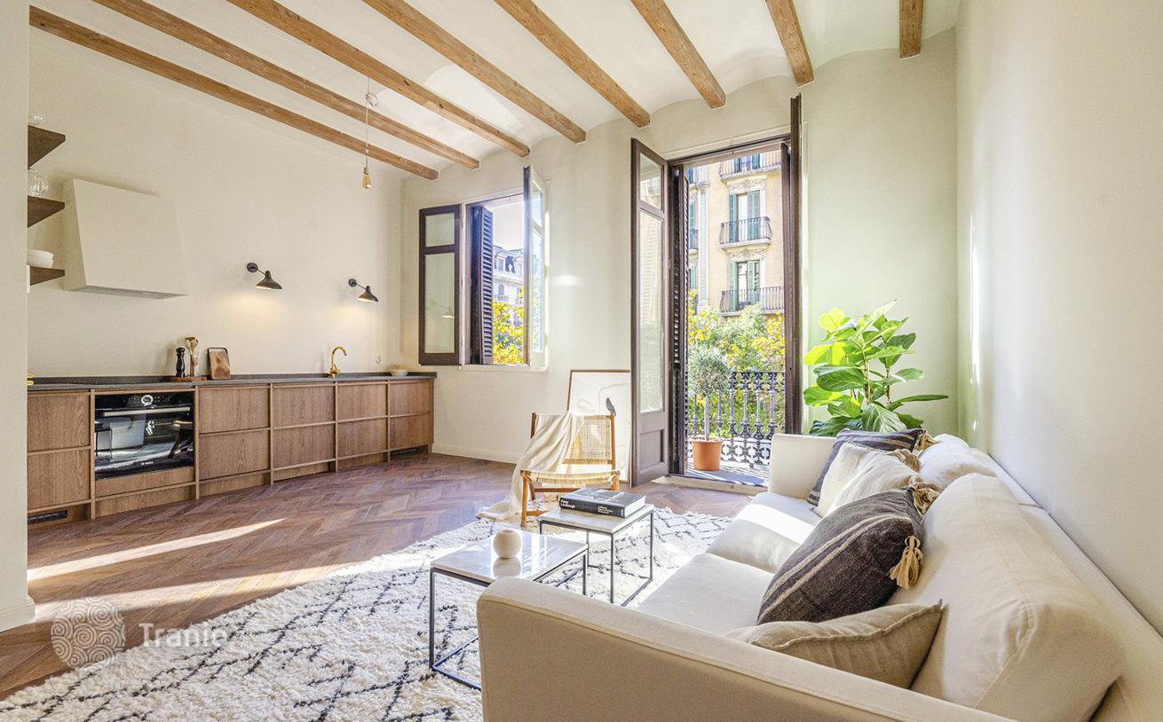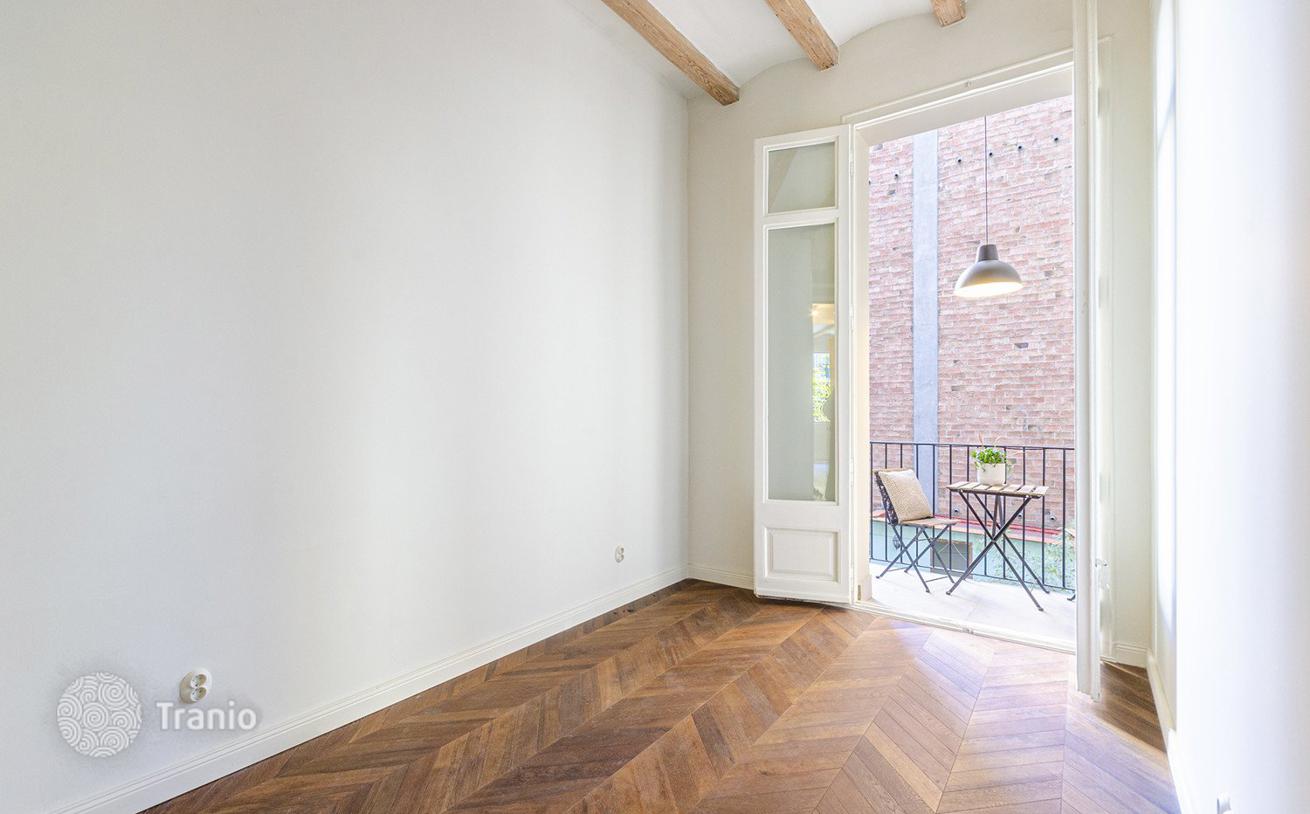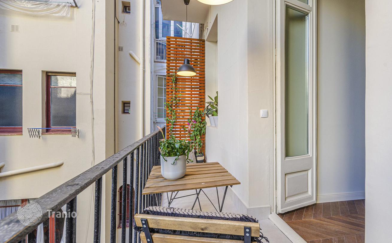 Красивая 2-комнатная квартира с высокими потолками в классическом здании начала XX века с лифтом. Квартира расположена в районе Эшампле-Искьердо, рядом с улицей Диагональ и всего в 10 минутах ходьбы от Пасео де Грасиа, в окружении множества известных ресторанов Барселоны. Квартира была полностью отремонтирована в скандинавском стиле с сохранением старинных деталей: высоких потолков с каталонским сводом и деревянных дверей. Вся квартира выкрашена в приятный белесый тон и имеет темно-коричневый паркет «елочкой». В квартире есть фантастическая гостиная открытой планировки с современной кухней, оснащенной высококачественной техникой. В спальной зоне находятся 2 спальни с двуспальными кроватями. Обе спальни выходят в тихий внутренний двор, одна из них имеет прямой выход на балкон. В квартире есть полноценная ванная комната. Все окна отреставрированы и имеют двойное остекление. Не упустите эту уникальную возможность. Этот район вместе с Правым Эшампле – один из первых урбанизированных районов города. Расположенный в самом центре, он находится между проспектом Диагональ, улицами Бальмес, Гран-Виа‑де-лес-Кортс-Каталанс и Гранд-д’Ургель. В этом историческом районе находятся одни из самых важных объектов с начала урбанизации, такие как Барселонский университет, центральная гос. больница и символический рынок Меркат дель Нино. Многие классические и модернистские здания, находящиеся на таких улицах, как Арибау, Мунтанер, Энрик Гранадос и другие, являются примерами проекта Ильдефонса Серда. Вы сможете найти любые квартиры: модернистские жемчужины средних или больших размеров и полностью восстановленные здания. Большая часть жизни происходит в помещениях первого этажа, занятых небольшими новыми или традиционными магазинами, множеством ресторанов, развлекательных заведений и ночных клубов. Это динамичный центр Барселоны, связанный общественным транспортом с остальными районами, но, если у вас есть автомобиль, желательно найти возможность парковки вблизи при покупке новой квартиры. Этот район должен быть в вашем списке, если вы хотите жить вблизи лучших ресторанов в городе, со всеми удобствами, клубами и развлечениями и почувствовать космополитический дух Барселоны.
