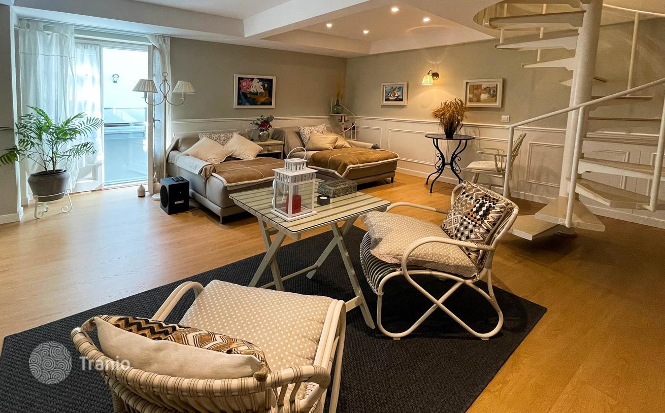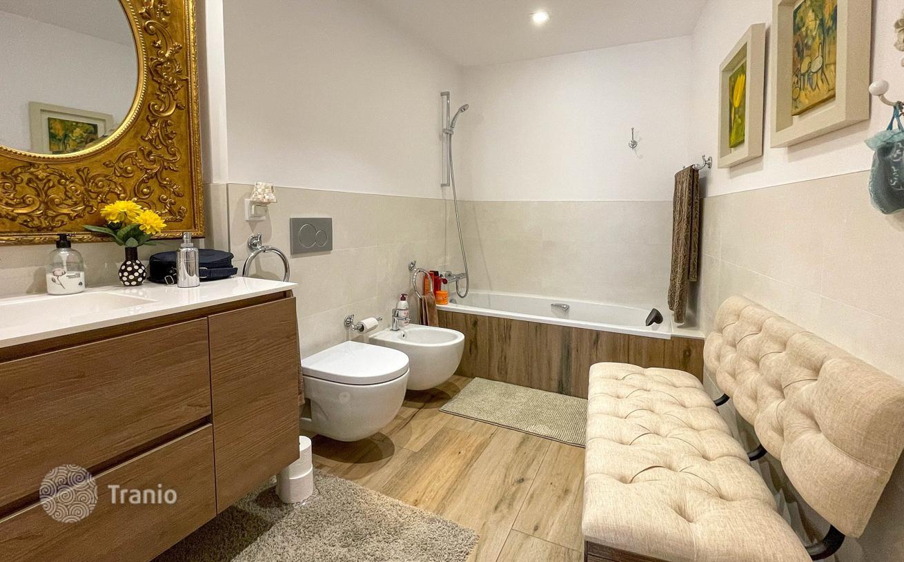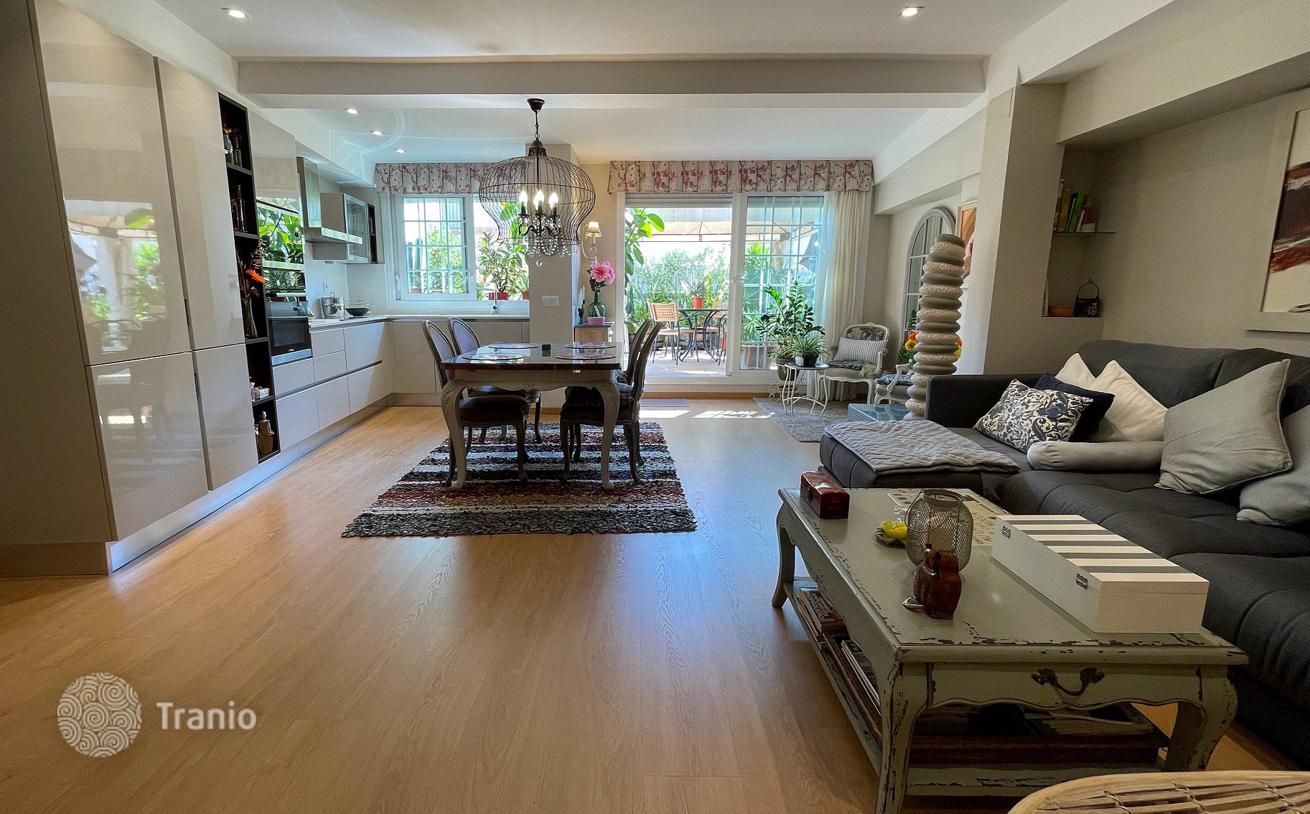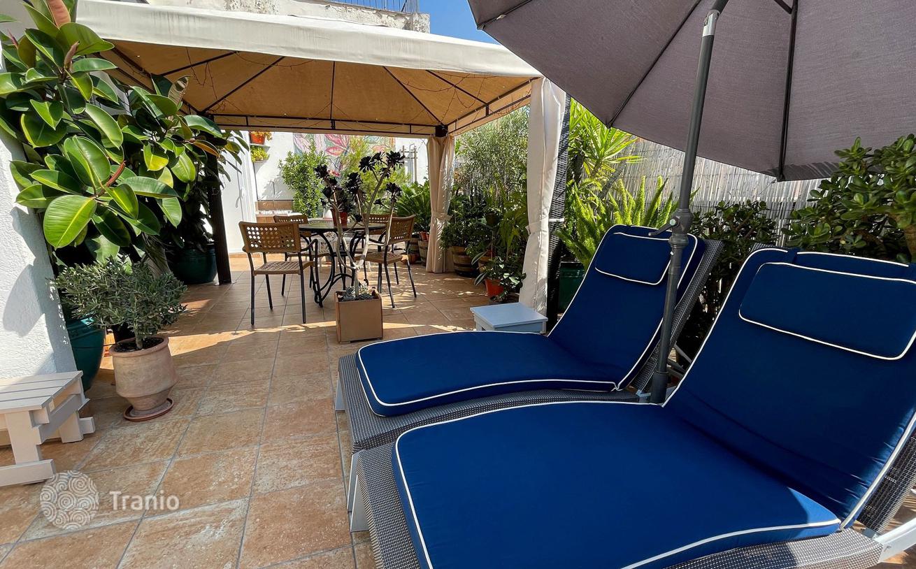 На верхнем этаже спальня с двуспальной кроватью со встроенными шкафами и большое открытое пространство со второй гостиной, столовой и полностью оборудованной открытой кухней с выходом на частную террасу площадью 50 м². Терраса с солярием, столовой на открытом воздухе и прачечной, которая соединяется с внутренним двориком здания.