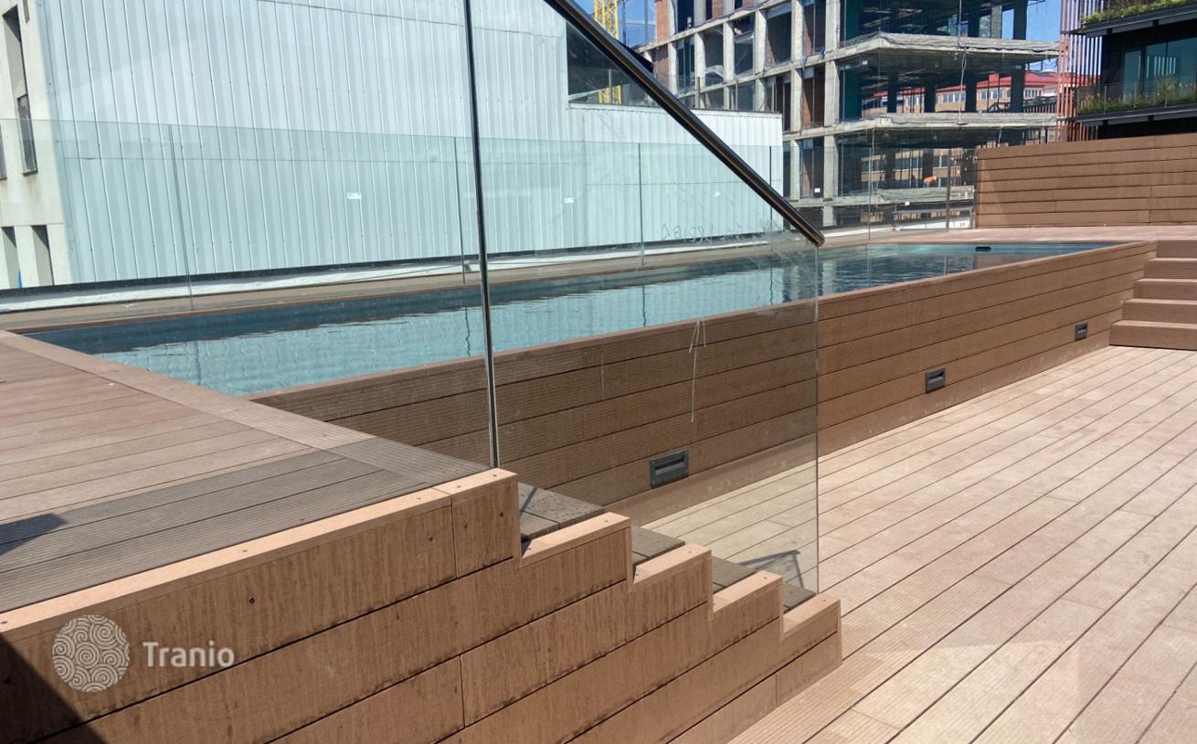 Комплекс включает парковку для велосипедов, сад, бассейн, лифт.