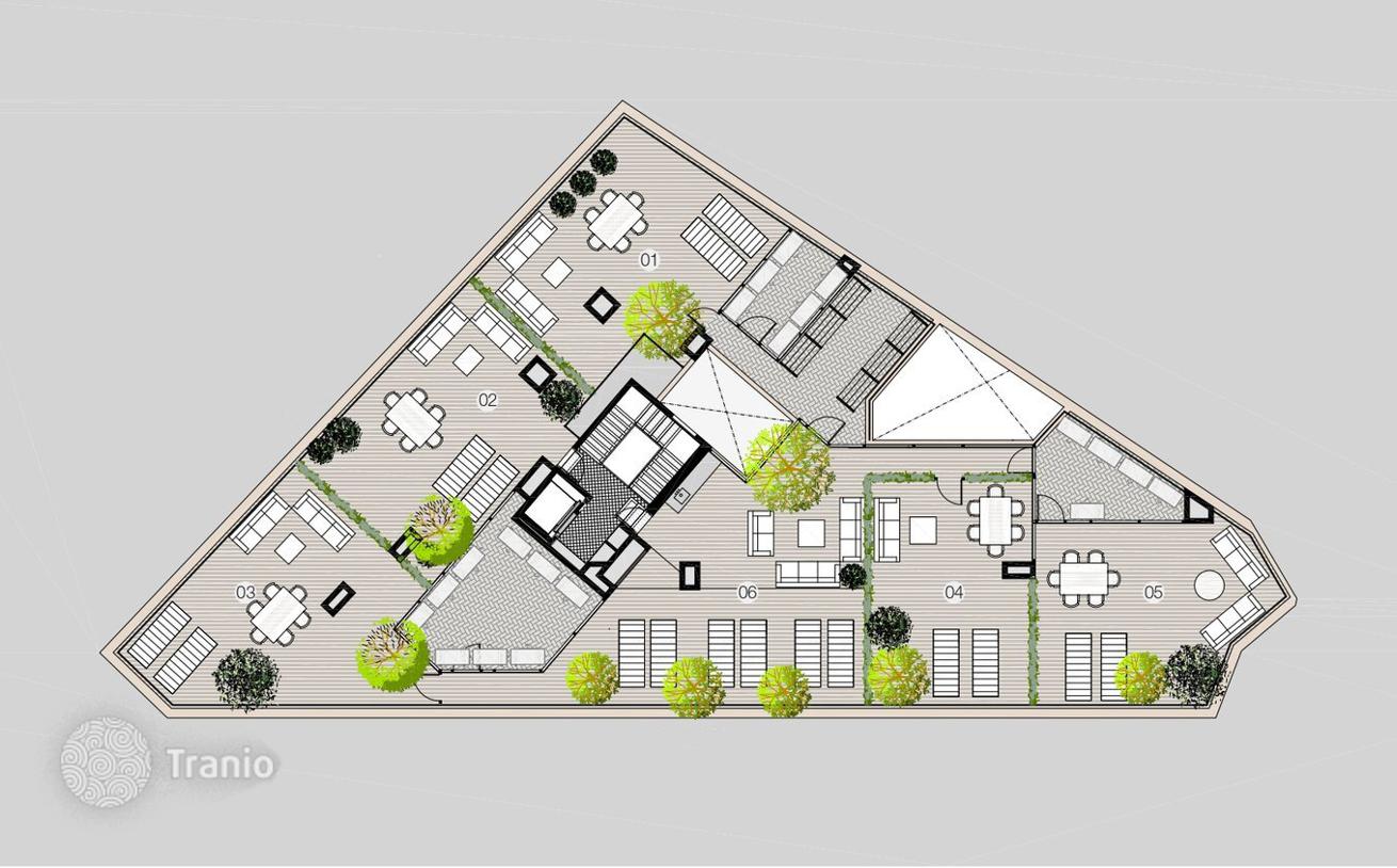 Вы можете загорать и наслаждаться видами благодаря солярию в общей зоне на крыше. Кроме того, на крыше будет 5 частных террас разного размера, где вы сможете насладиться отдыхом на свежем воздухе в уединении.