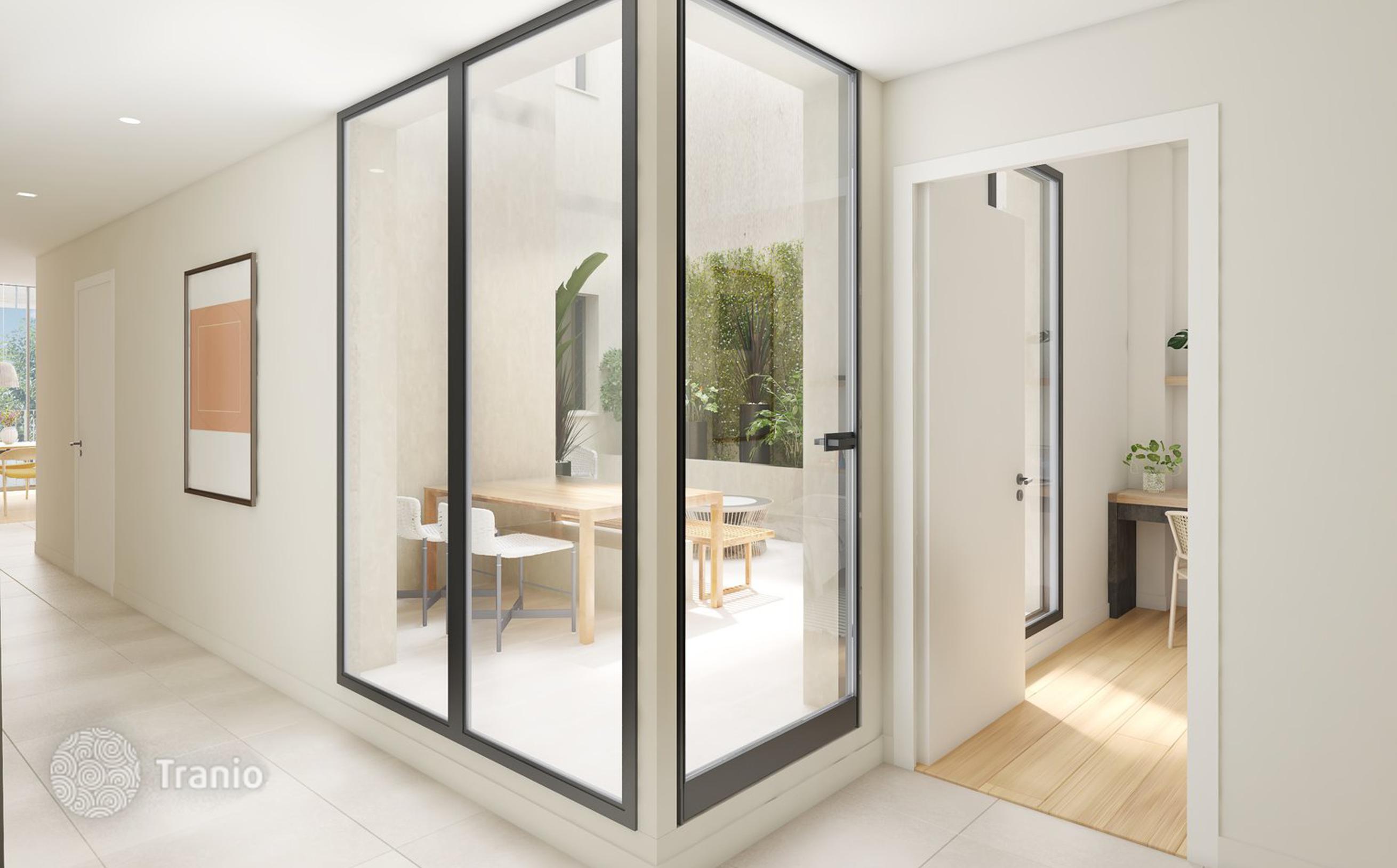На нижнем этаже находятся помещения для 2 офисов или коммерческих помещений, а остальные 5 этажей предназначены для жилых апартаментов, каждый из которых имеет площадь 96 м² и включает 3 спальни, 2 ванные комнаты. Во всех квартирах есть большие окна в дневной зоне и балконы (с выходом из 2 спален) с видом на внутренний японский дворик площадью 15 м².
