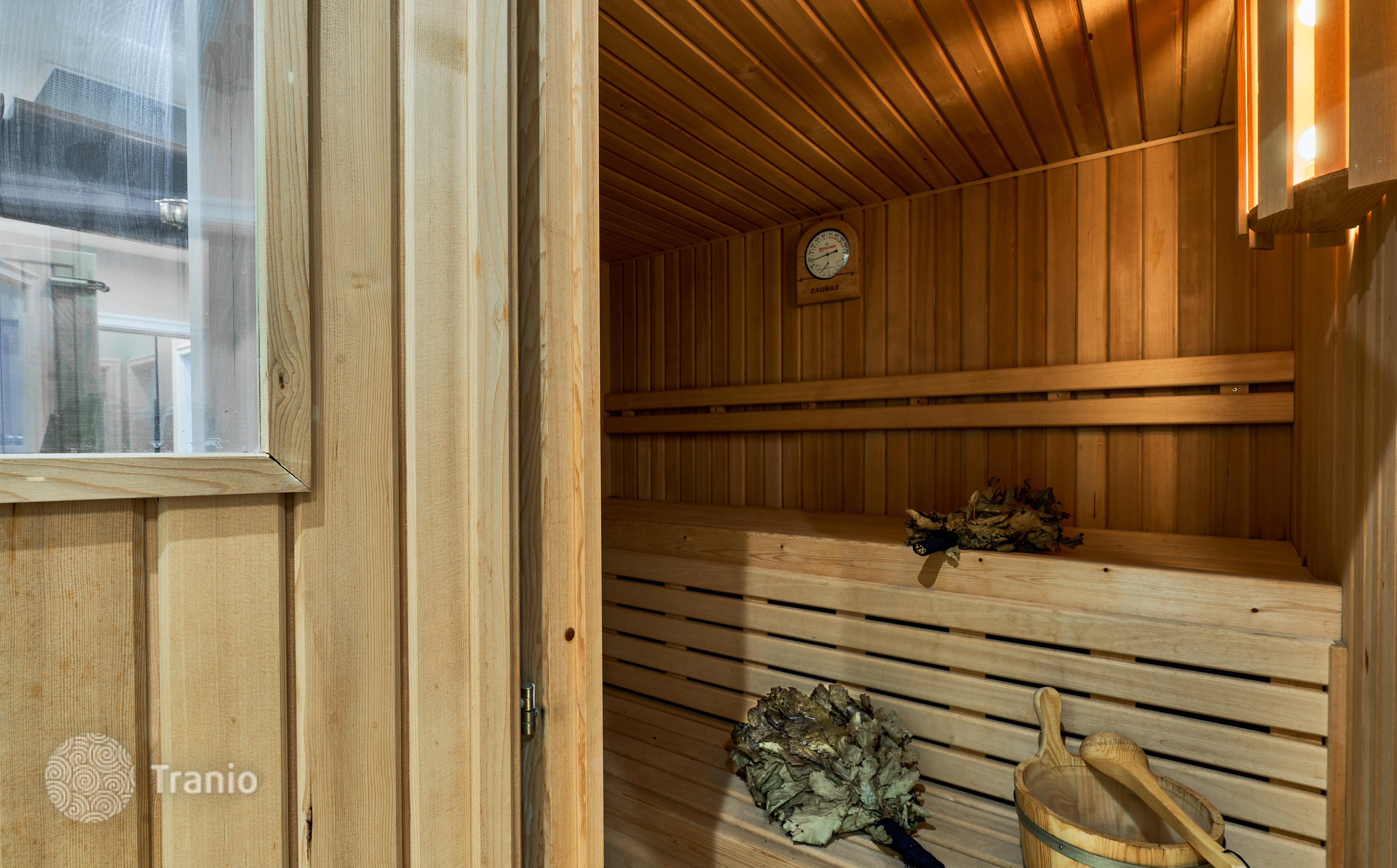 4 этаж 2 спальни с гардеробными и санузлами, Сауна, Винный салон (с мини кухней и столом на 14 человек) 3 кладовые комнаты