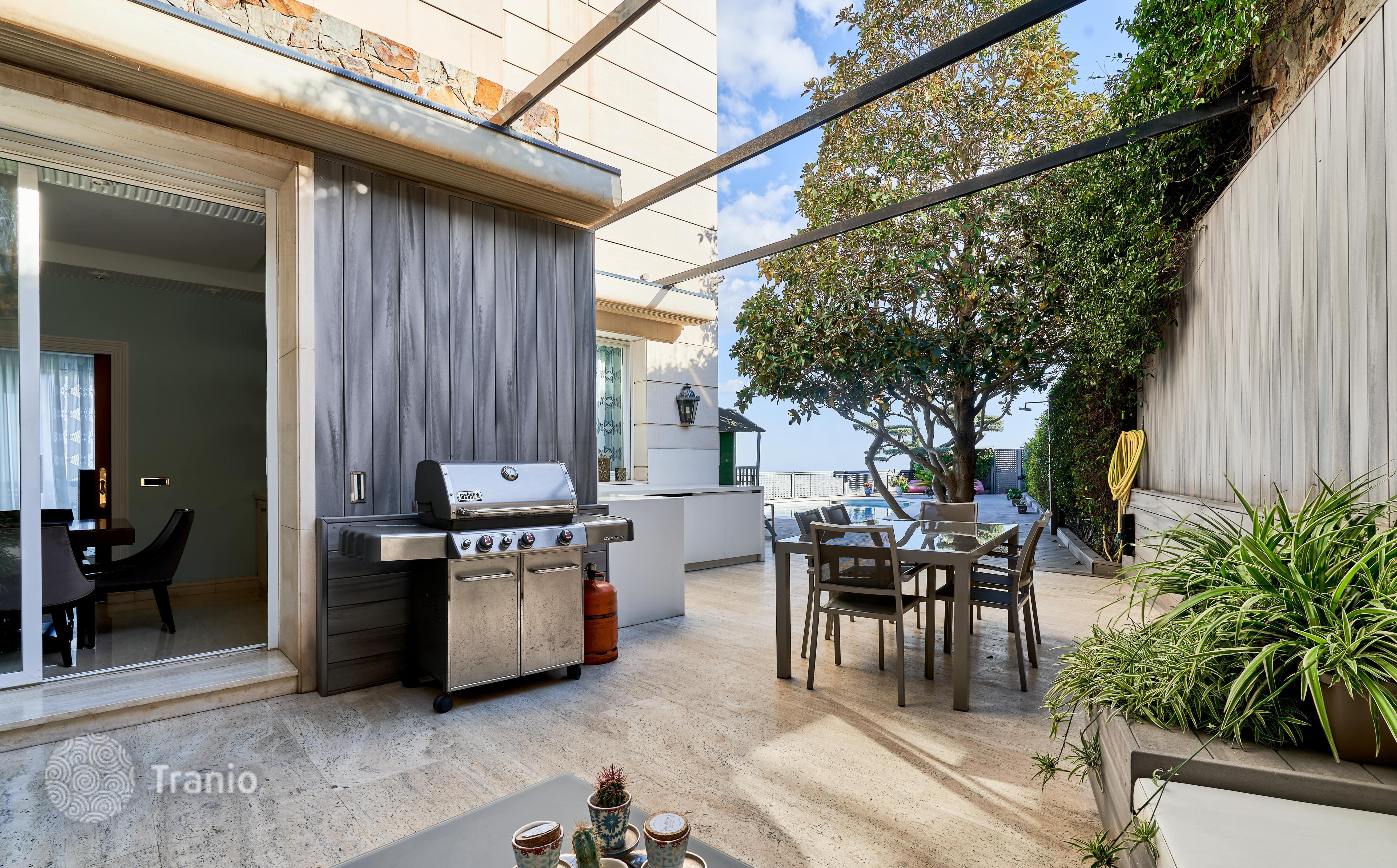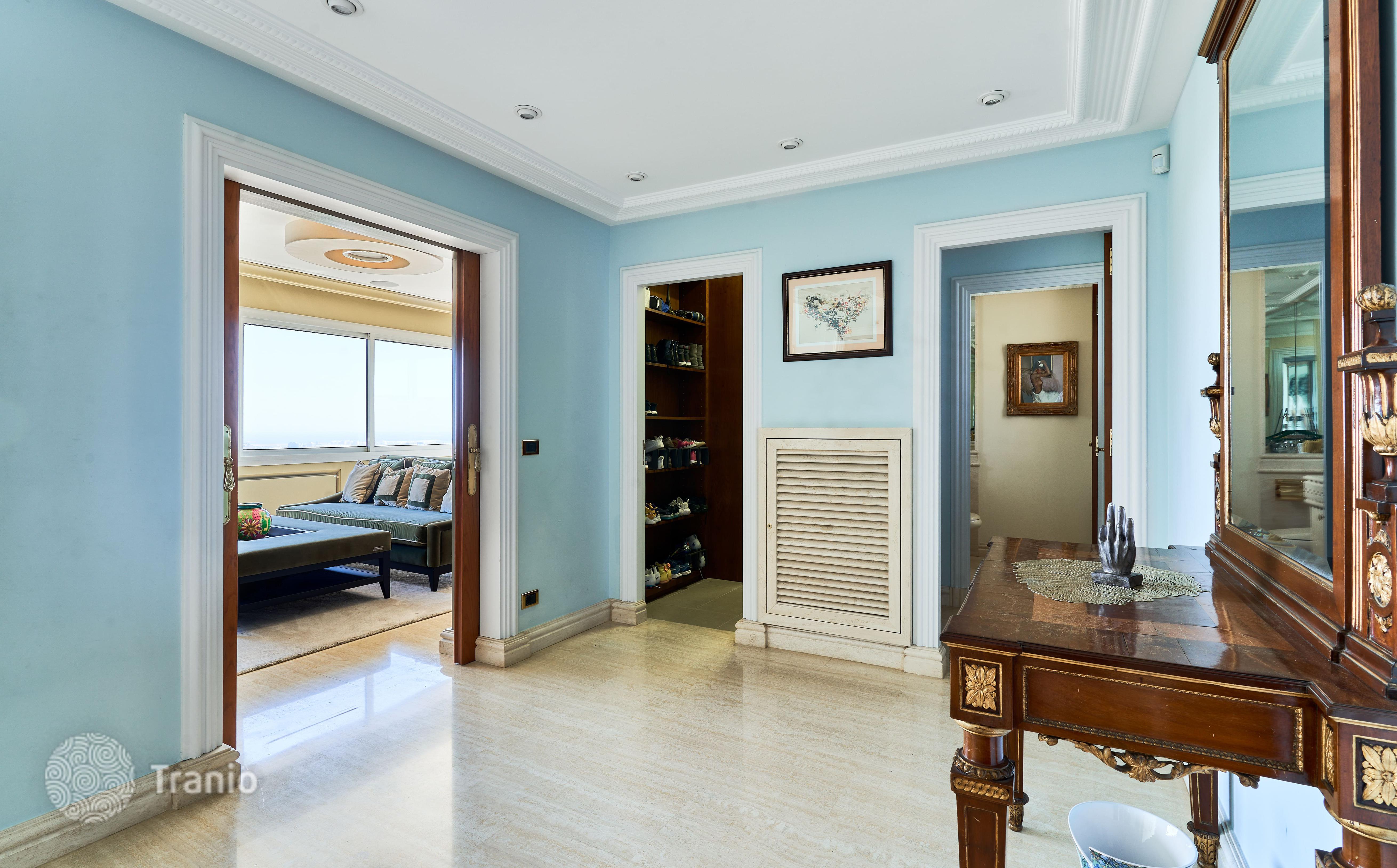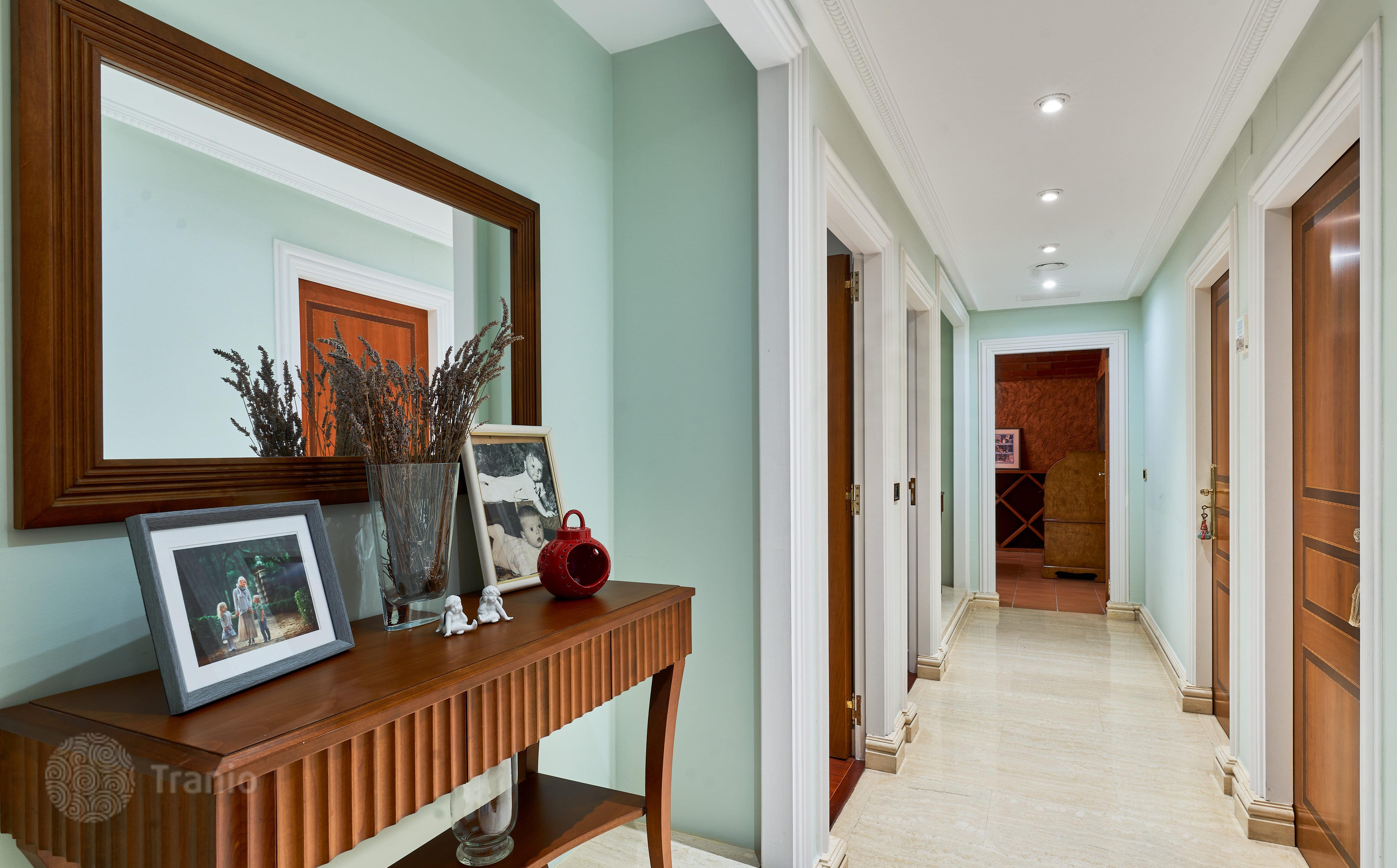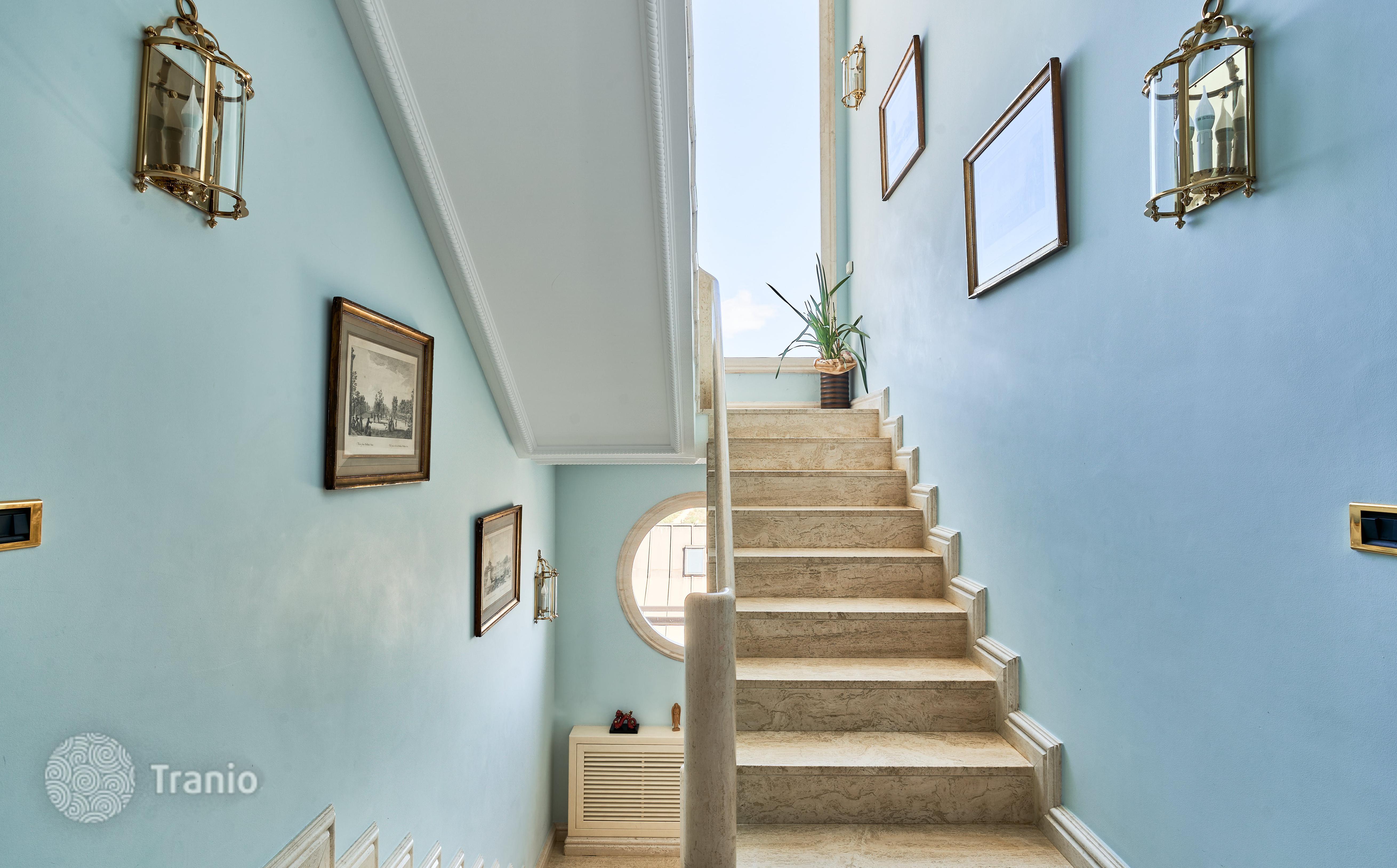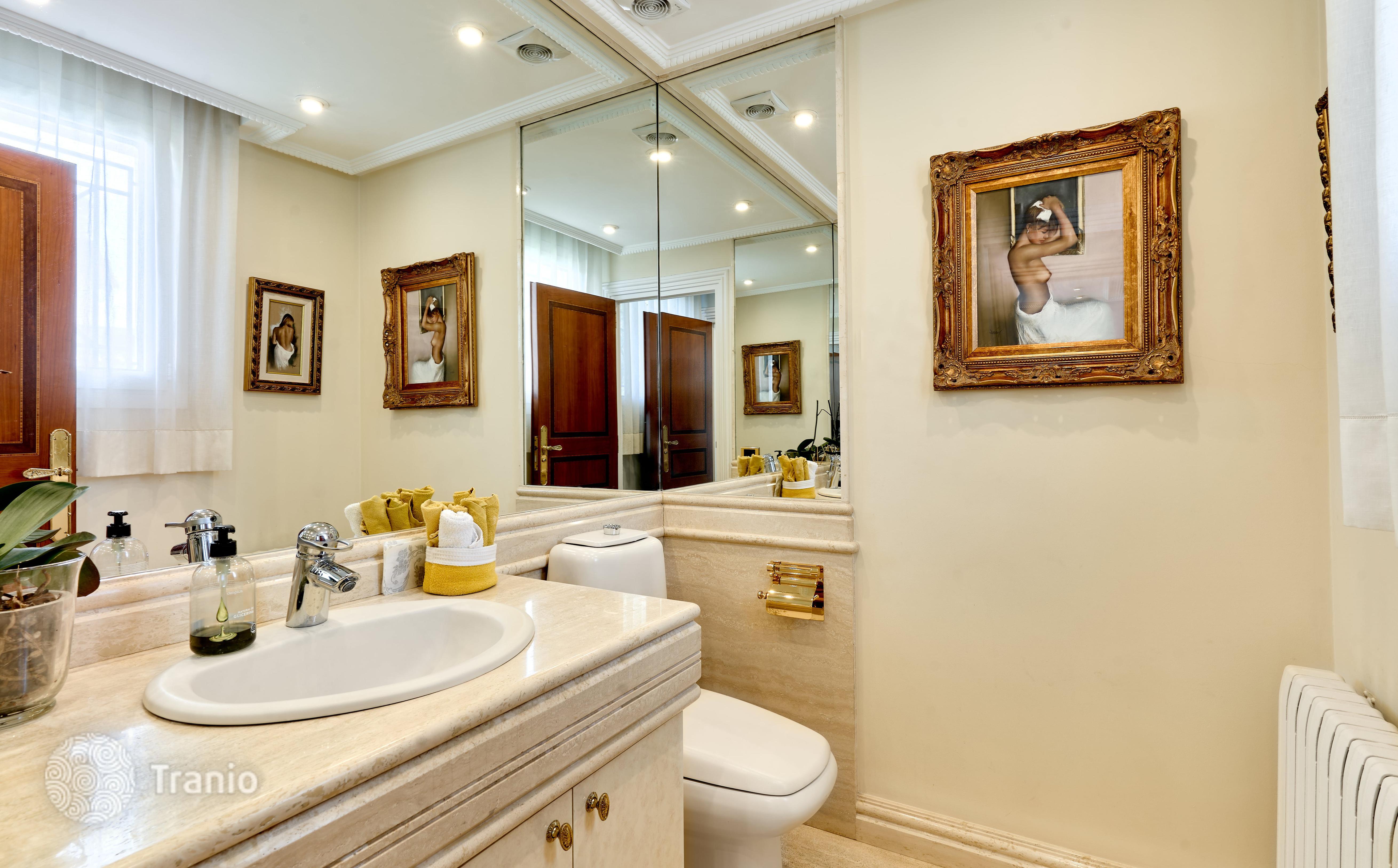 В доме 5 спальных сьютов и 8 санузлов. Гостиная с выходом на террасу с бассейном. Бассейн с соленой водой и подогревод. Домашний кинотеатр с кабинетом и террасой. Бодега. Постирочная и 4 кладовых помещения. Лифт на все этажи.