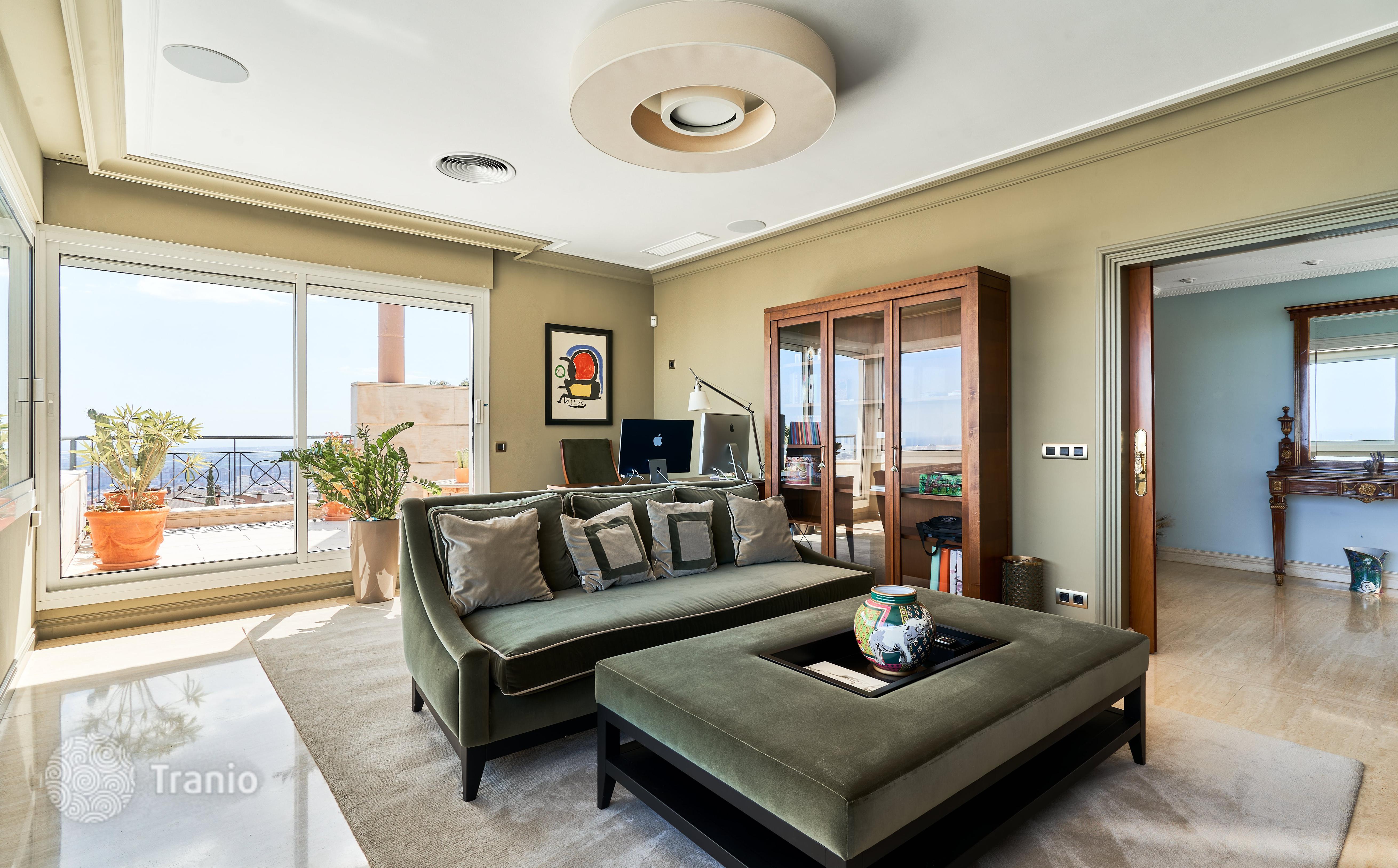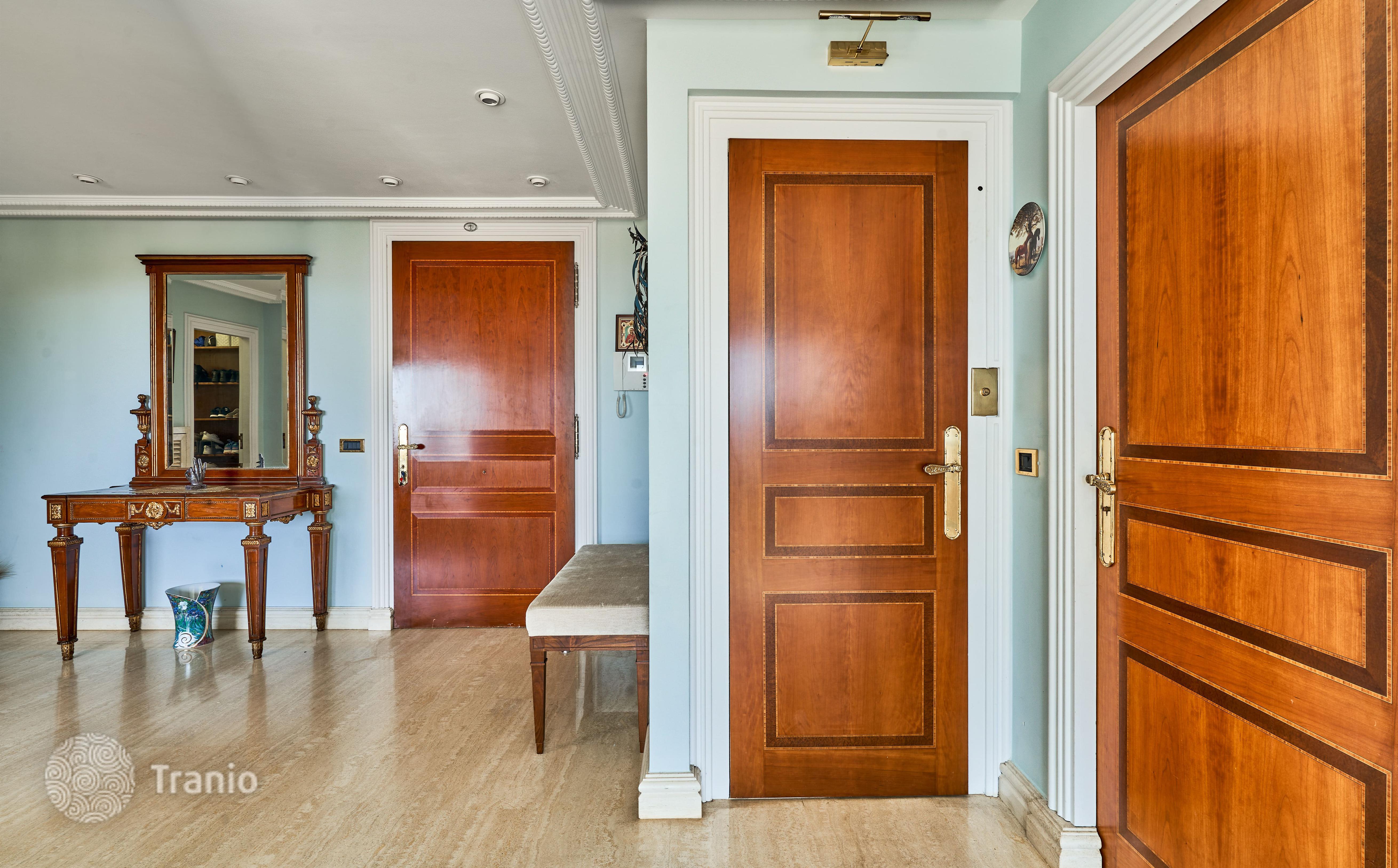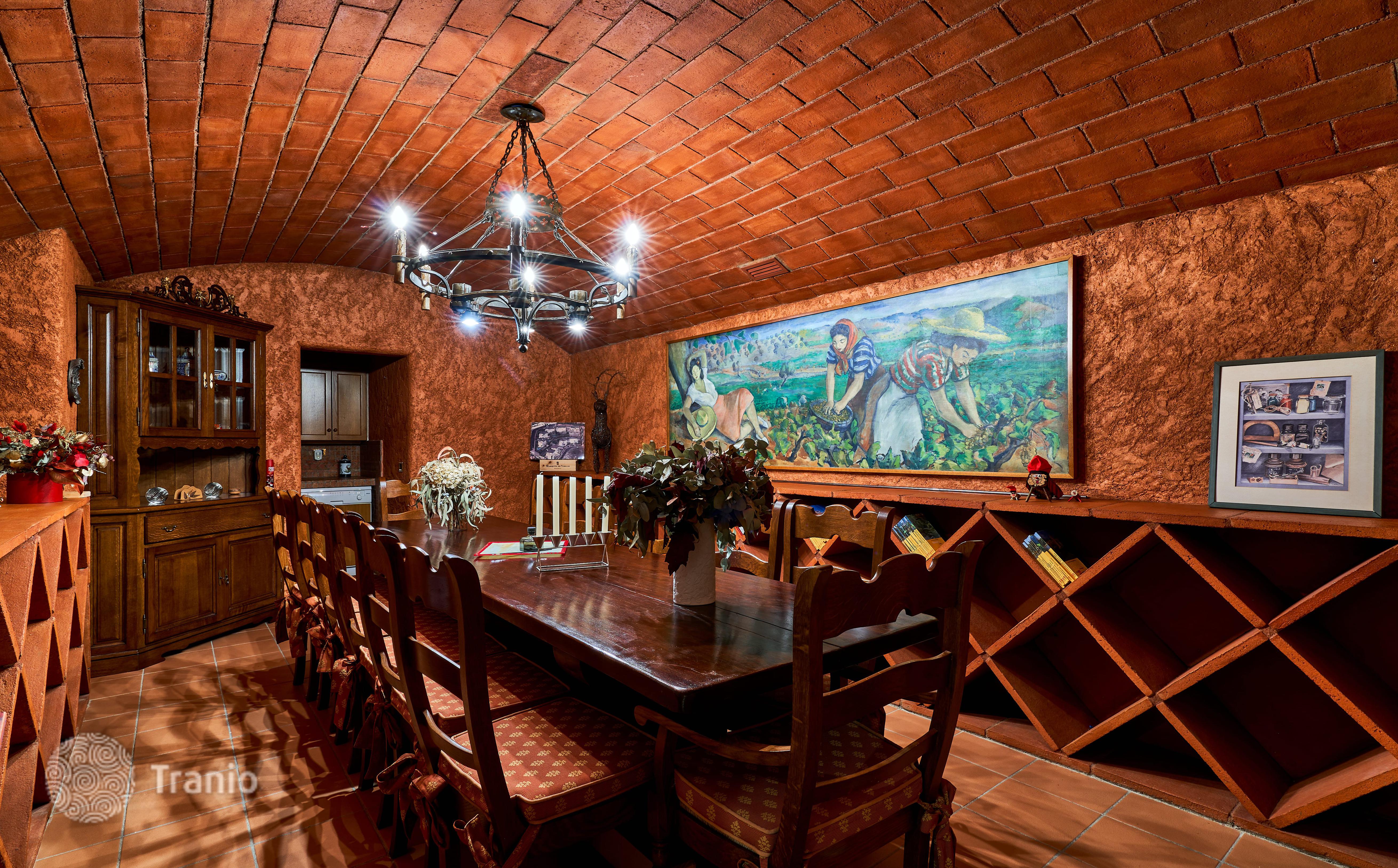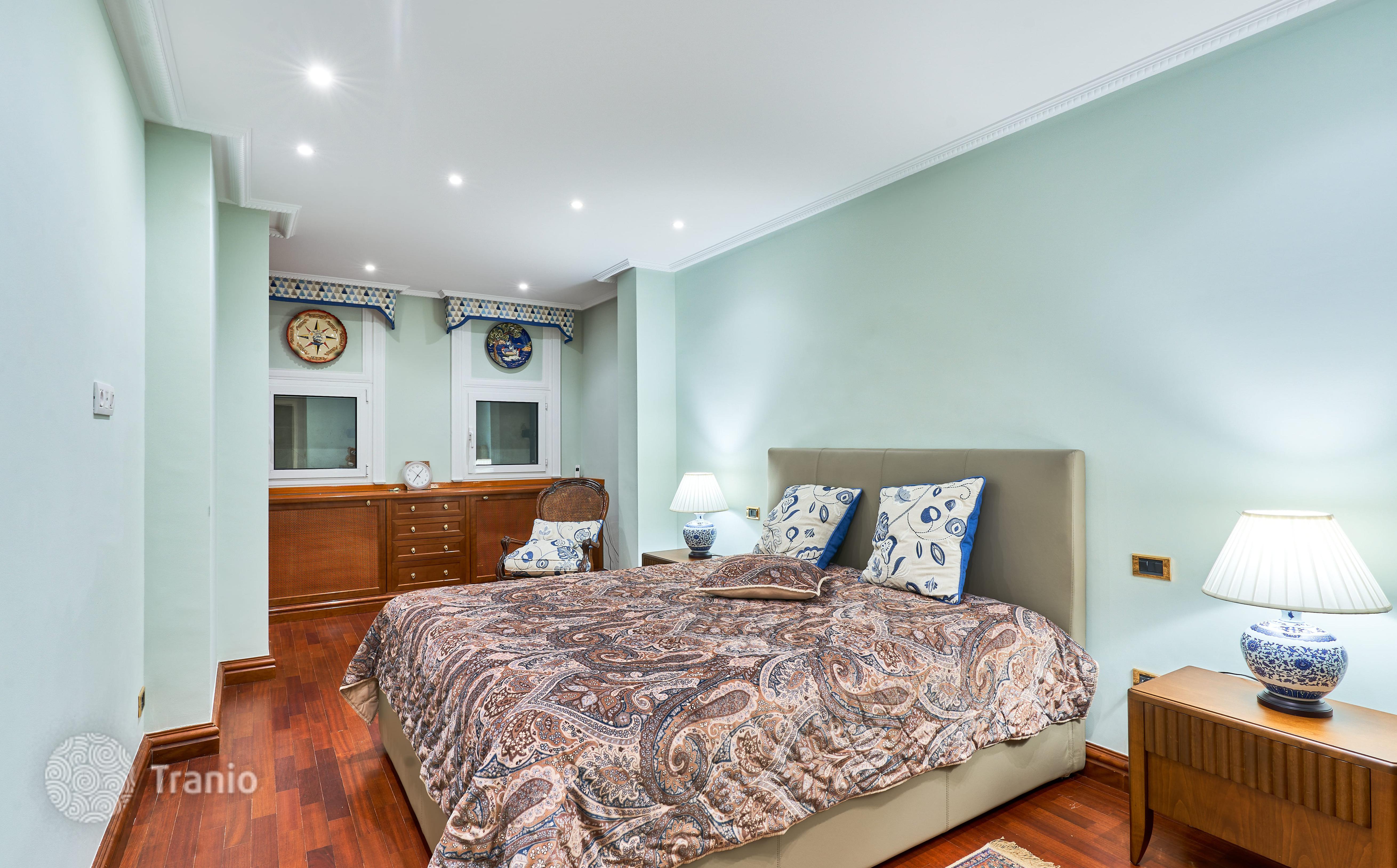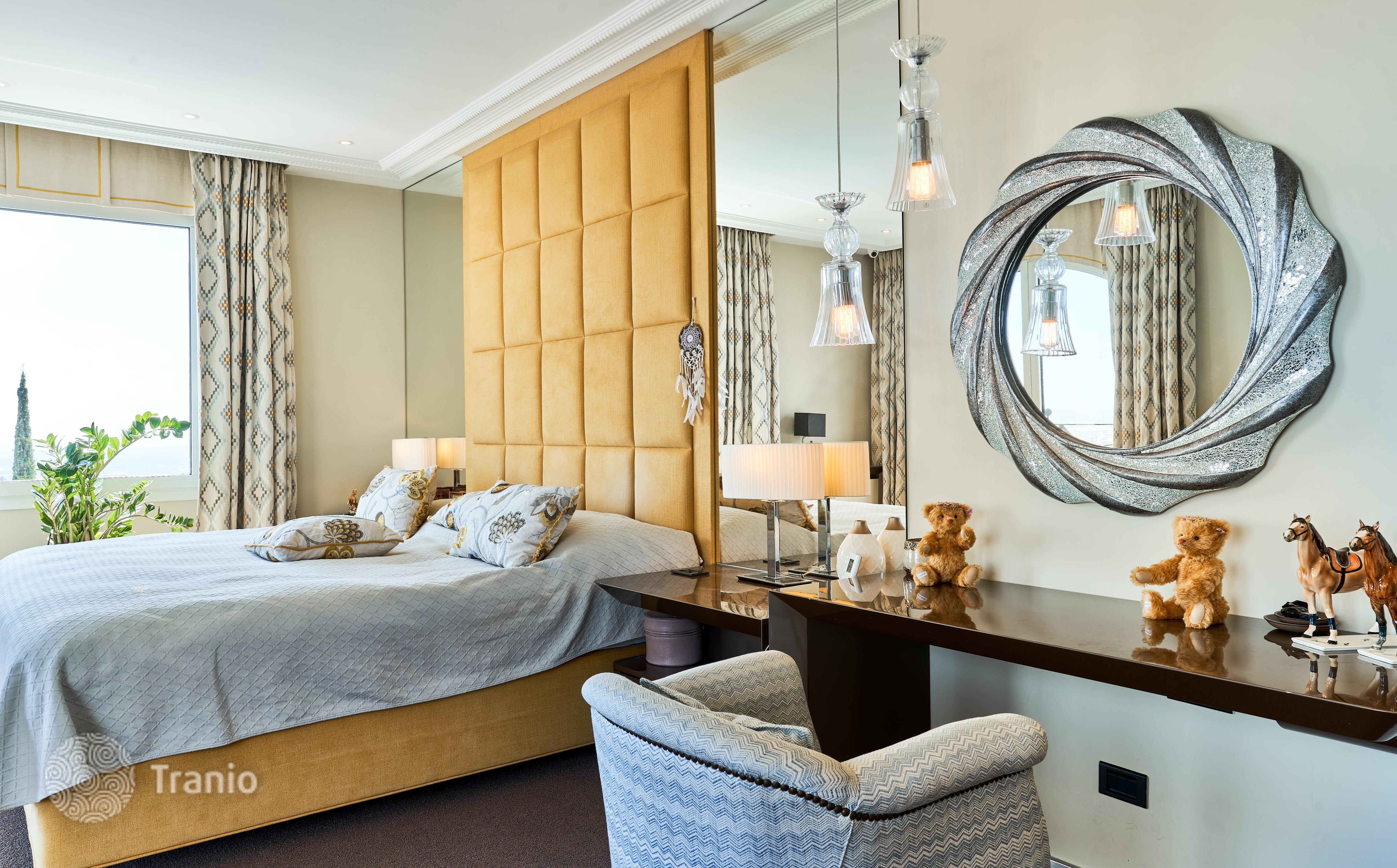 В доме 5 спальных сьютов и 8 санузлов. Гостиная с выходом на террасу с бассейном. Бассейн с соленой водой и подогревод. Домашний кинотеатр с кабинетом и террасой. Бодега. Постирочная и 4 кладовых помещения. Лифт на все этажи.