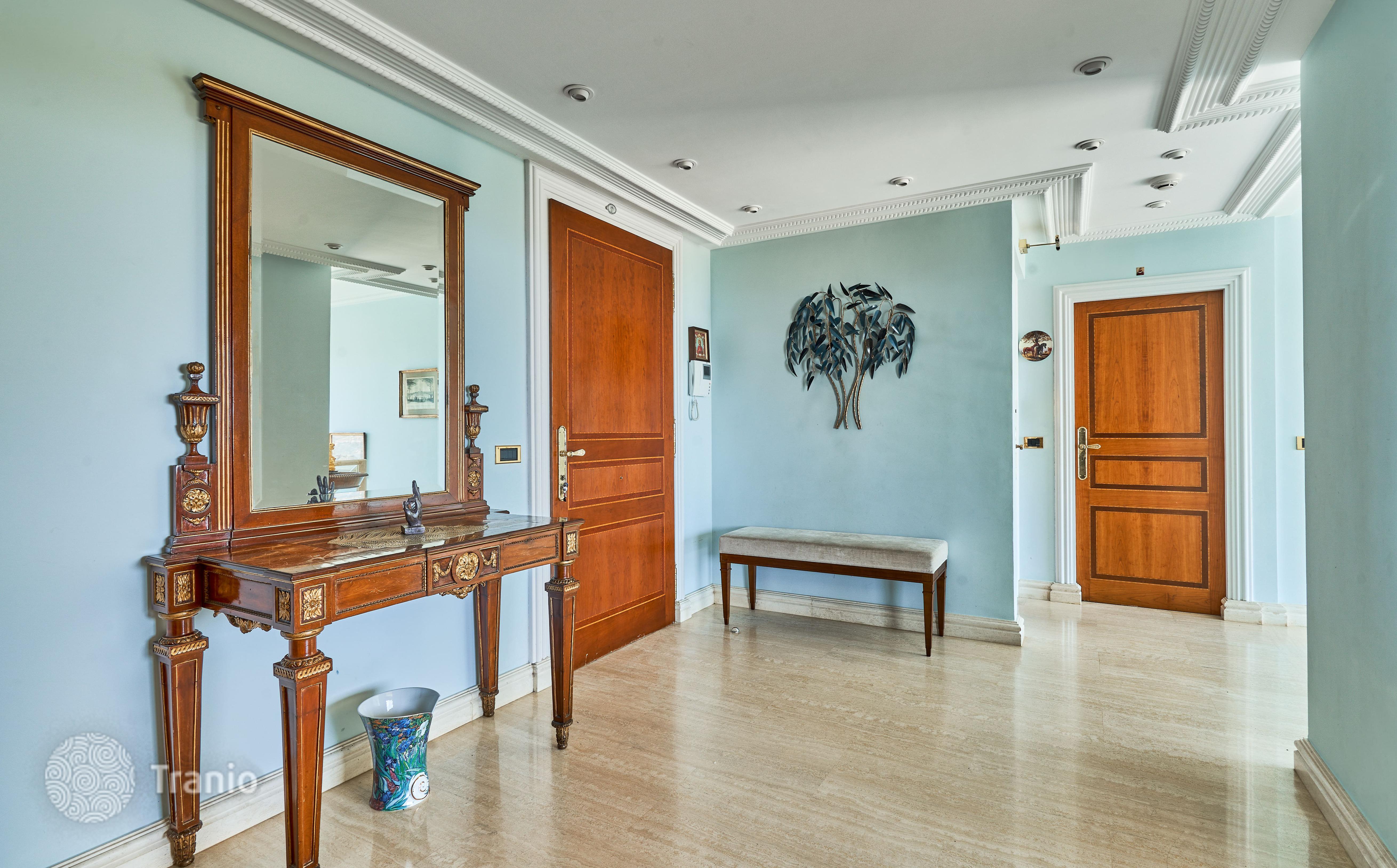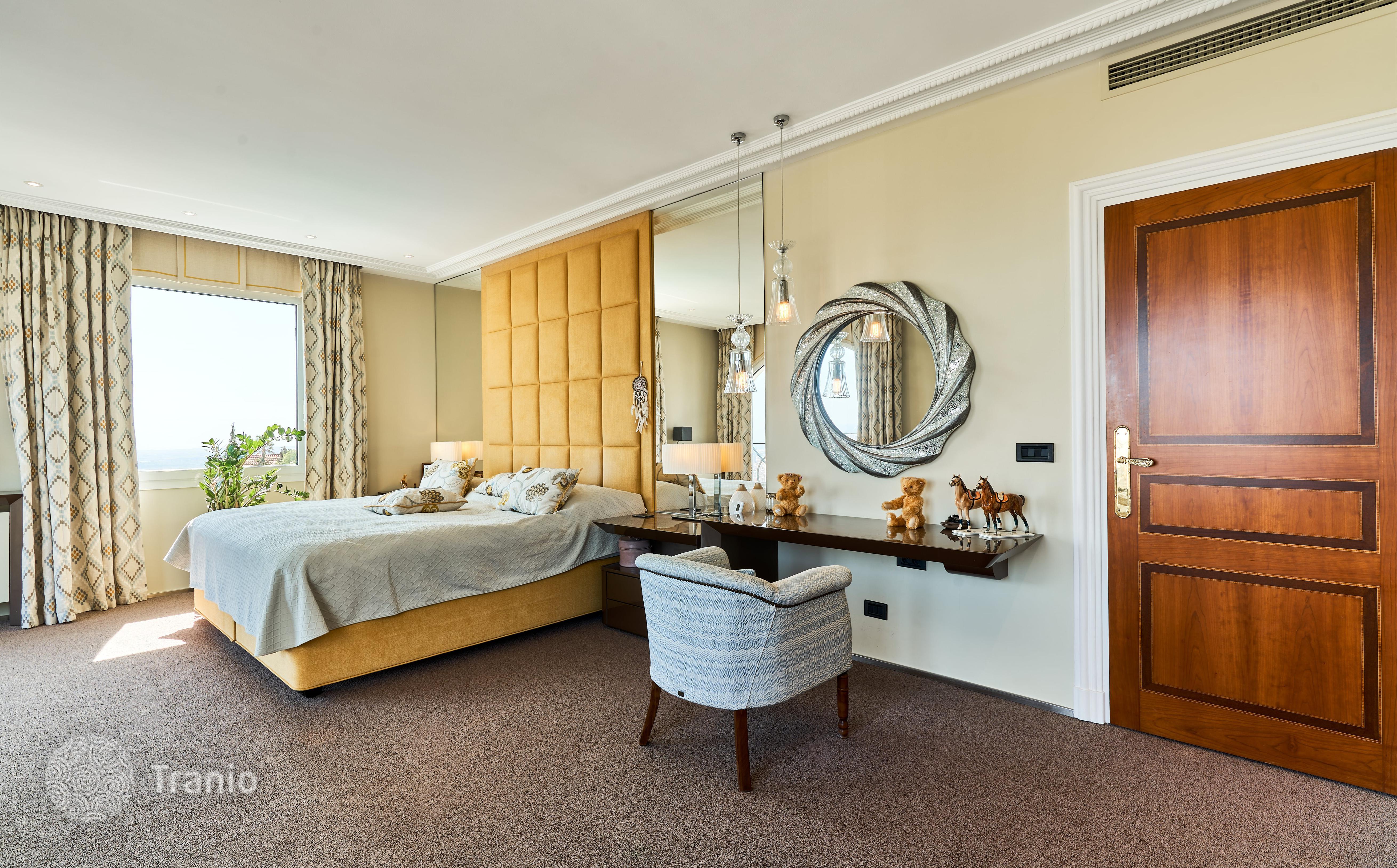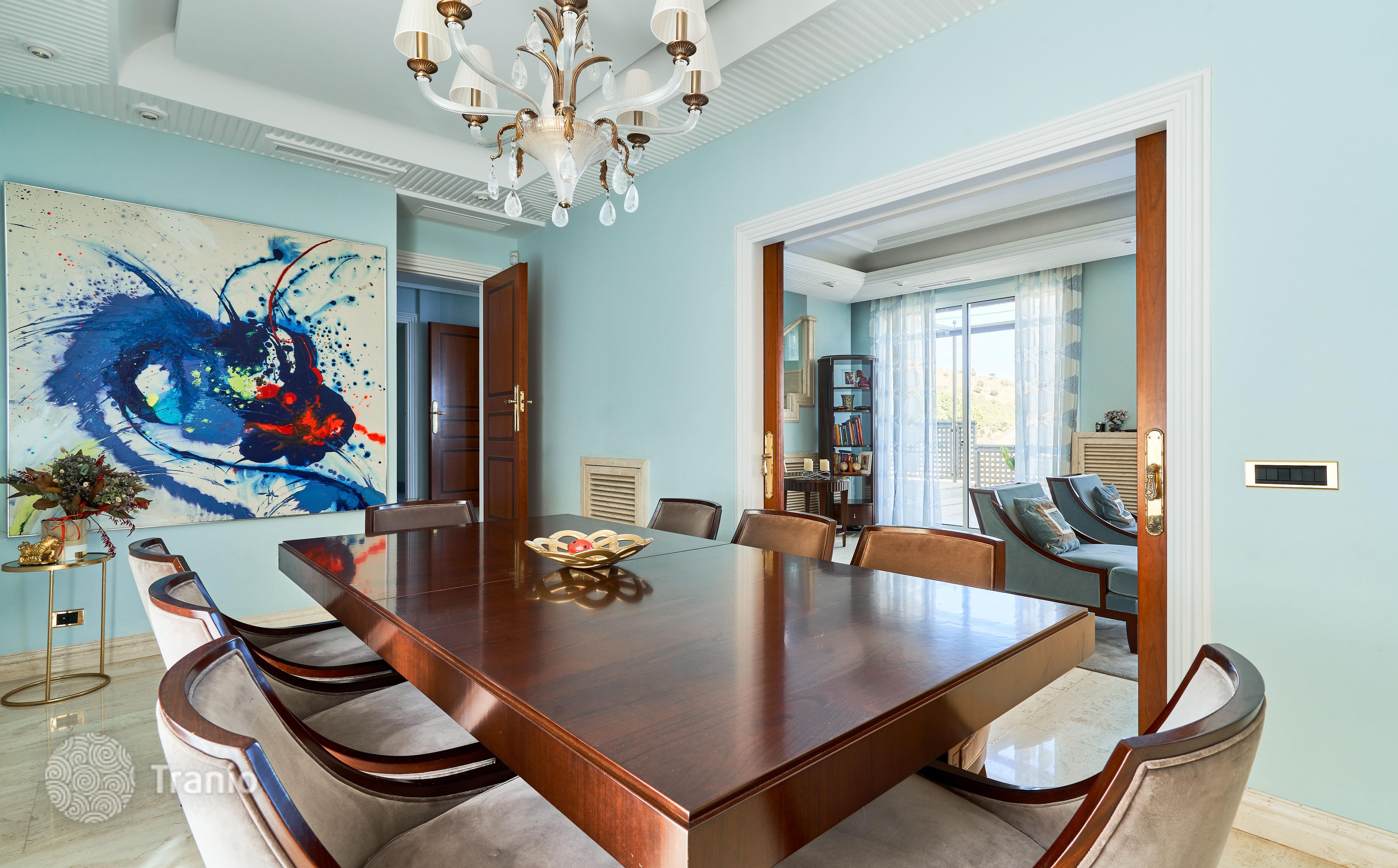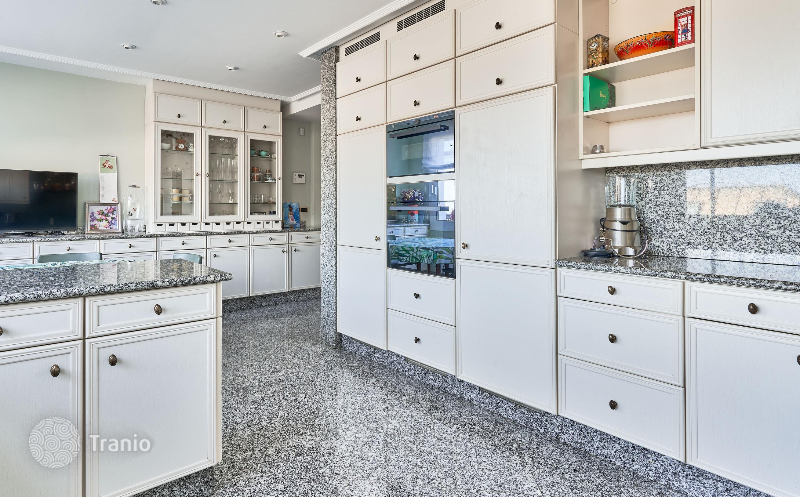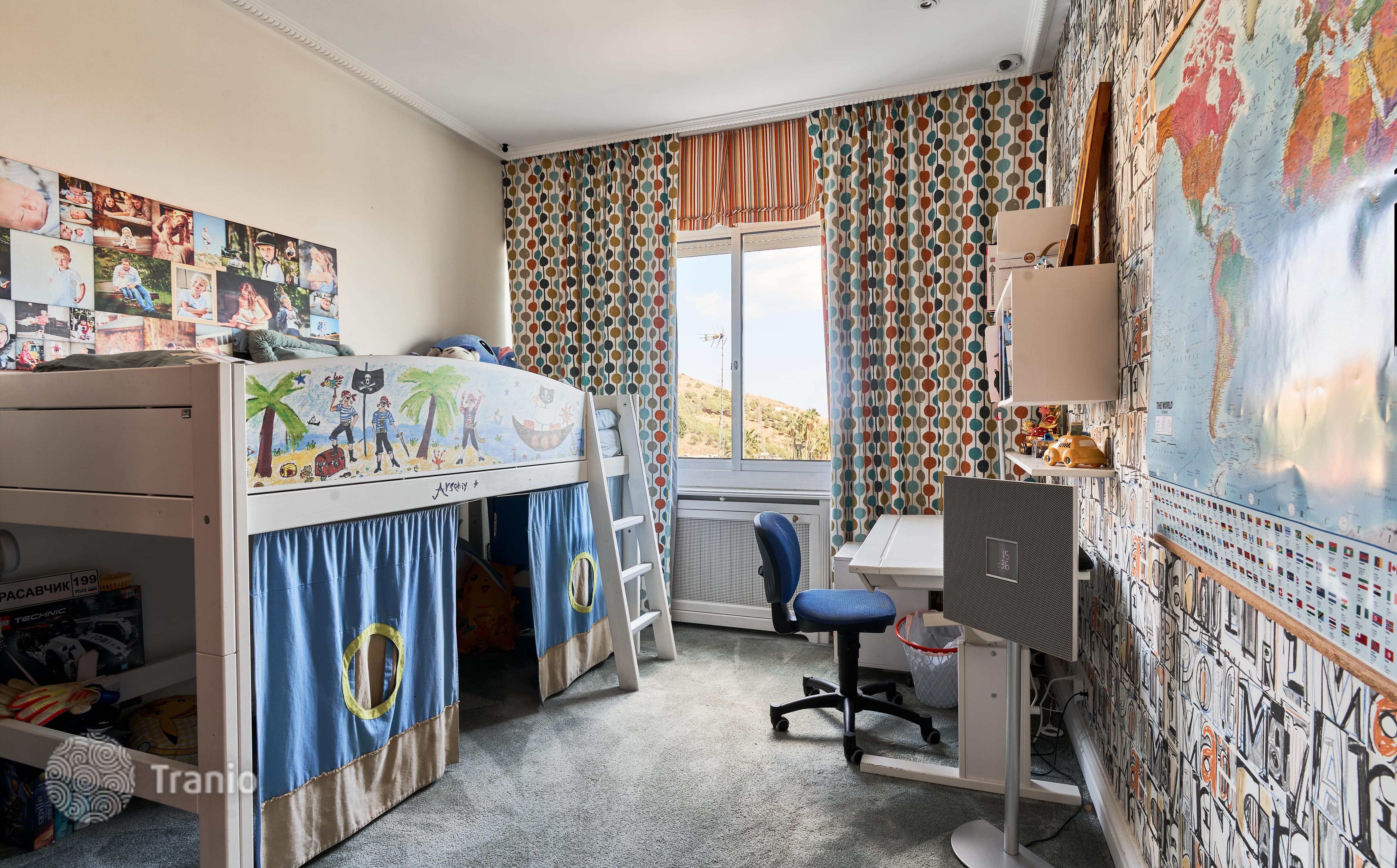 В доме 5 спальных сьютов и 8 санузлов. Гостиная с выходом на террасу с бассейном. Бассейн с соленой водой и подогревод. Домашний кинотеатр с кабинетом и террасой. Бодега. Постирочная и 4 кладовых помещения. Лифт на все этажи.