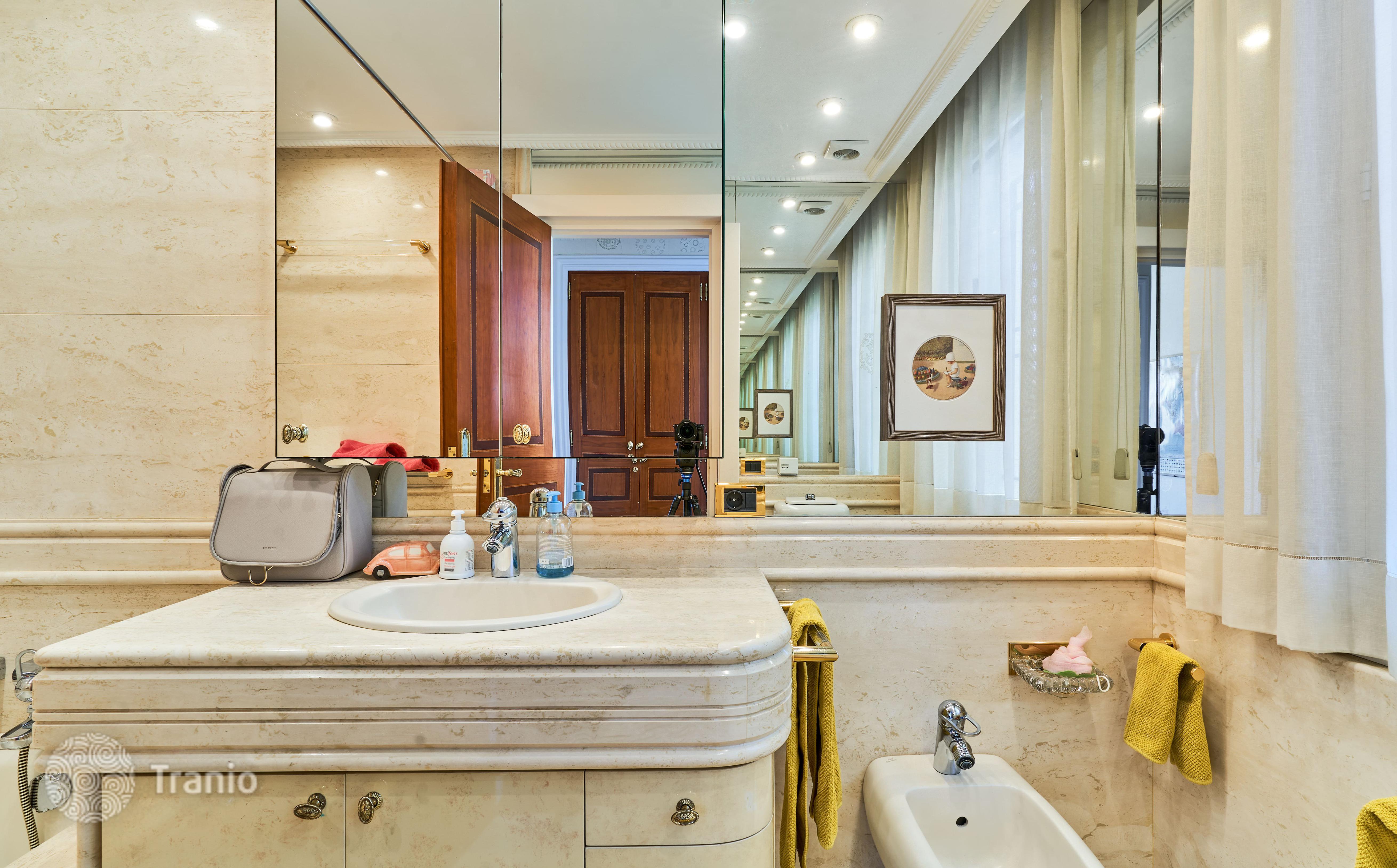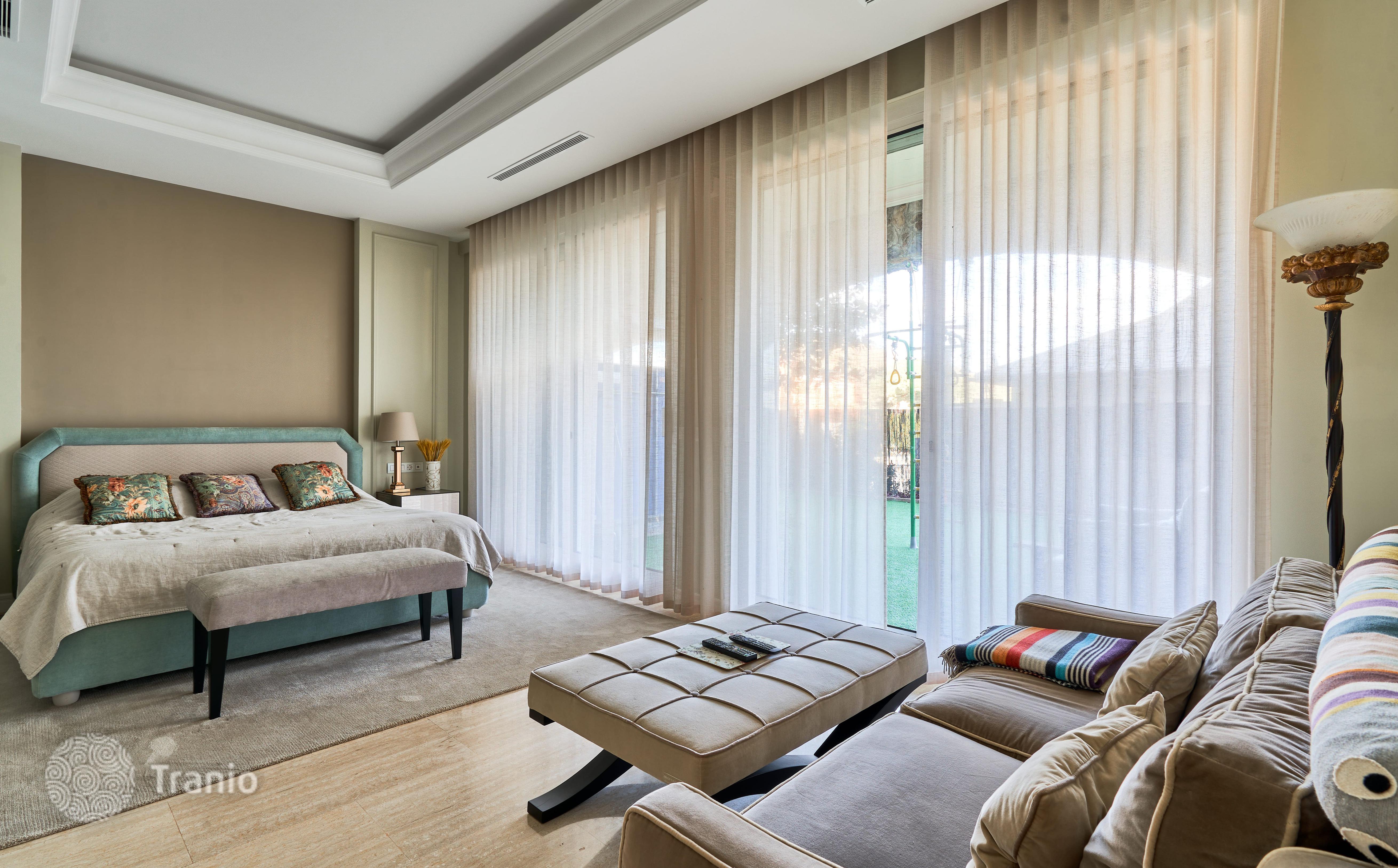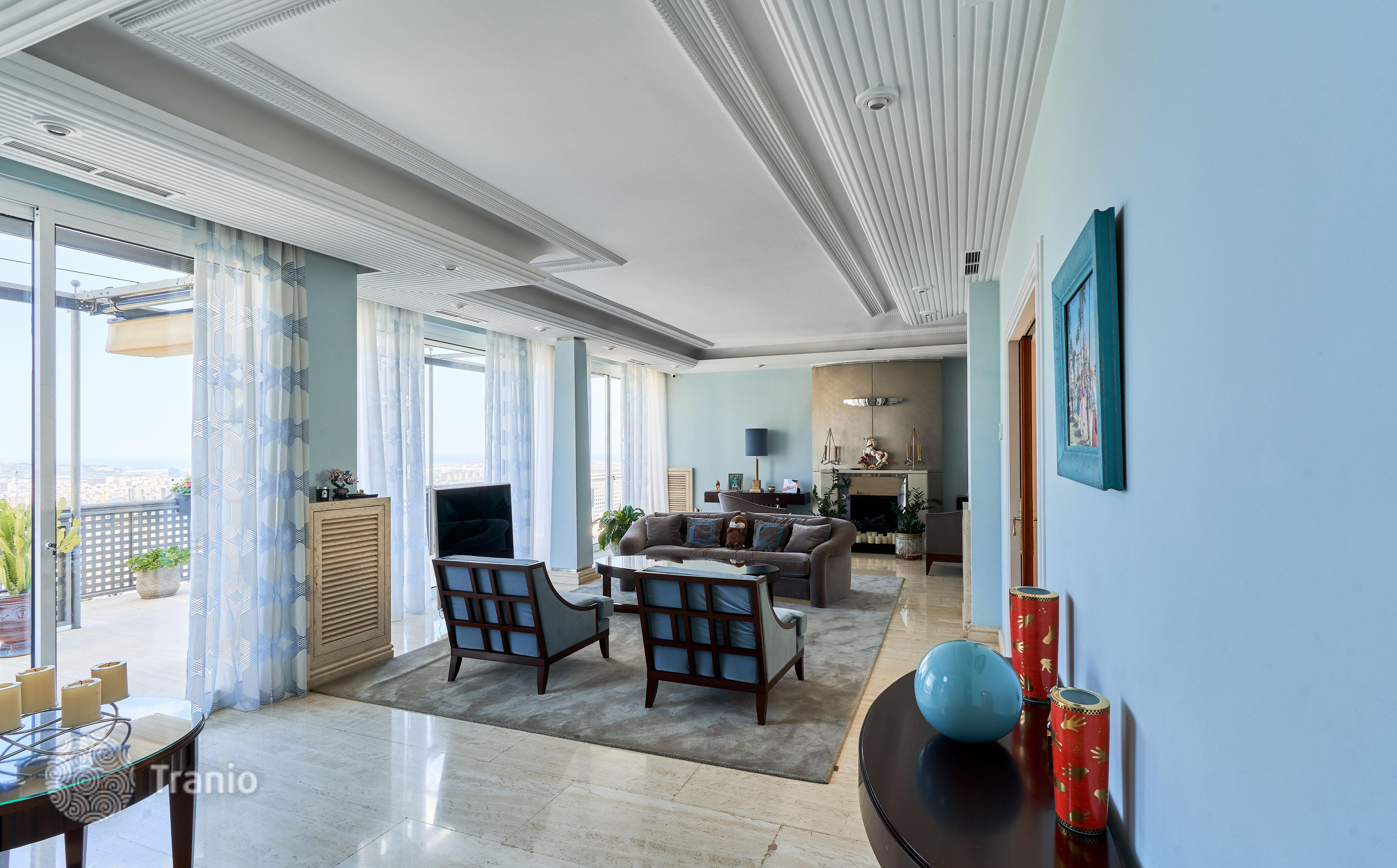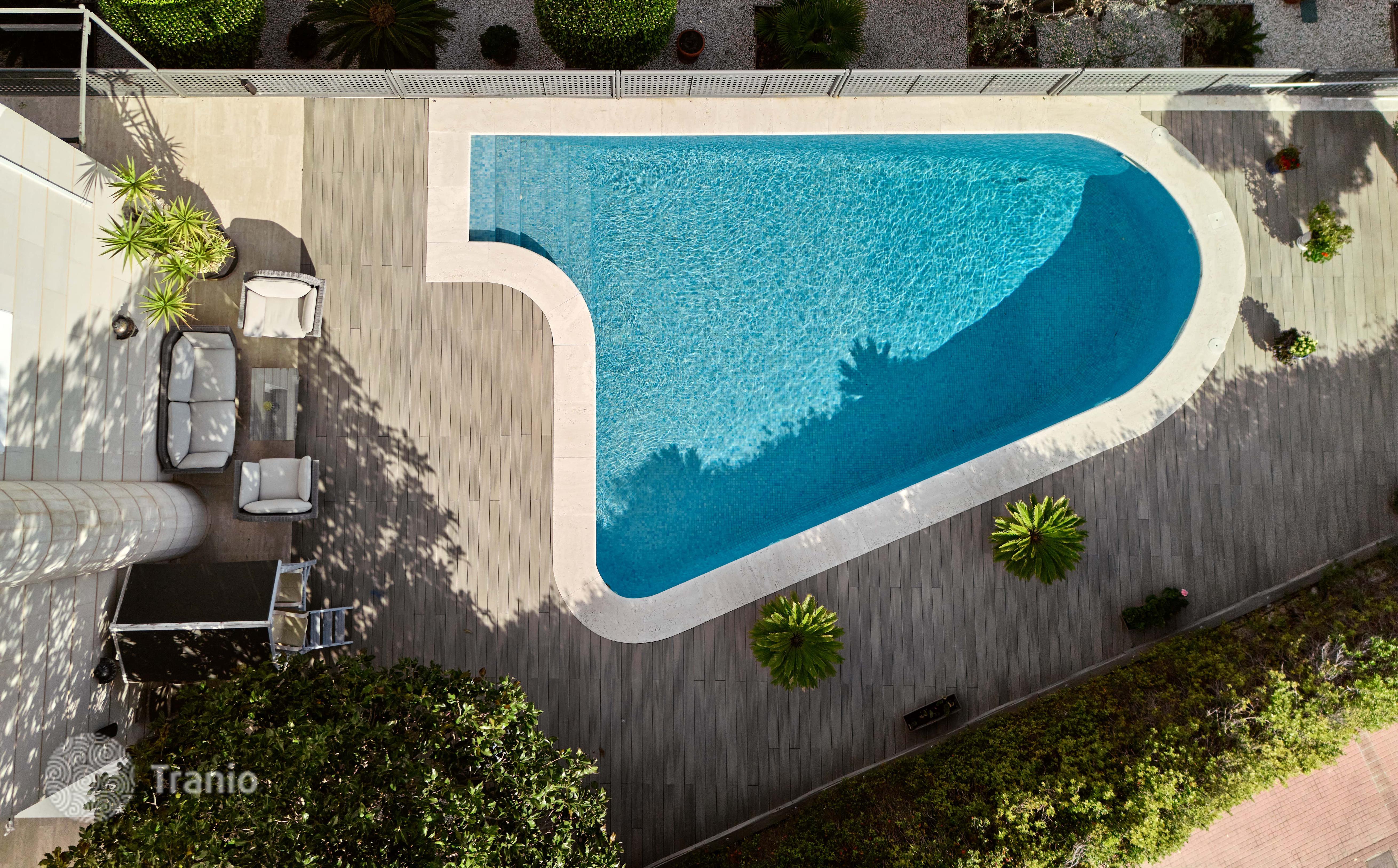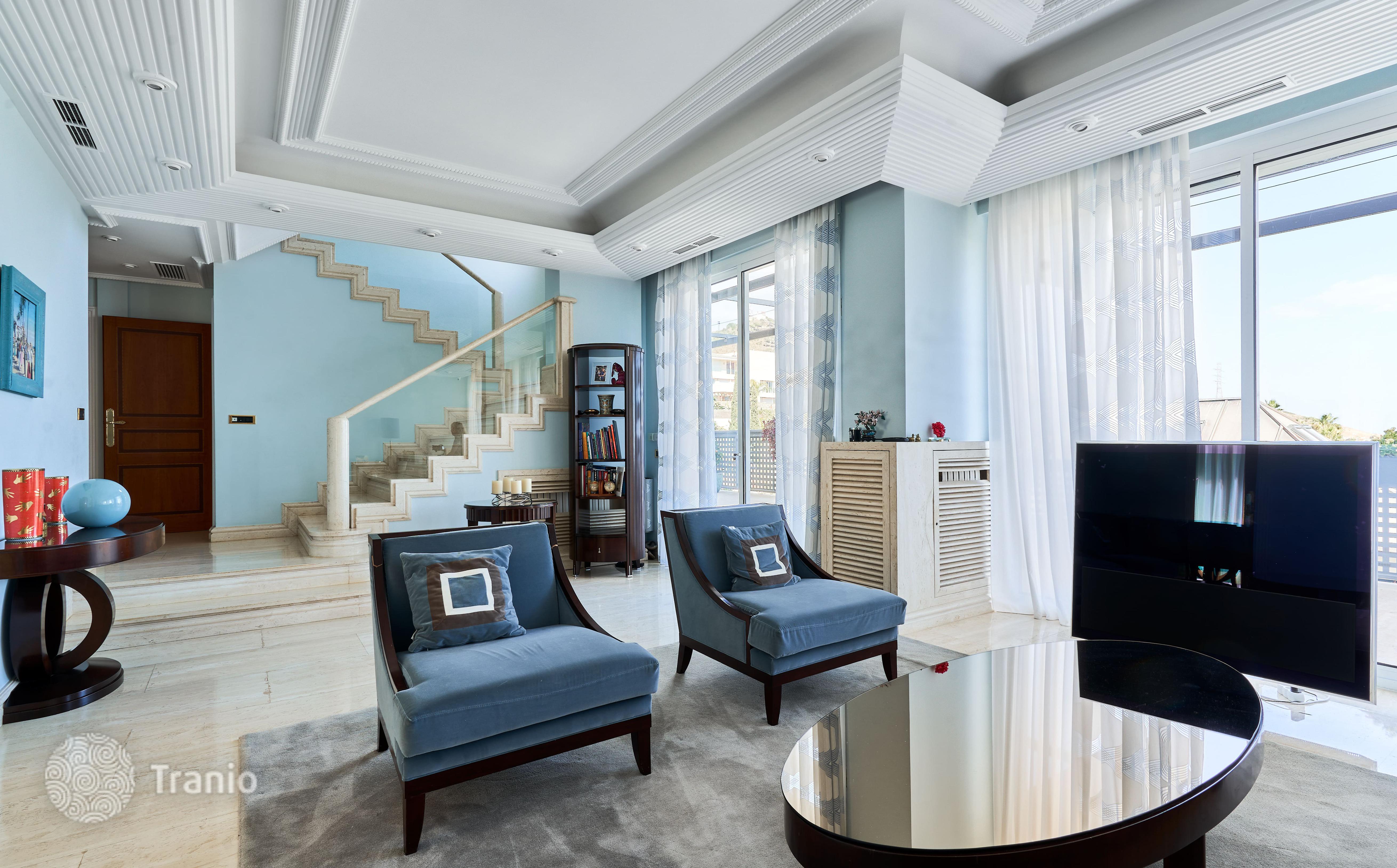 В доме 5 спальных сьютов и 8 санузлов. Гостиная с выходом на террасу с бассейном. Бассейн с соленой водой и подогревод. Домашний кинотеатр с кабинетом и террасой. Бодега. Постирочная и 4 кладовых помещения. Лифт на все этажи.