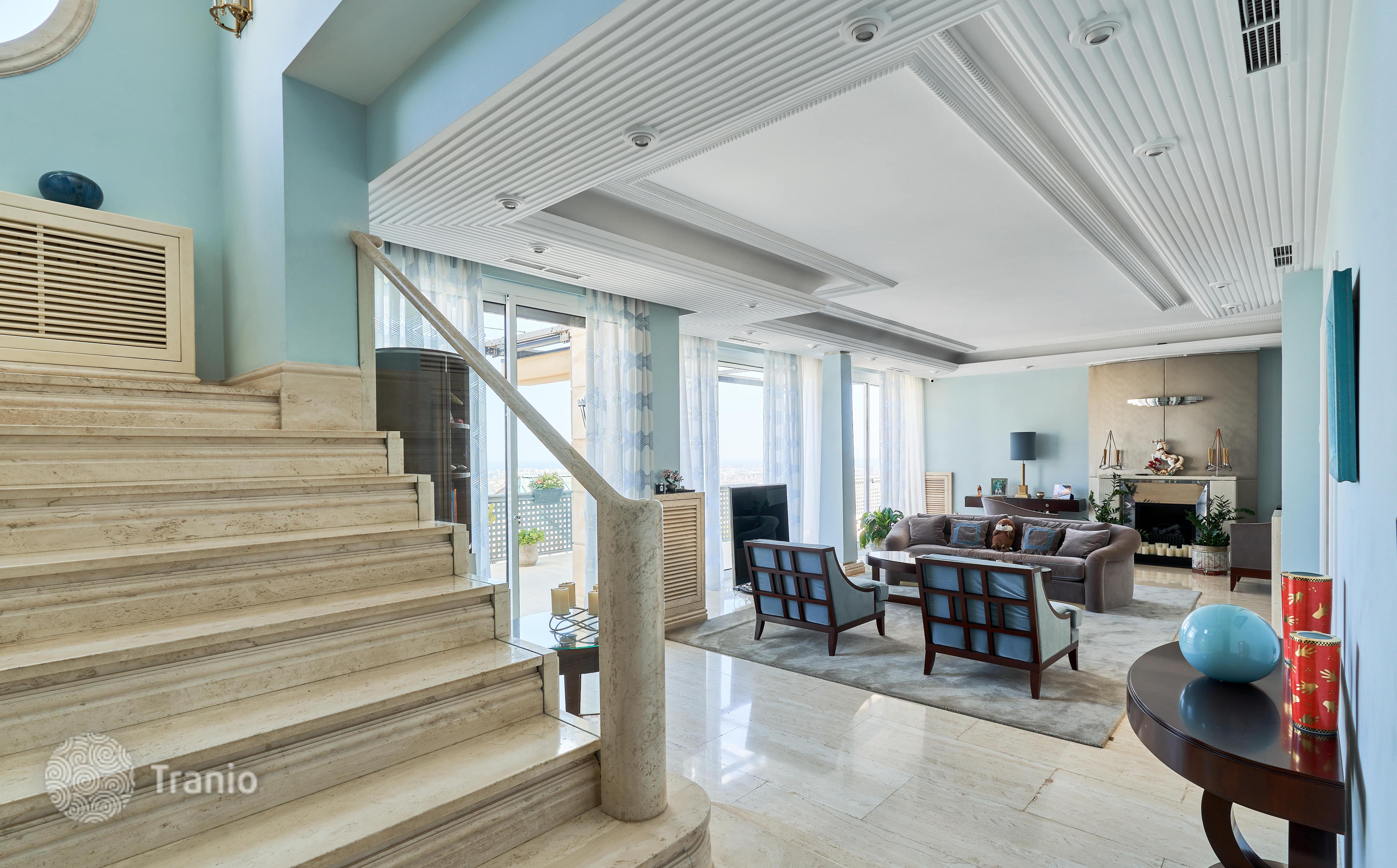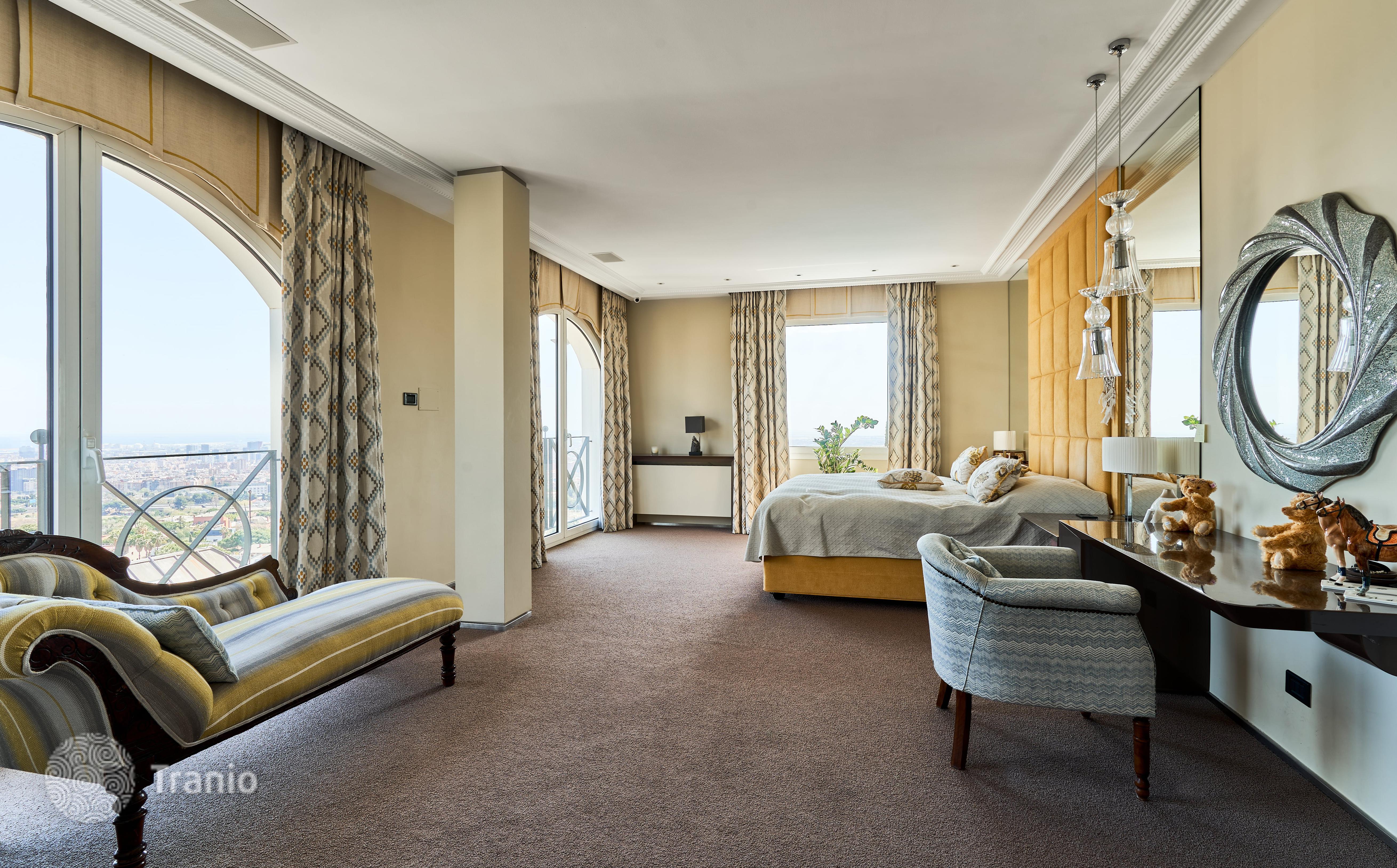 Дом построен в 4 этажа (3 верхних этажа с панорамным видом на город) На участкетакже расположены апартаменты с кухней для персонала, с отдельным входом.