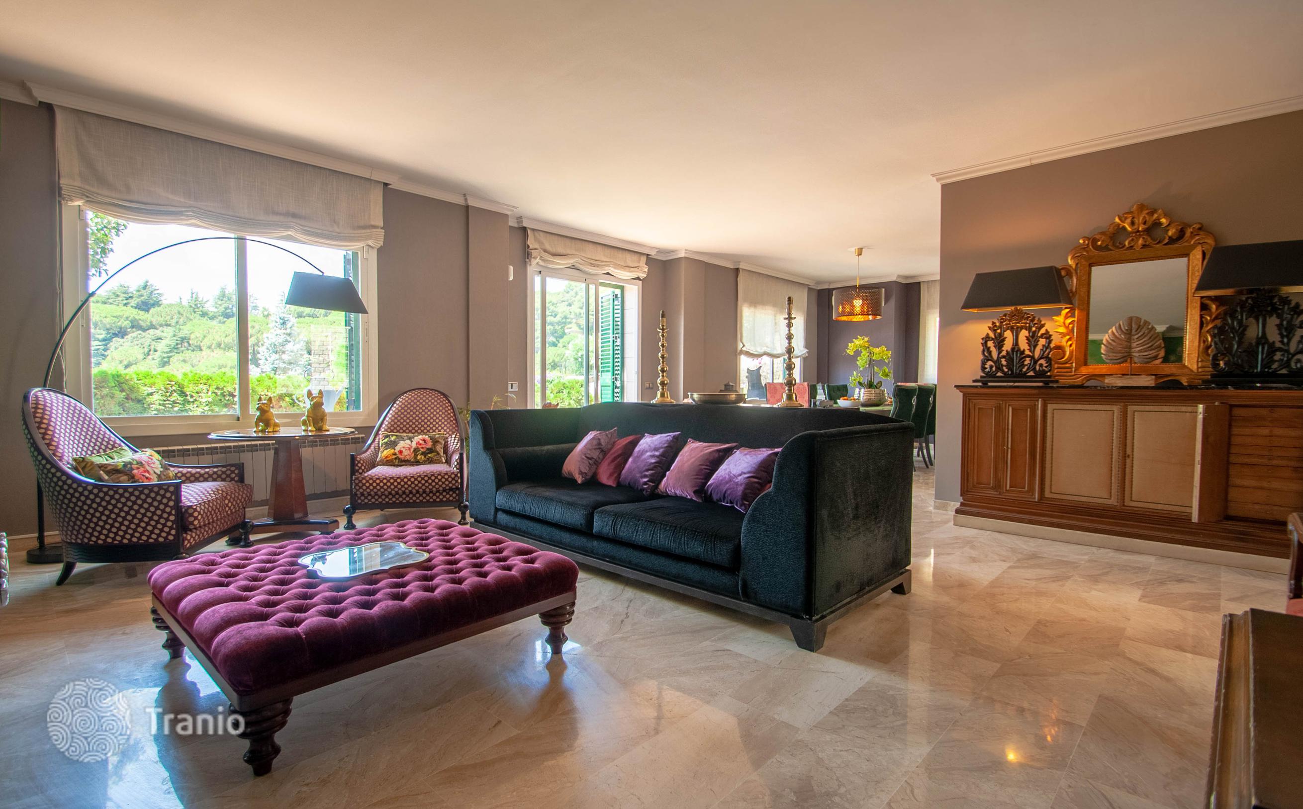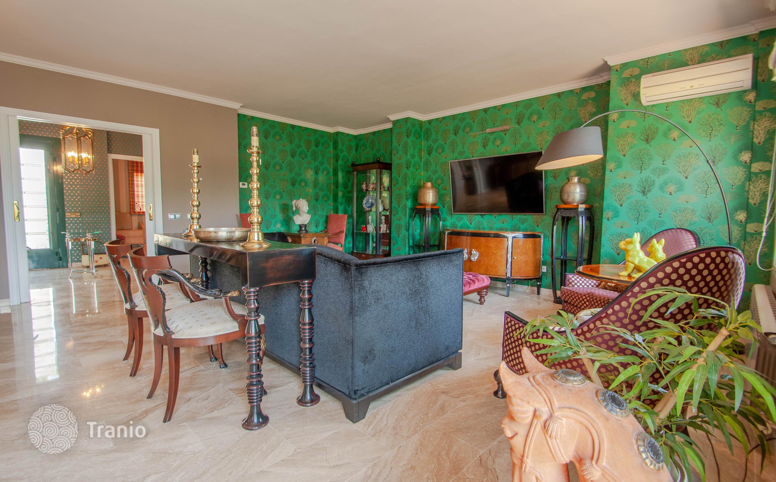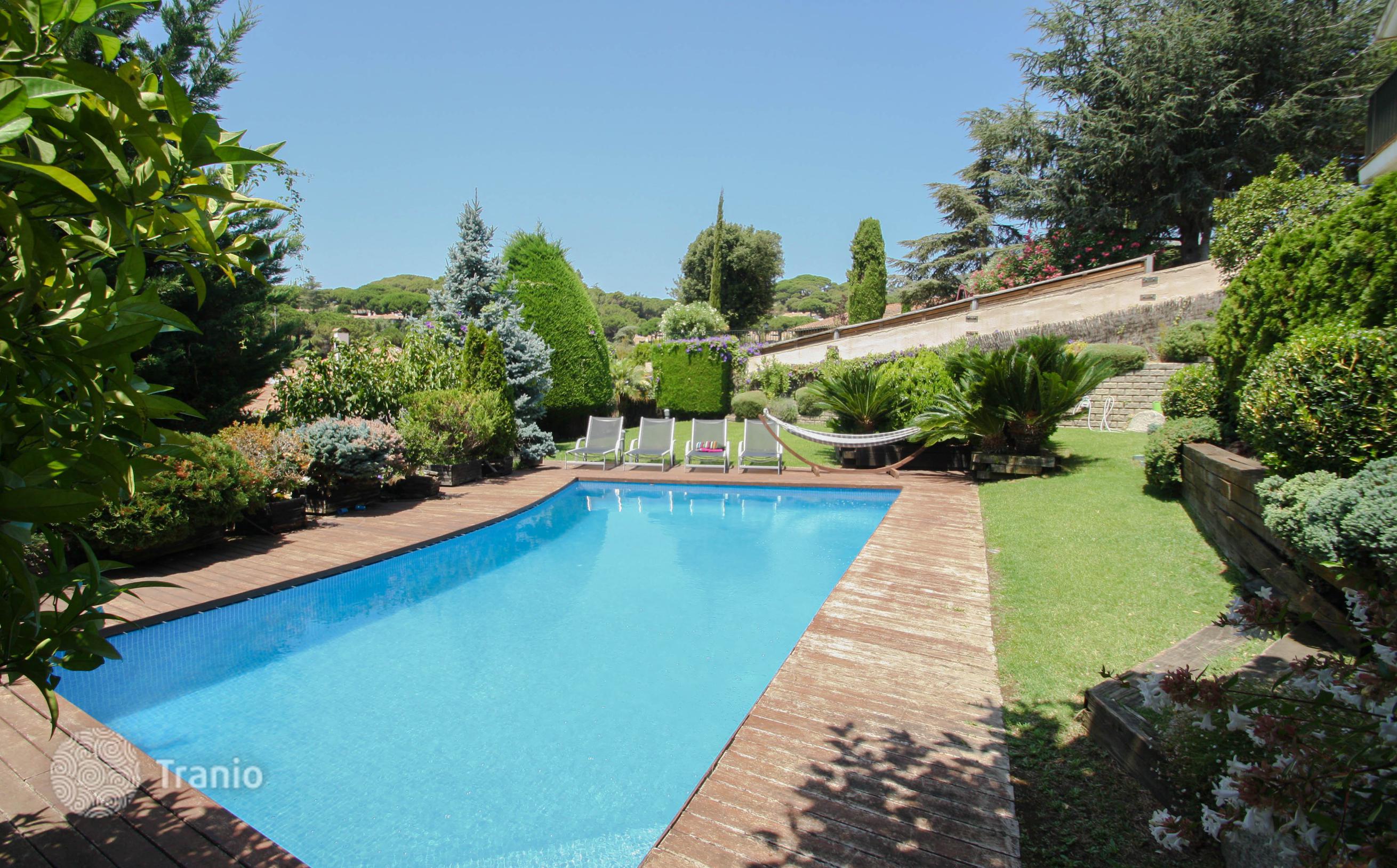 Участок практически без перепадов, разделен на несколько зон. Установлена система автополива для сада. На территории выполнен ландшафтный дизайн, с различными кустарниками, цветами и деревьями, в том числе плодовыми. Имеется большой бассейн с системой перелива.